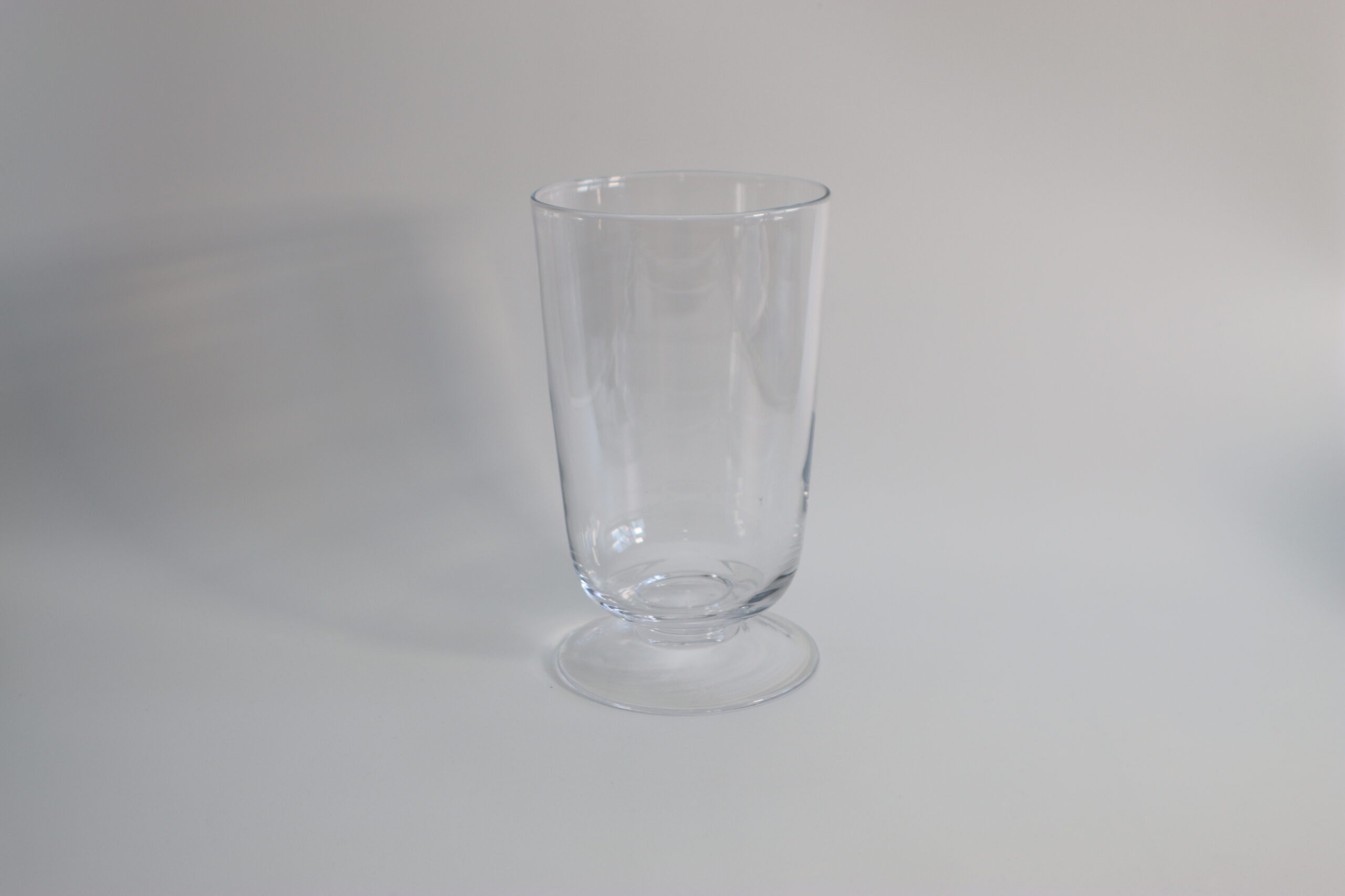 脚付きのクラシックなフォルムが印象的な、ガラス製フラワーベース。