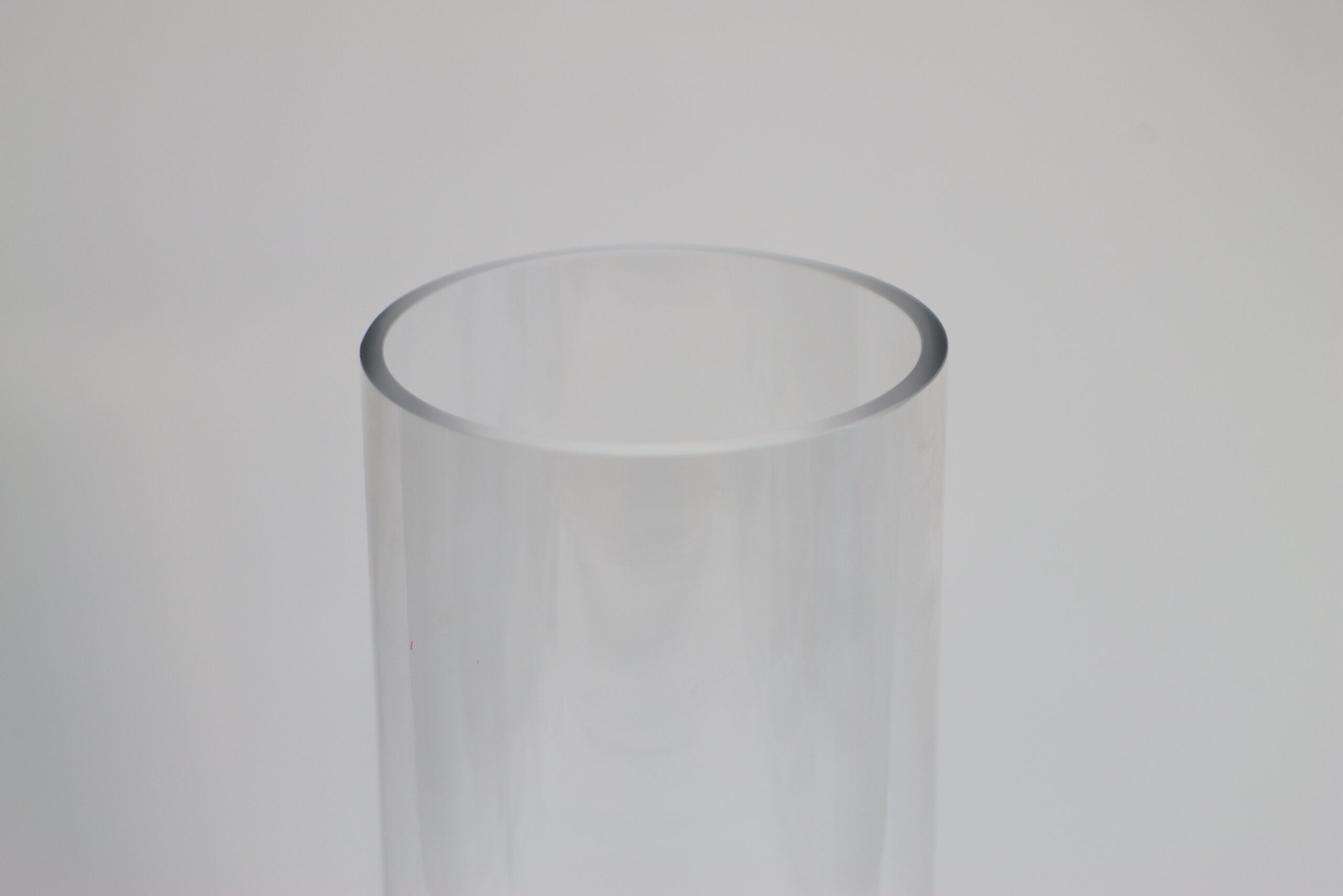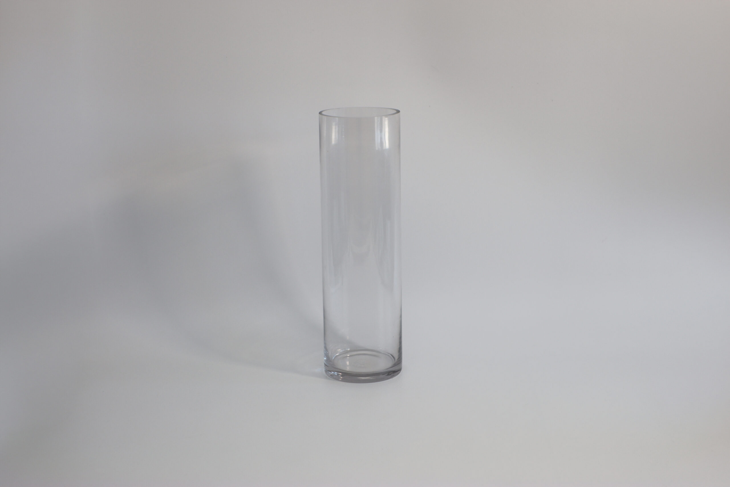 装飾を抑えたストレートフォルムの、縦長ガラスフラワーベース。