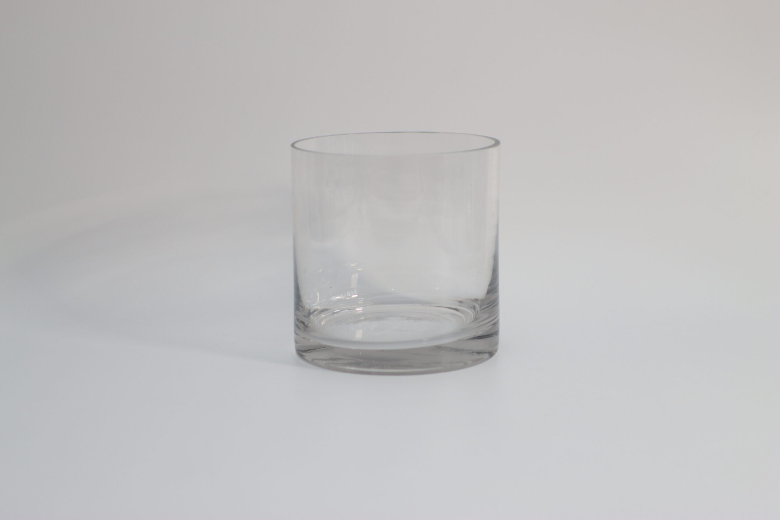 厚みのあるガラスとワイドな口元が特徴の、ガラス製フラワーベース。