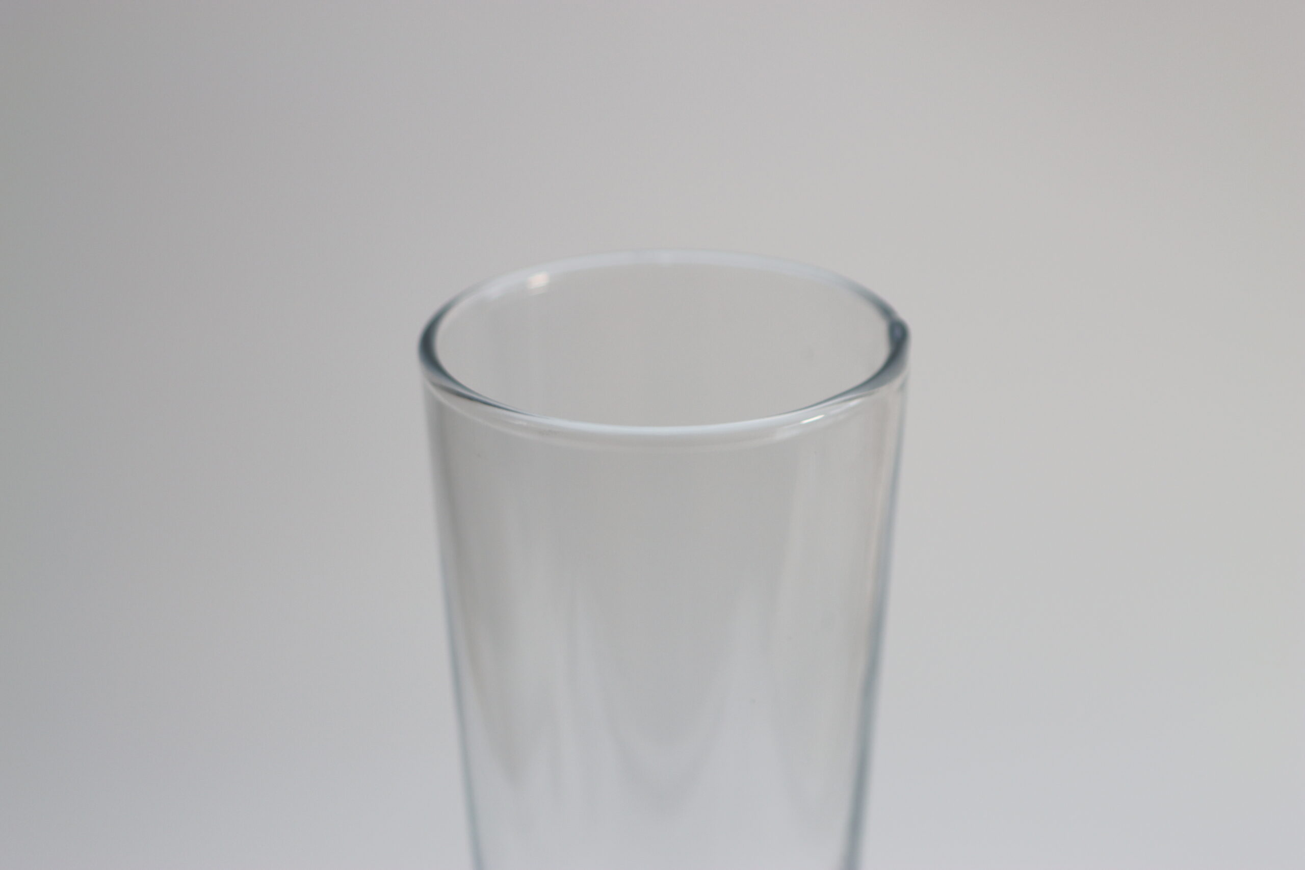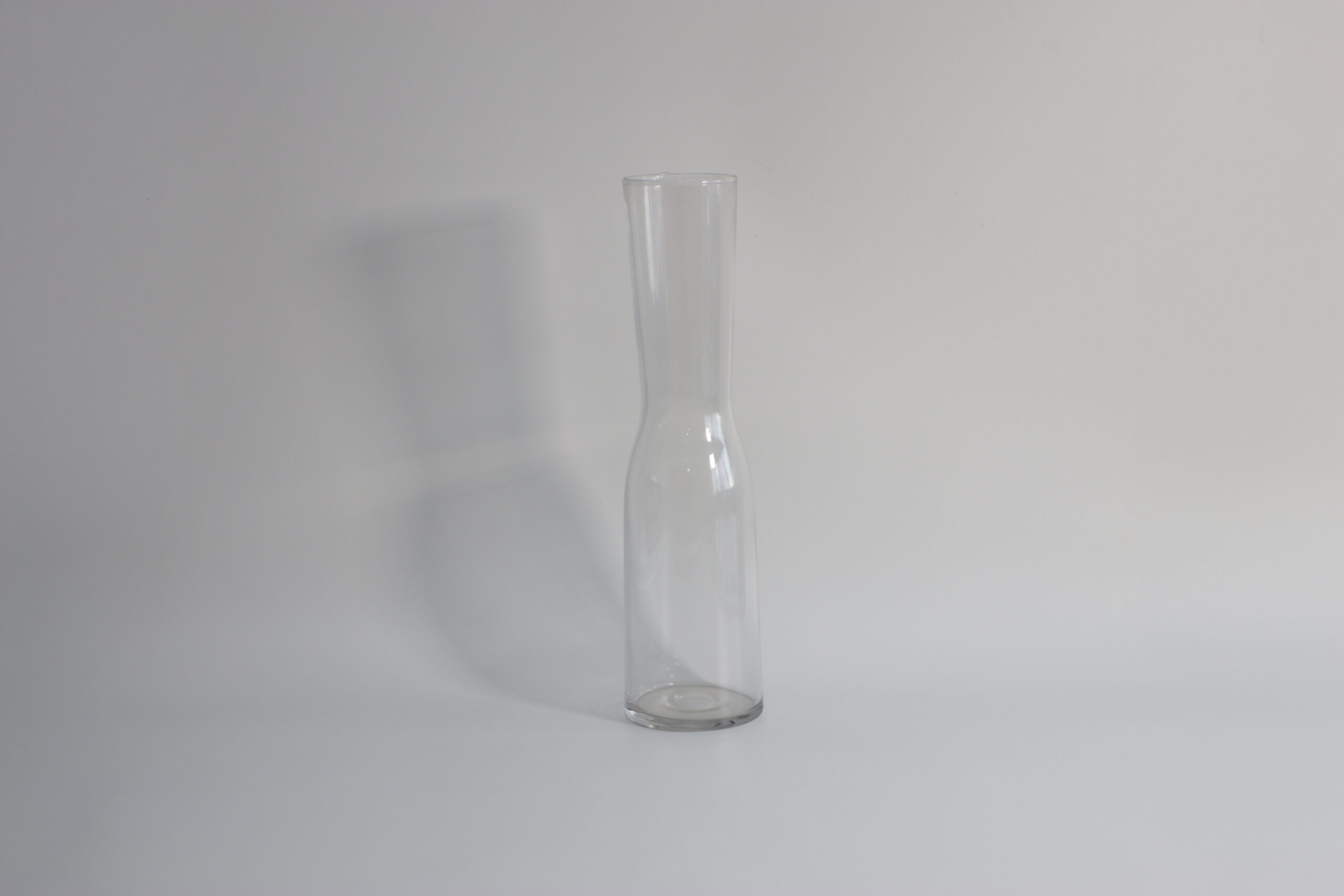細長いシルエットが印象的な、ガラス製フラワーベース。