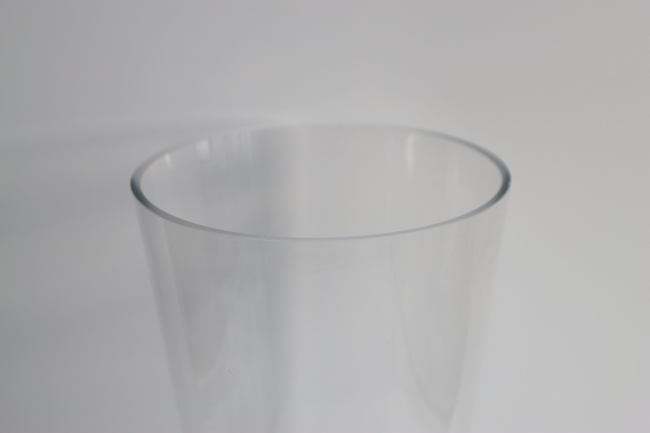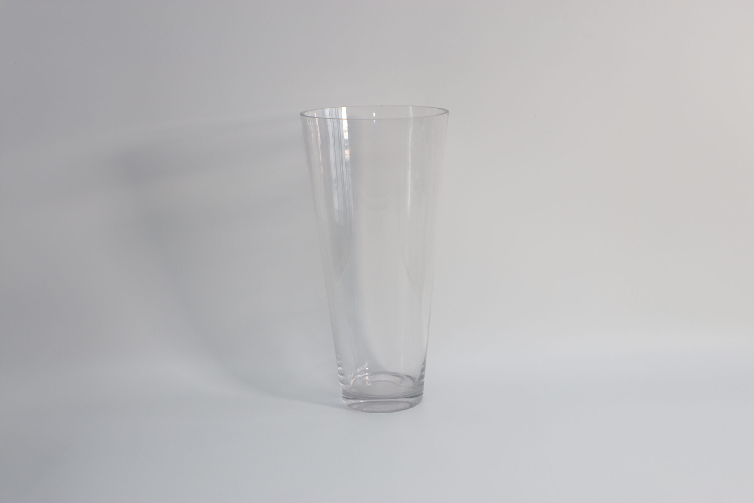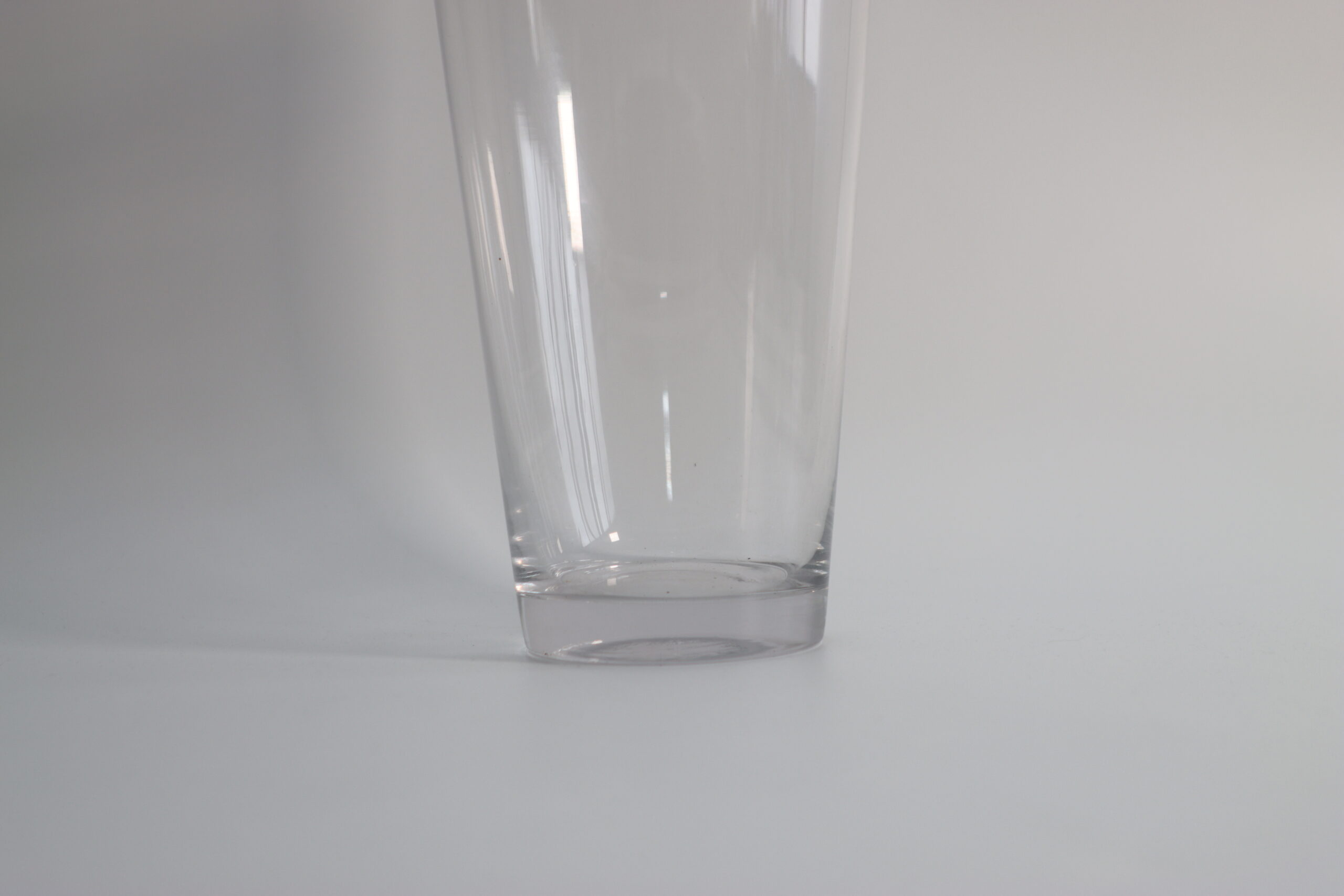 すっきりとしたフォルムが印象的な、ガラス製フラワーベース。