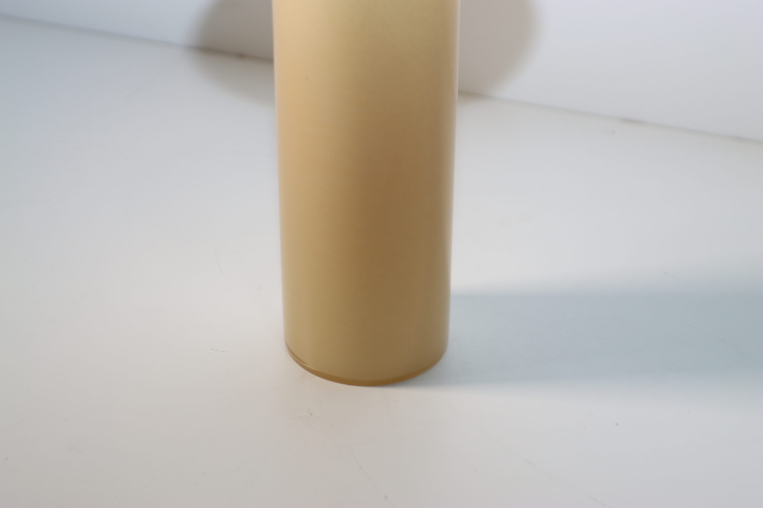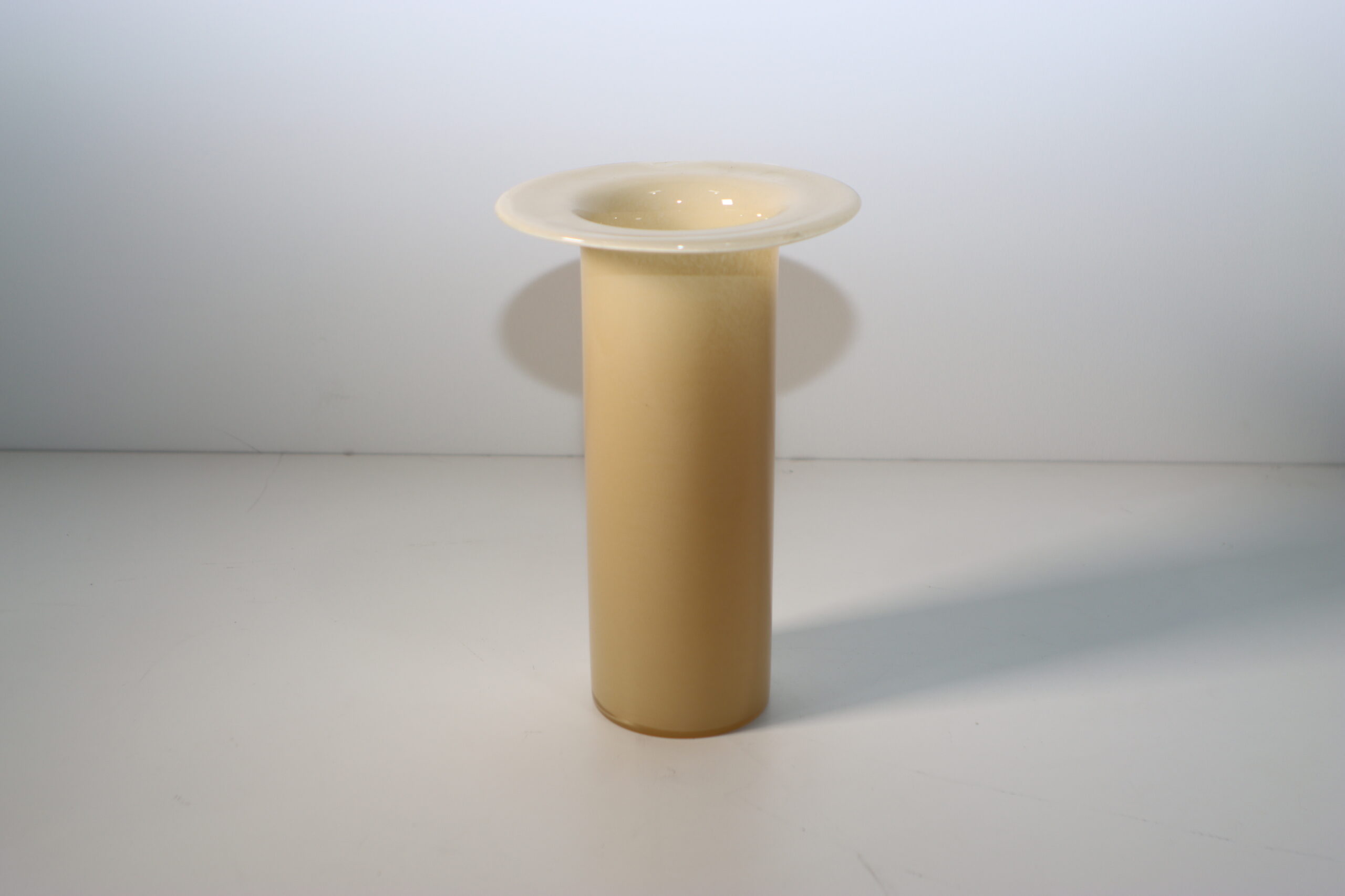 乳白色を帯びた半透明のグラデーションと、シャープに広がるフラットなリム(縁)の対比は、ミニマルなセット構築において、空間に柔らかな光の拡散と、秩序ある幾何学的なシルエットを象徴するプロップとして機能します。