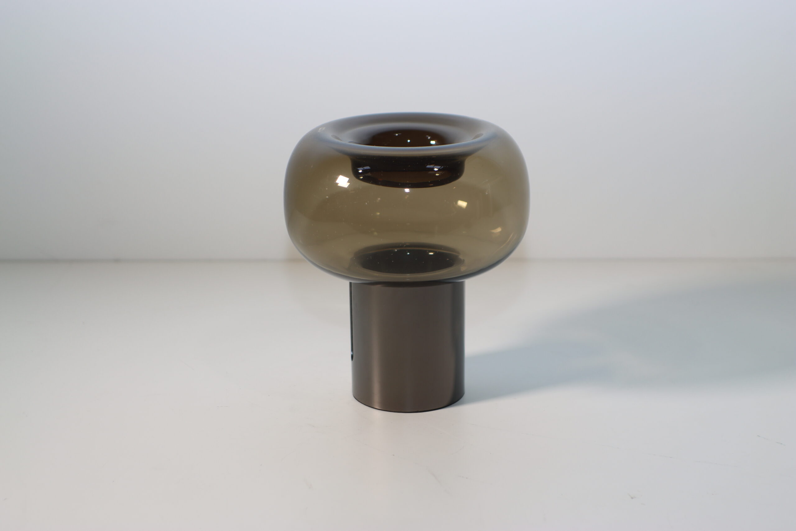 周囲の情景を映し込むベースと、光を穏やかに透過させるスモークガラスが生み出す多層的な輝きは、ミニマルなセット構築において、空間に現代的で知的な奥行きをもたらすステートメントピースとして機能します。