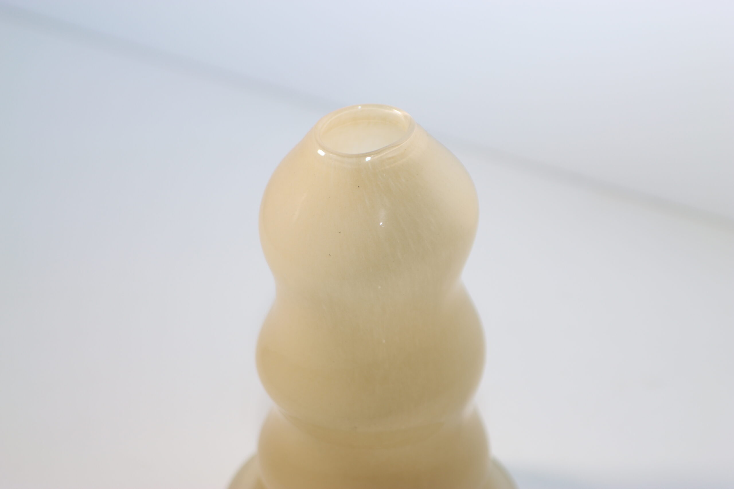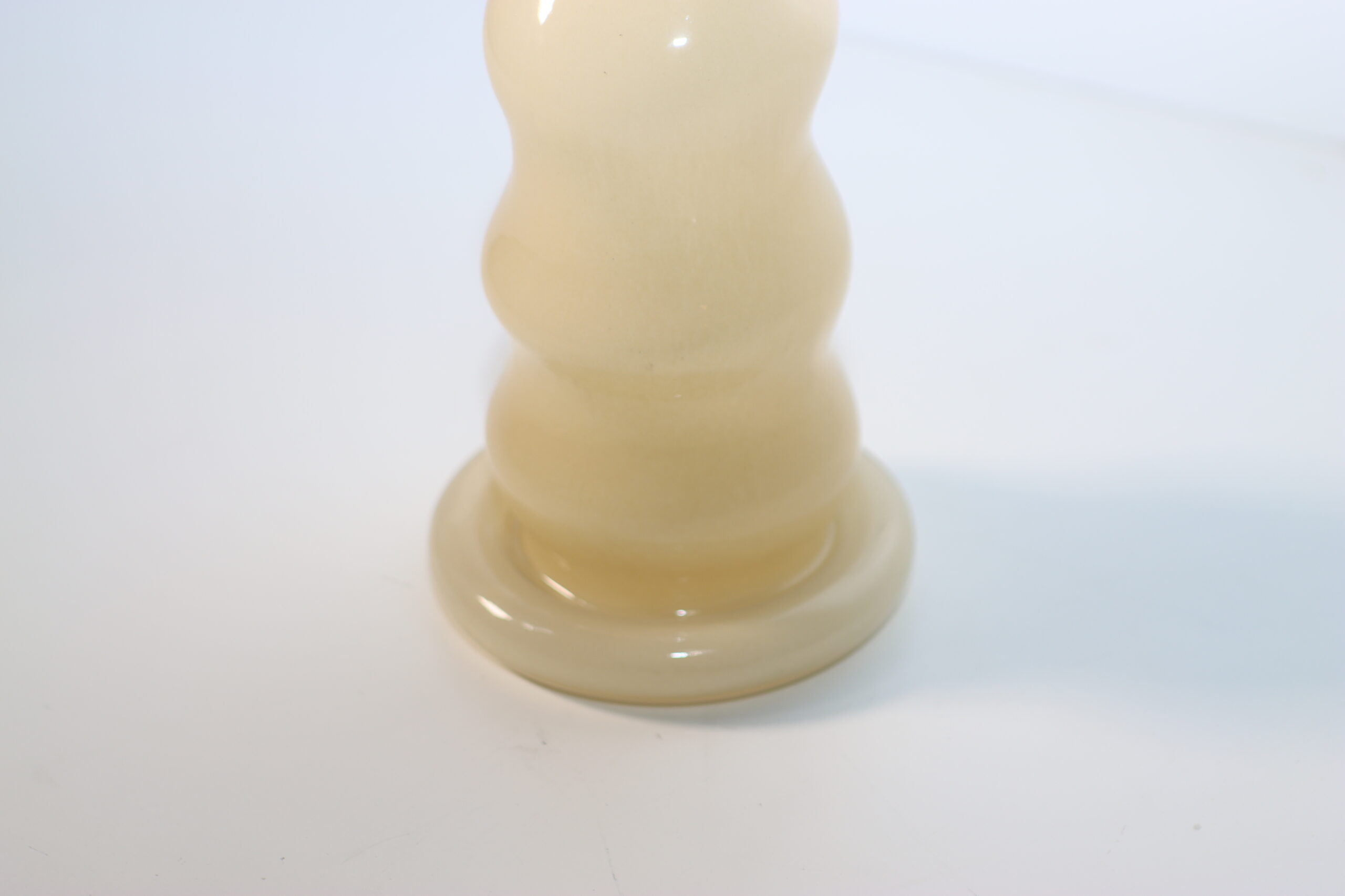 雪花石膏(アラバスター)を想起させる、まろやかで半透明な乳白色のグラデーションは、光を内側に抱き込み、ミニマルなセット構築において、空間に柔らかい奥行きと上質な静寂をもたらすプロップとして機能します。