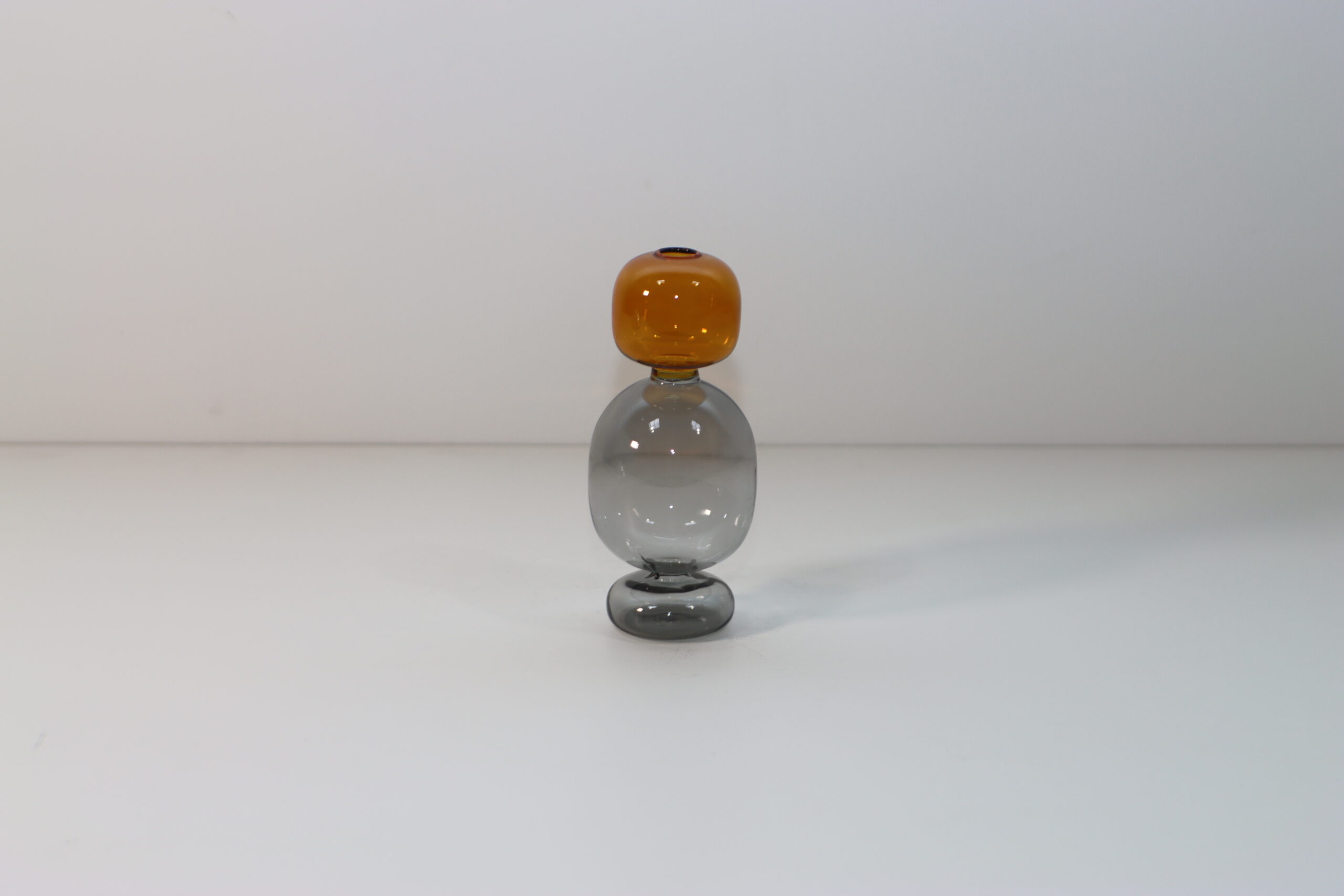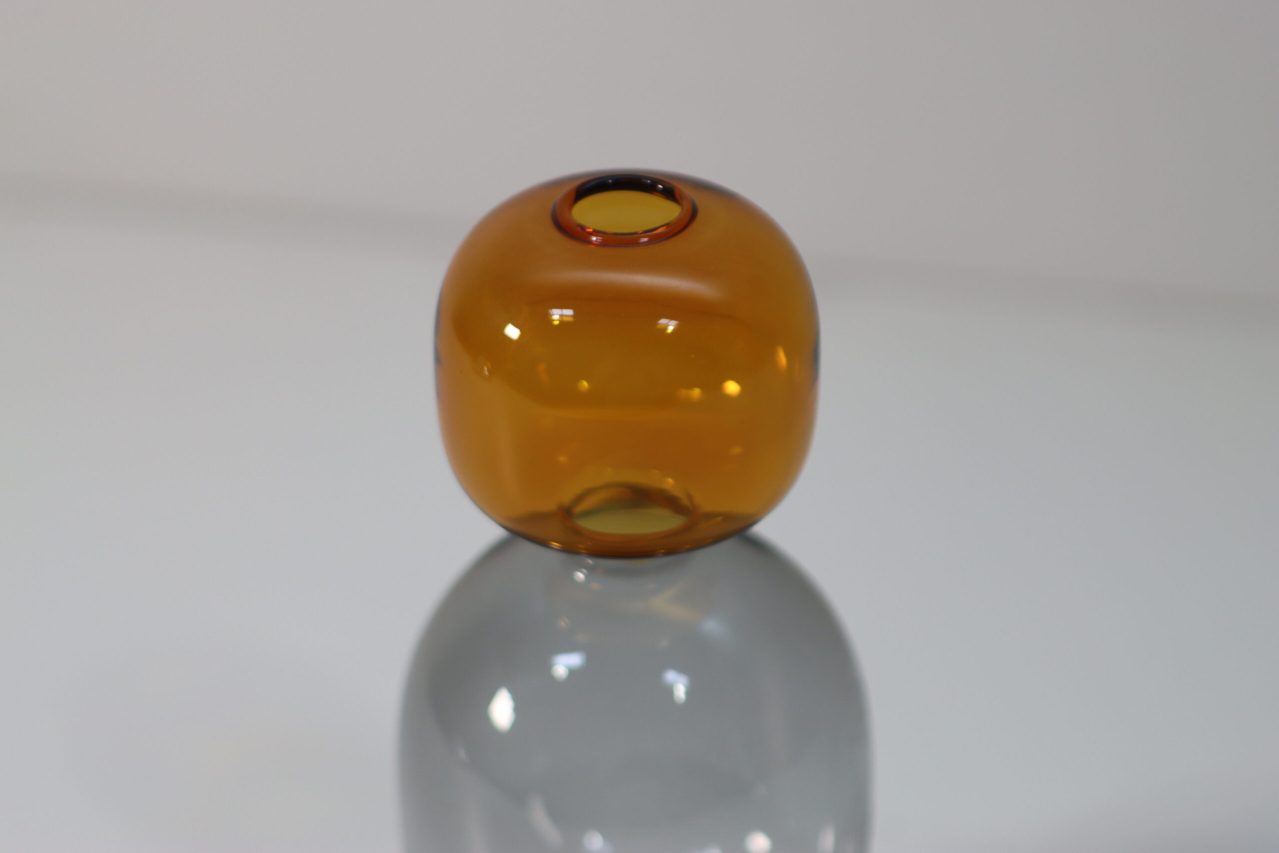 クリアな楕円形のベースに、熟成した琥珀のようなアンバーの球体を冠した「色彩の対話」が、空間に上品な落ち着きと、現代的な工芸美を付与します。