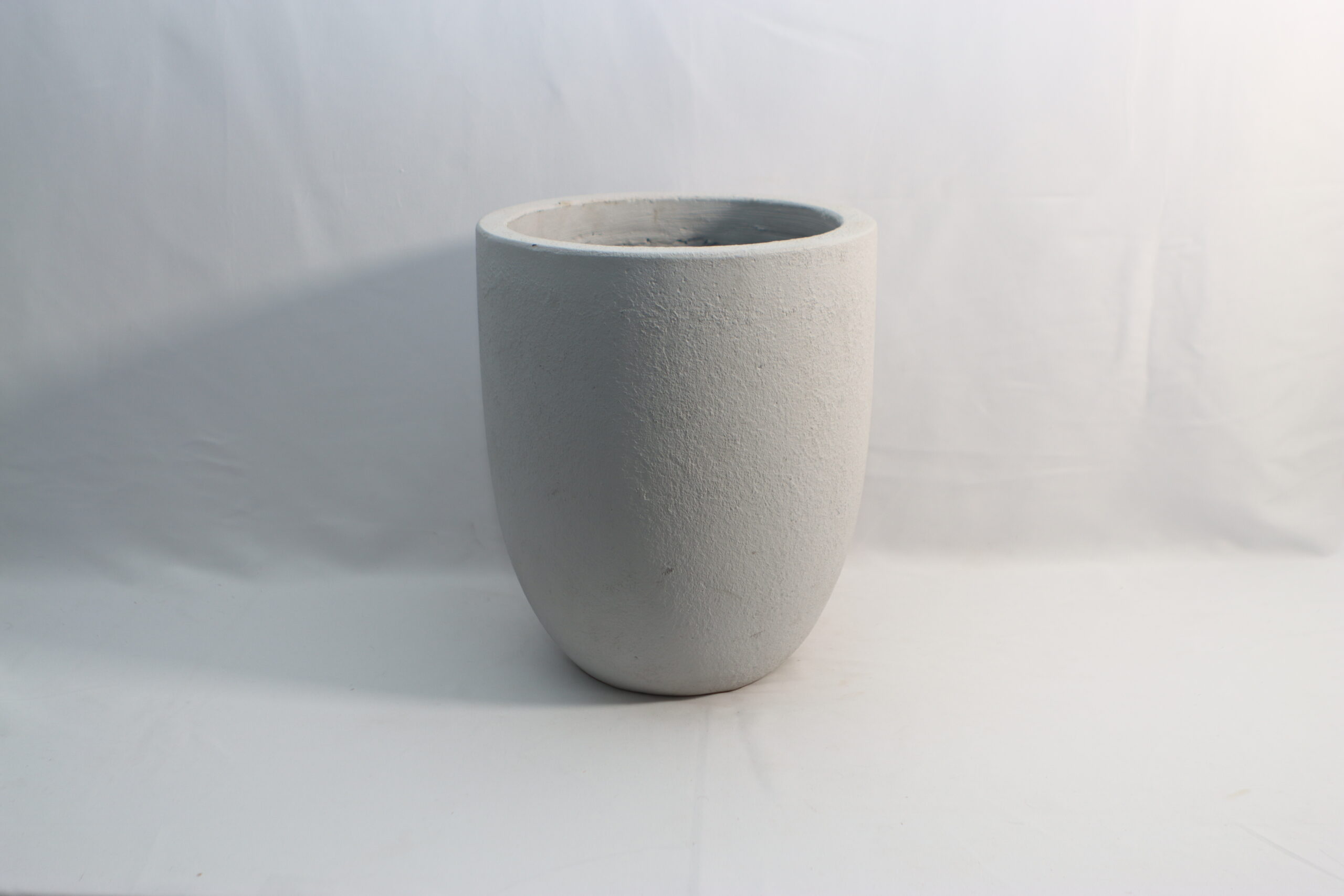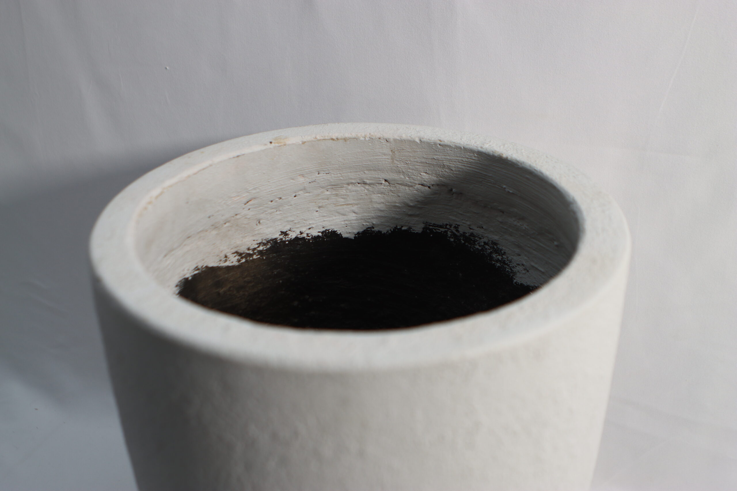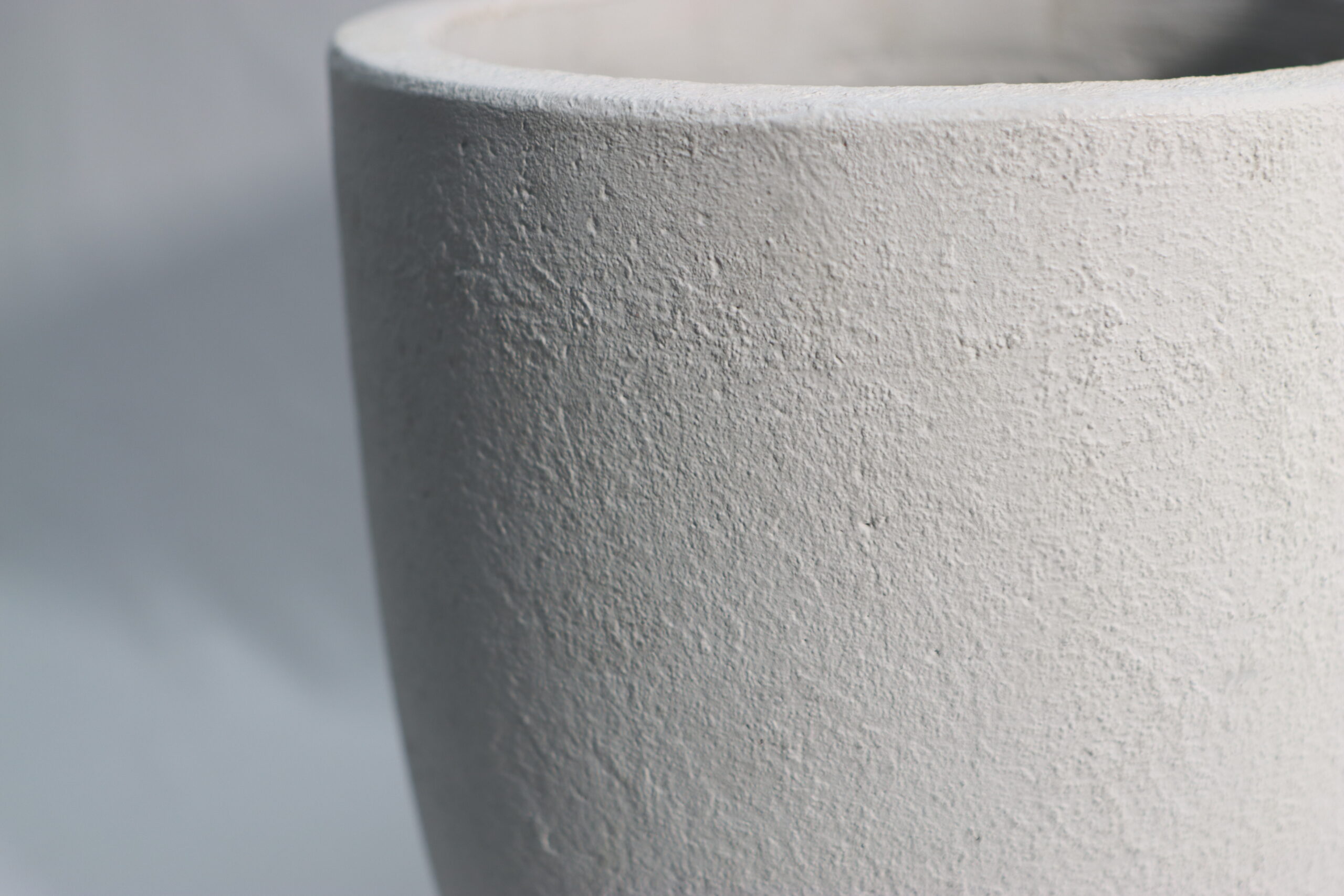 デザインホテルのテラスや、バイオフィリックデザインを取り入れた企業のレセプションエリアにおける、大型の観葉植物を美しく引き立てるための植木鉢としての配置。
