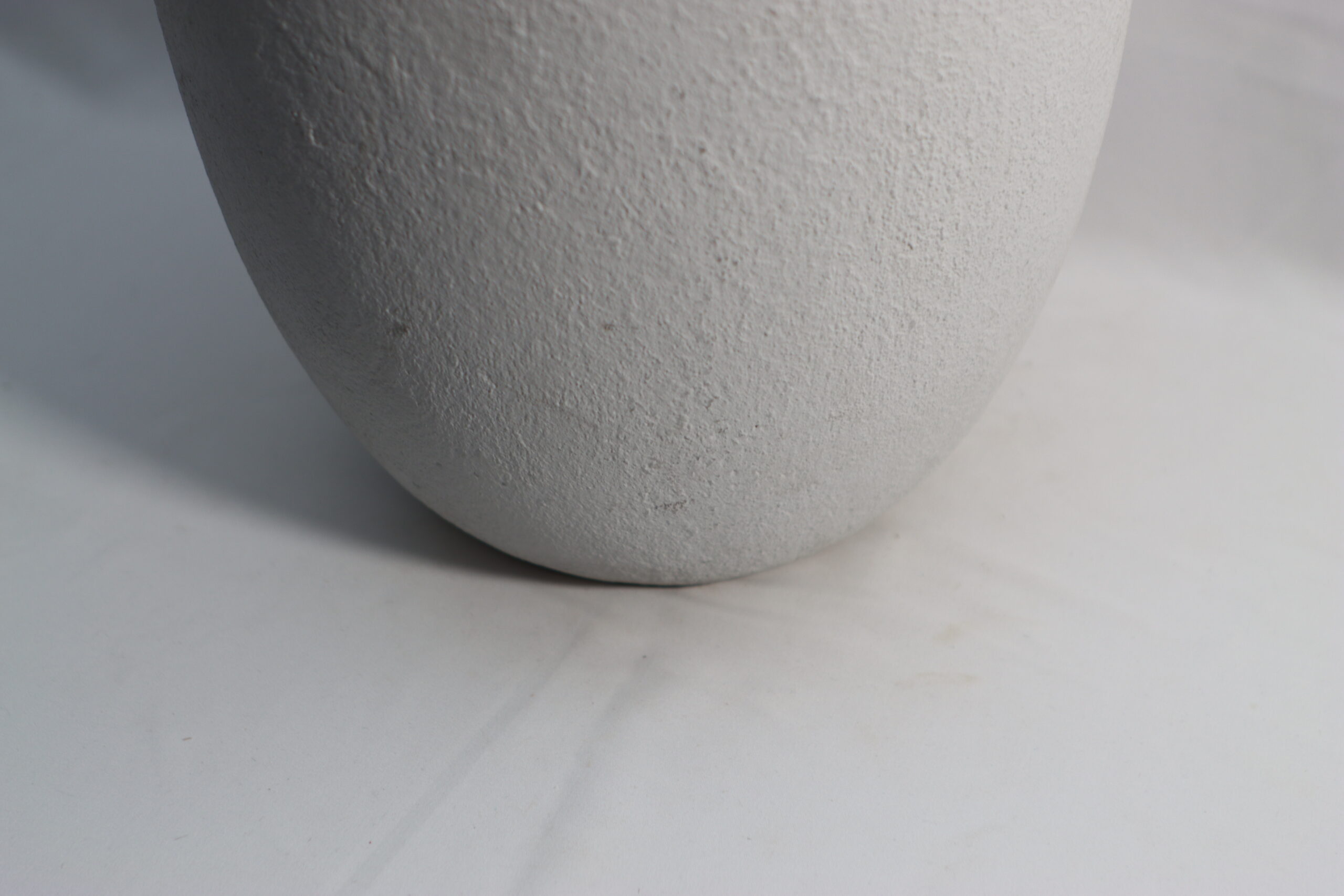 重心を低く抑えた安定感のある卵型のフォルムは、ミニマルなセット構築において、無機質なマテリアルと自然の要素を繋ぐ「柔らかな結節点」として機能します。