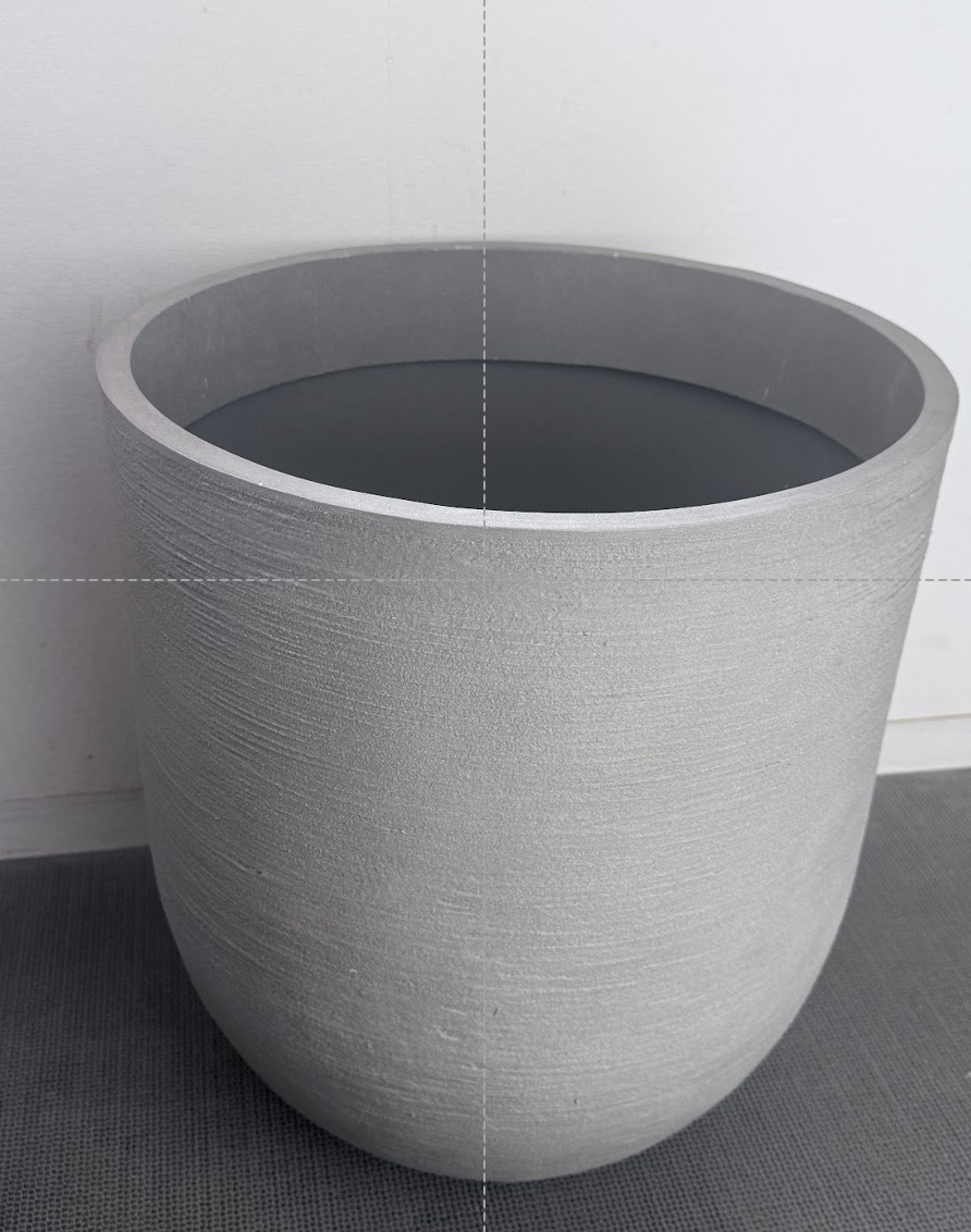 【注意事項】 プラスチック製のため、大型ながら非常に軽量で移動が容易な一方、背の高い植物を植える際は重心の安定性を高めるための重り(砂利など)を底面に配置することを推奨いたします。また、表面の微細な溝に汚れが溜まらないよう、定期的な水拭きによるメンテナンスが効果的です。