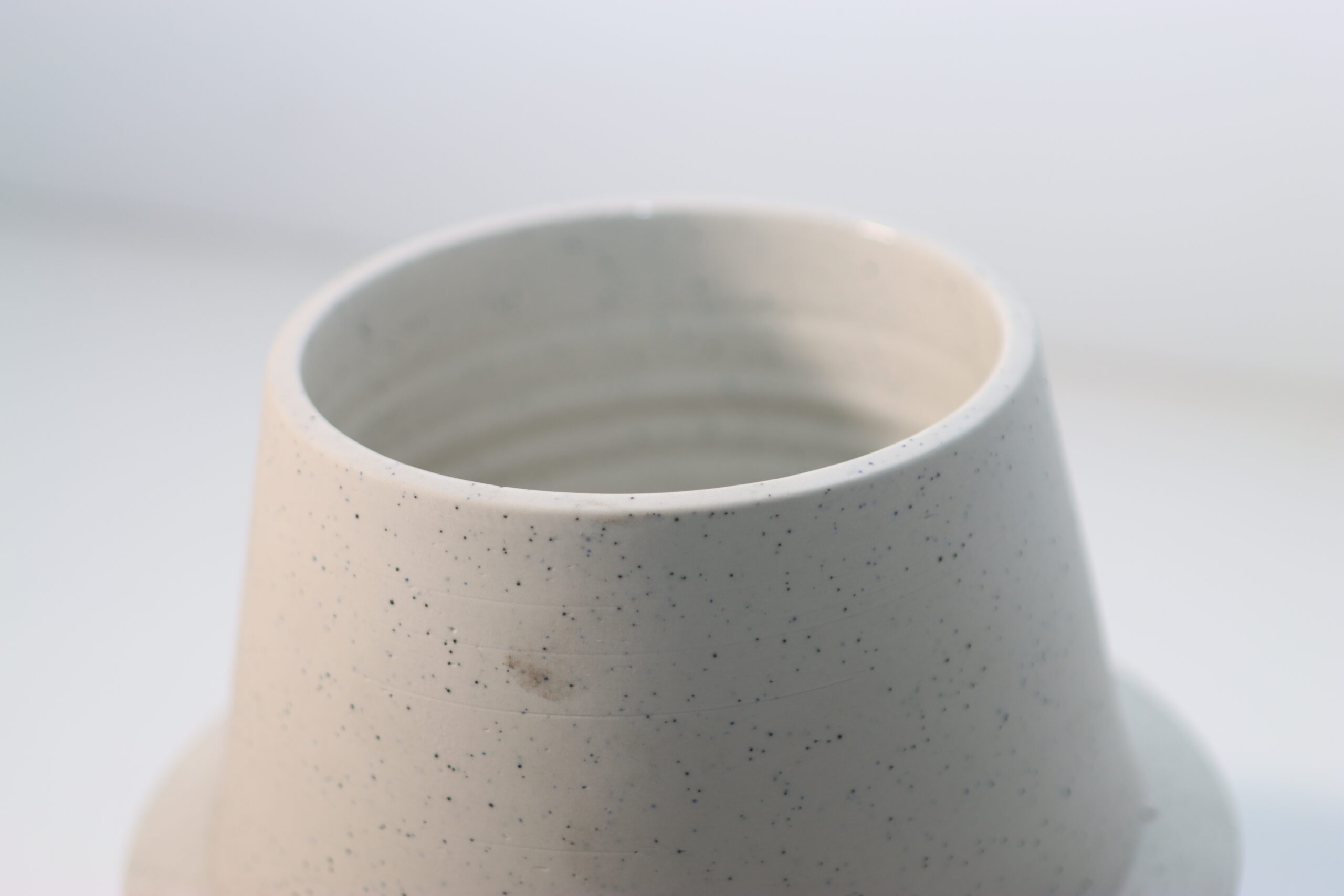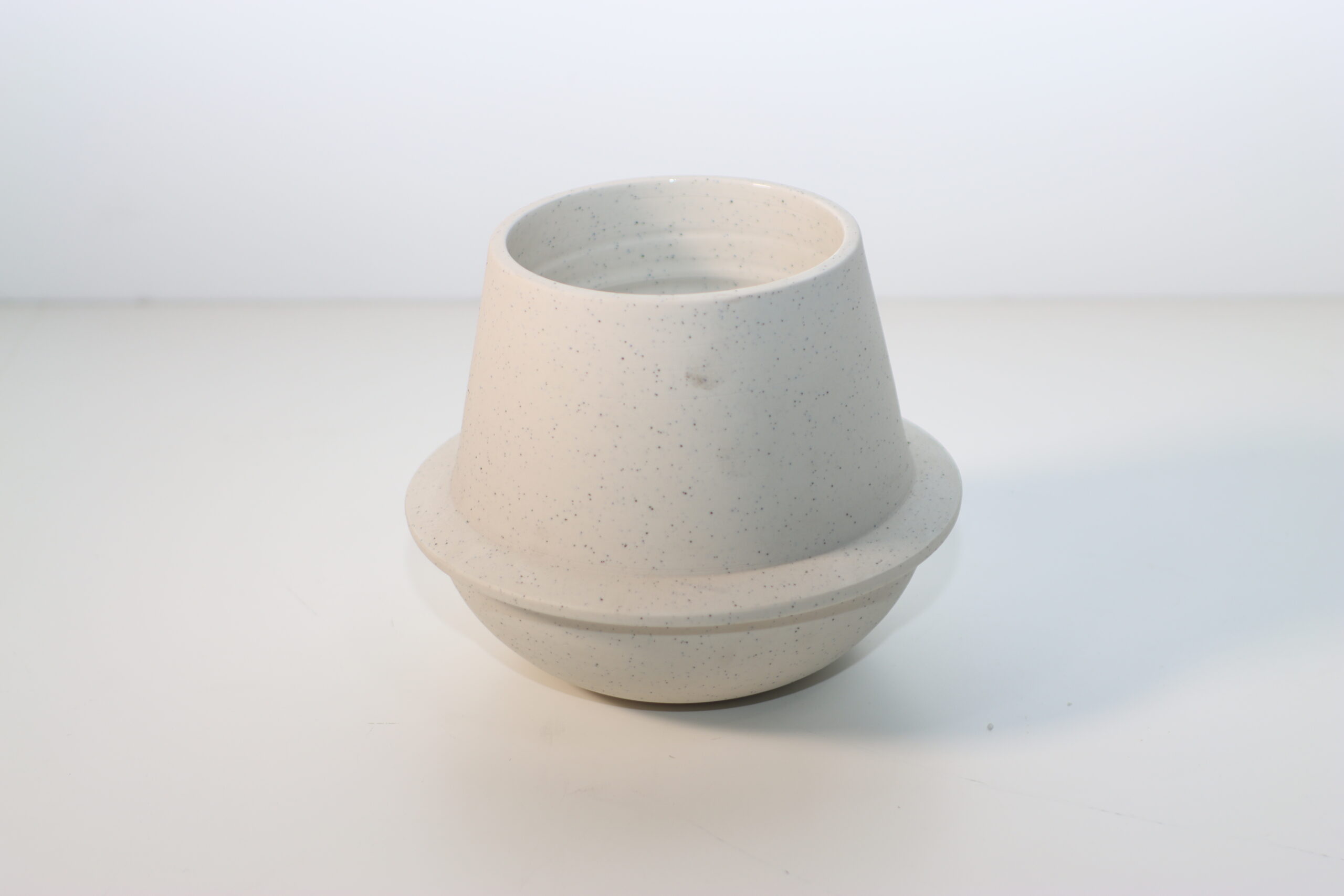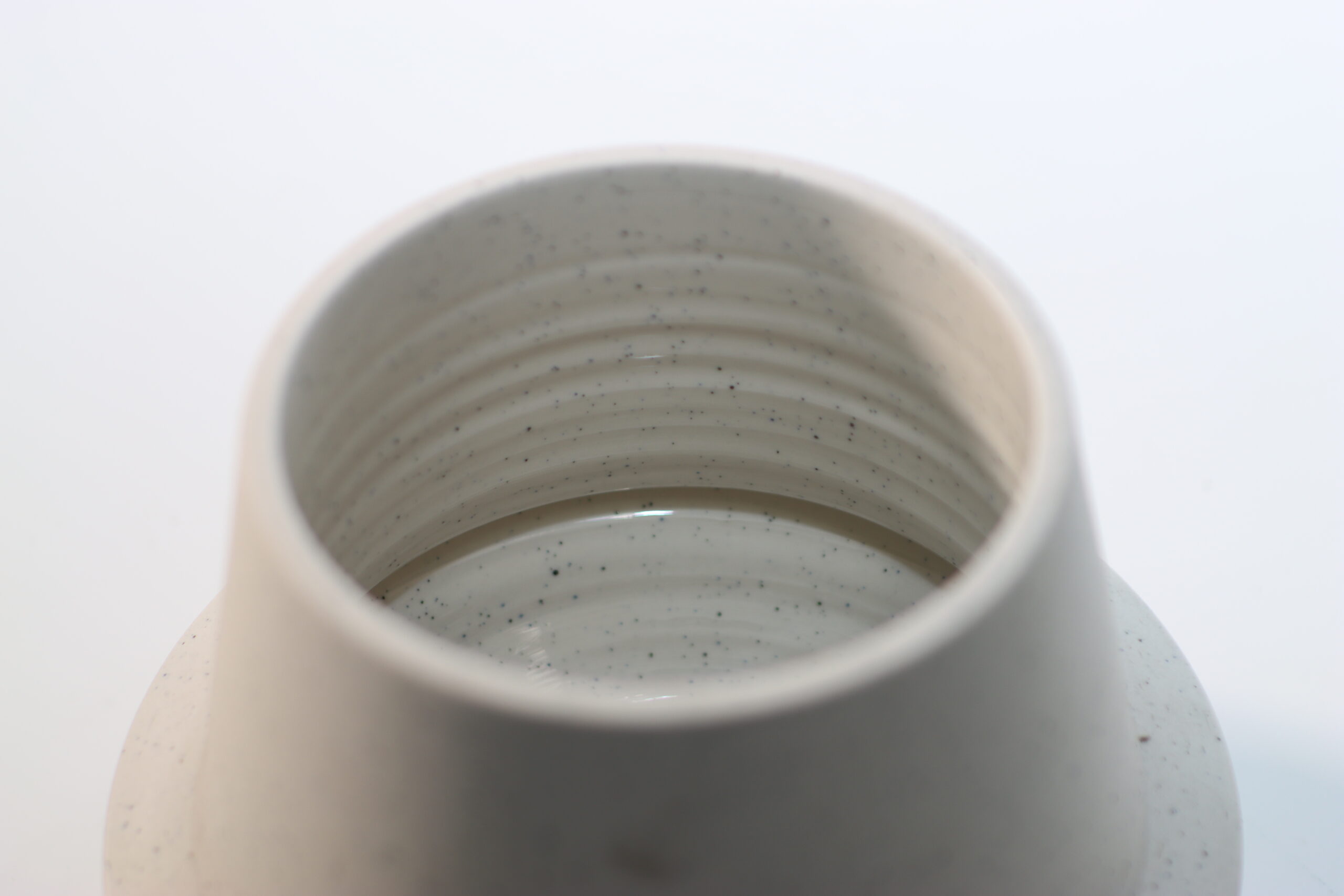 【注意事項】 本製品は、陶磁器特有のマットで多孔質な質感が最大の特徴です。汚れを吸着しやすいため、展示の際は清潔な手で取り扱い、埃などは柔らかいブラシ等で優しく払うメンテナンスを推奨いたします。また、独特の「張り出した縁(エッジ)」は視覚的な美しさと同時に繊細さを併せ持っているため、設置や移動の際は、底部から包み込むように支えて慎重に扱ってください。