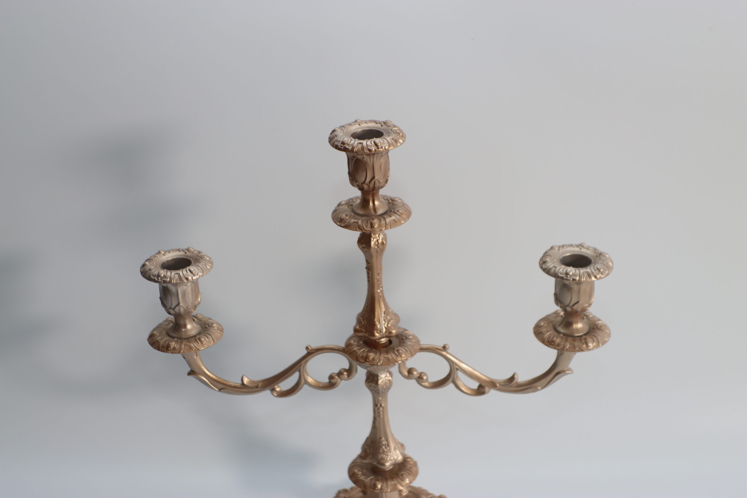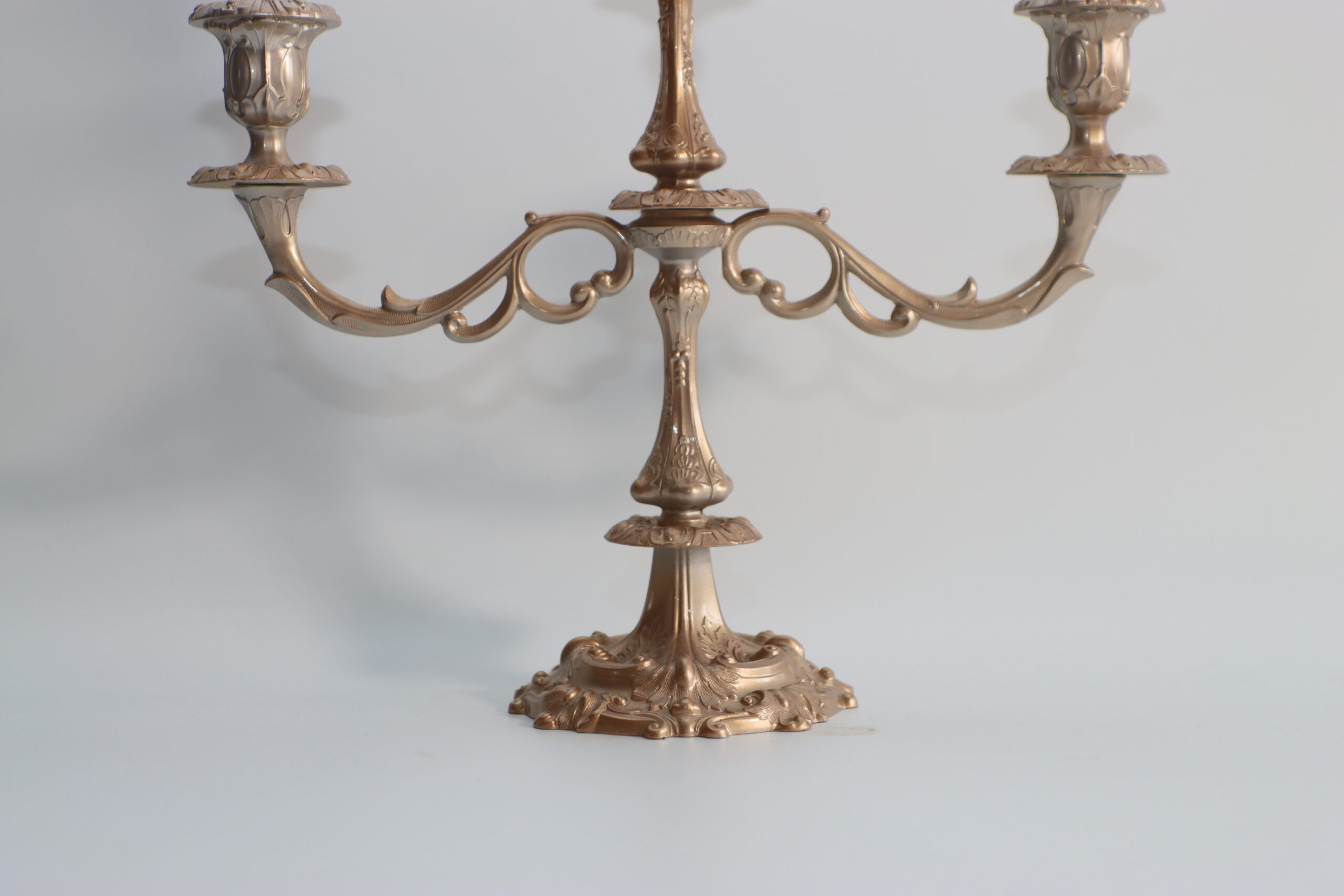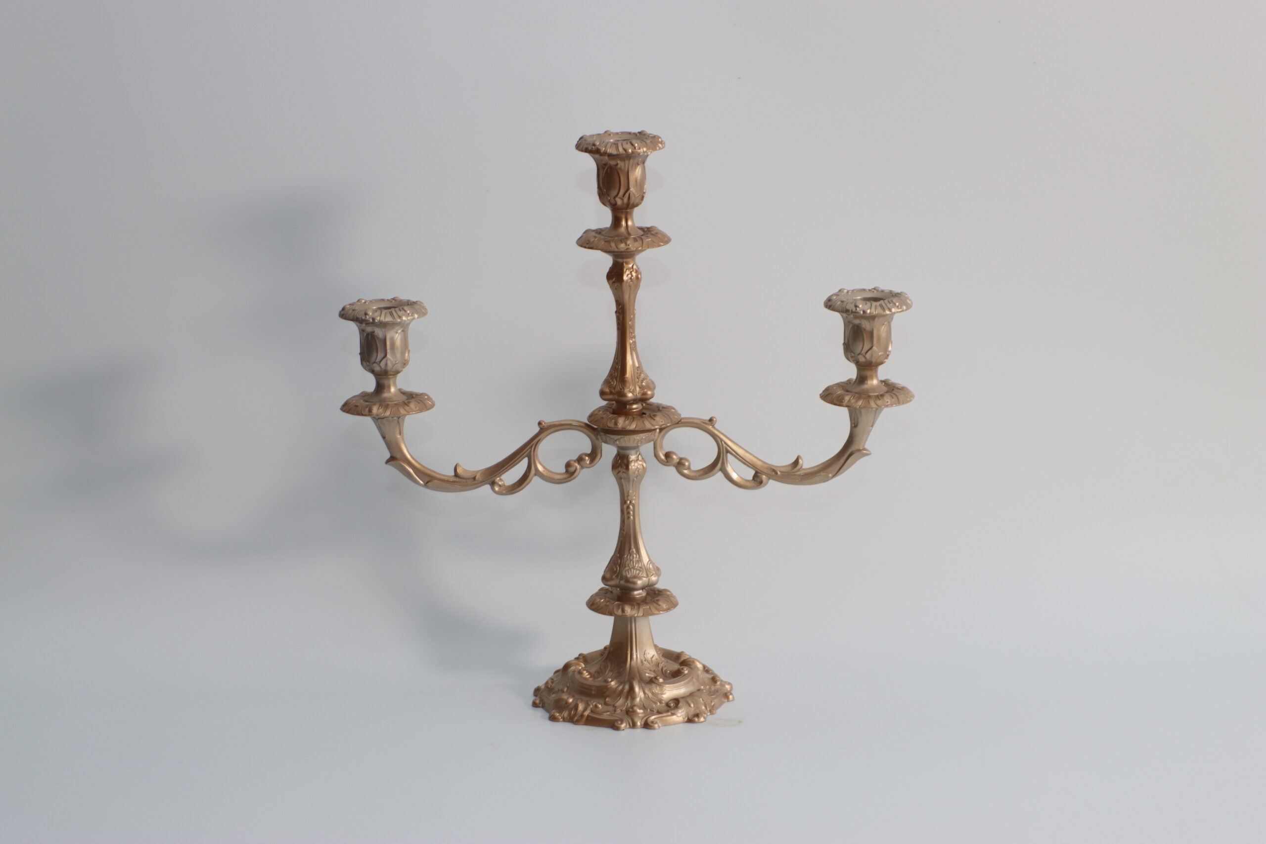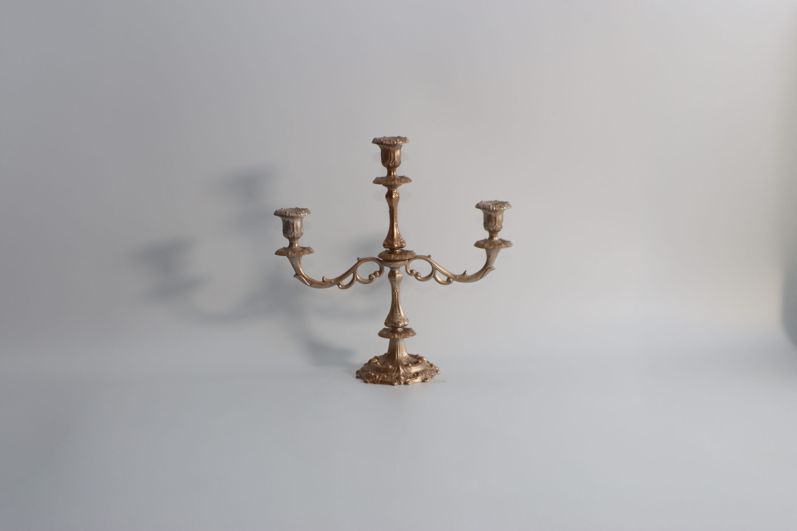 複数アームのシンメトリーが印象的な、クラシックデザインのキャンドルスタンド。