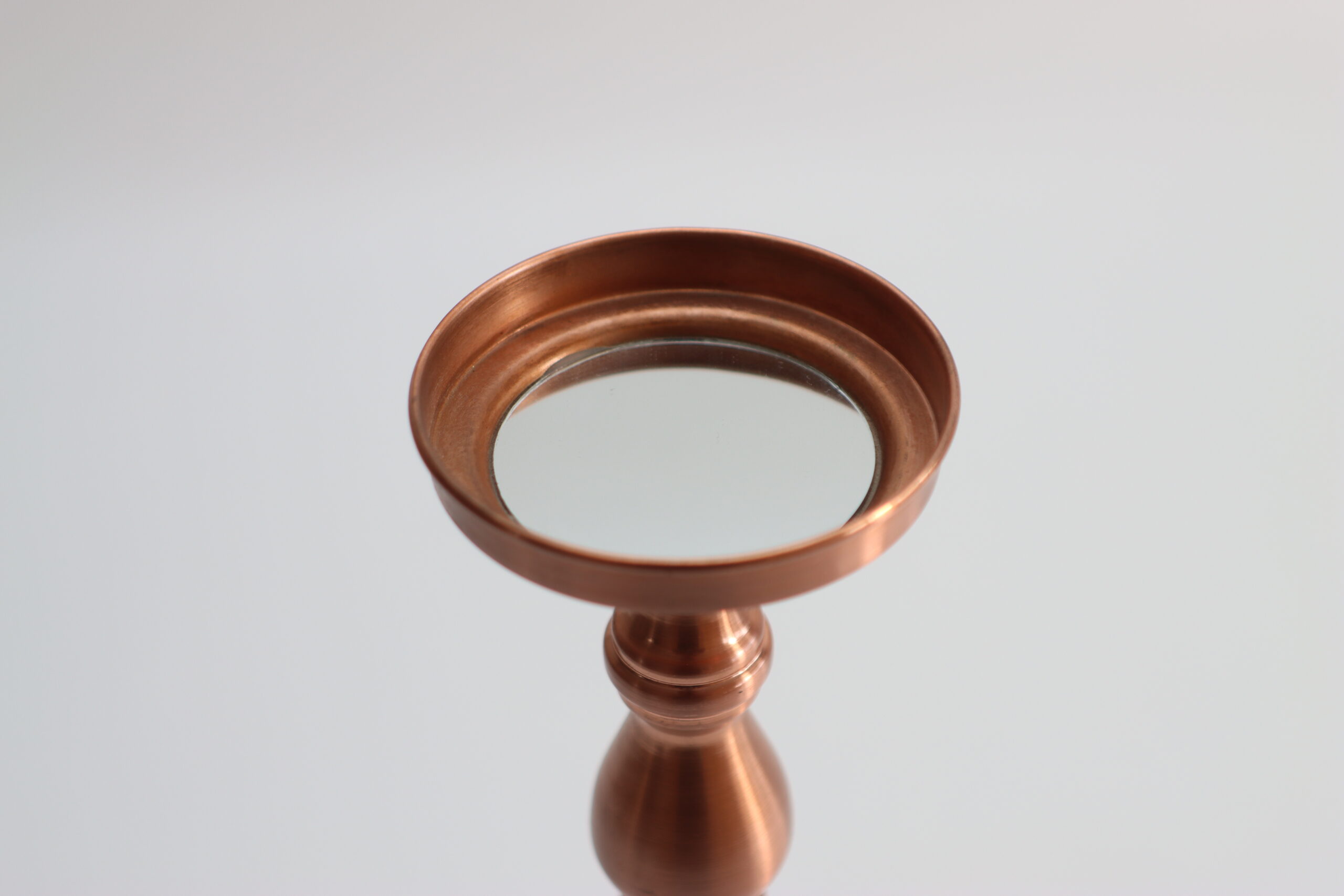 銅素材ならではの重厚感と温かみが印象的な、キャンドルスタンド。