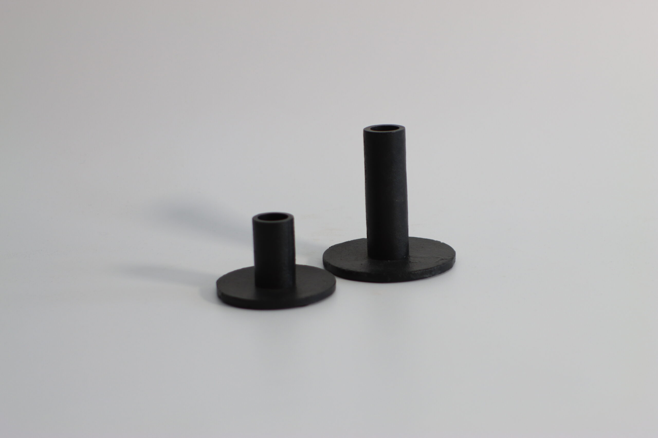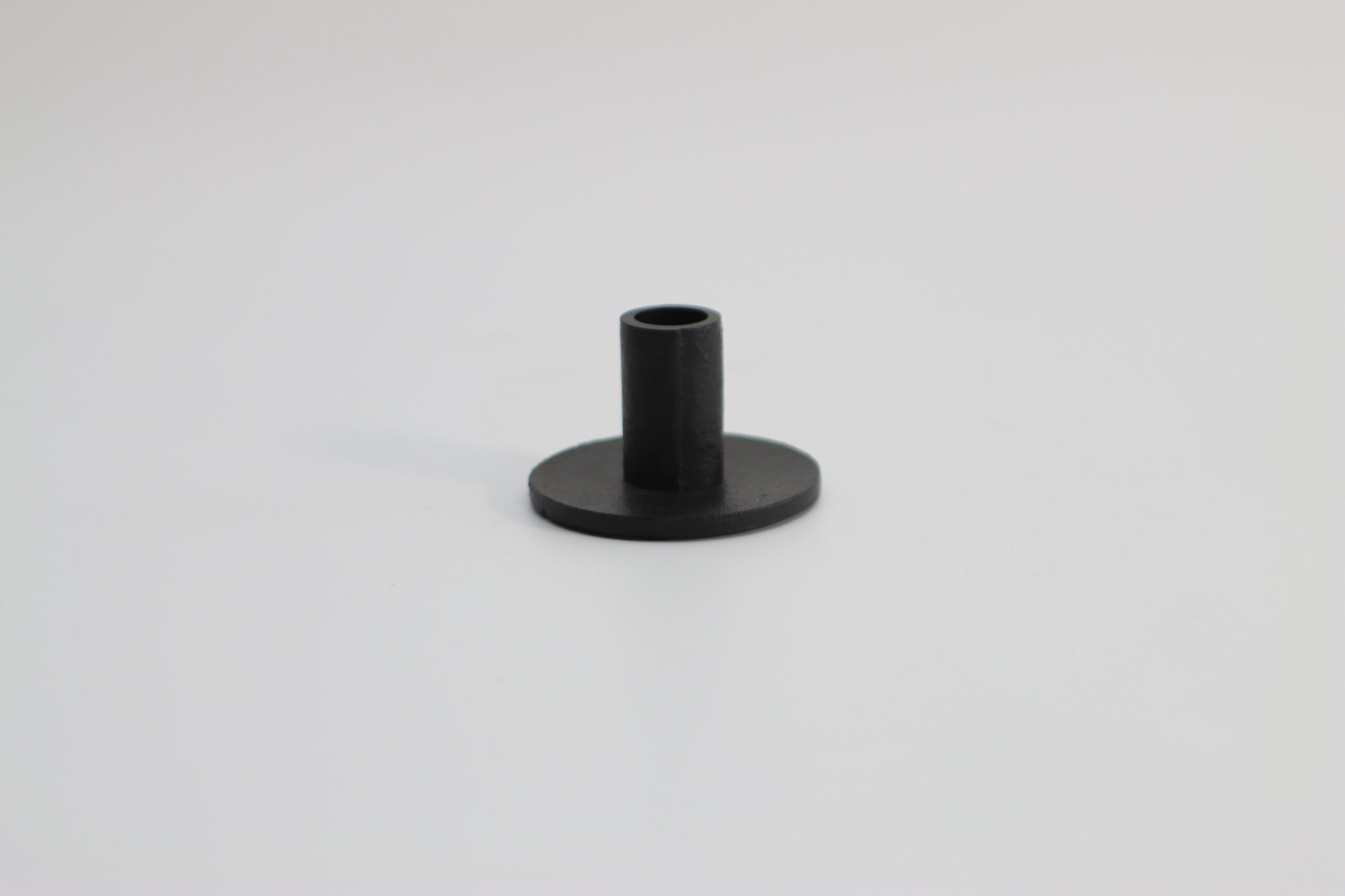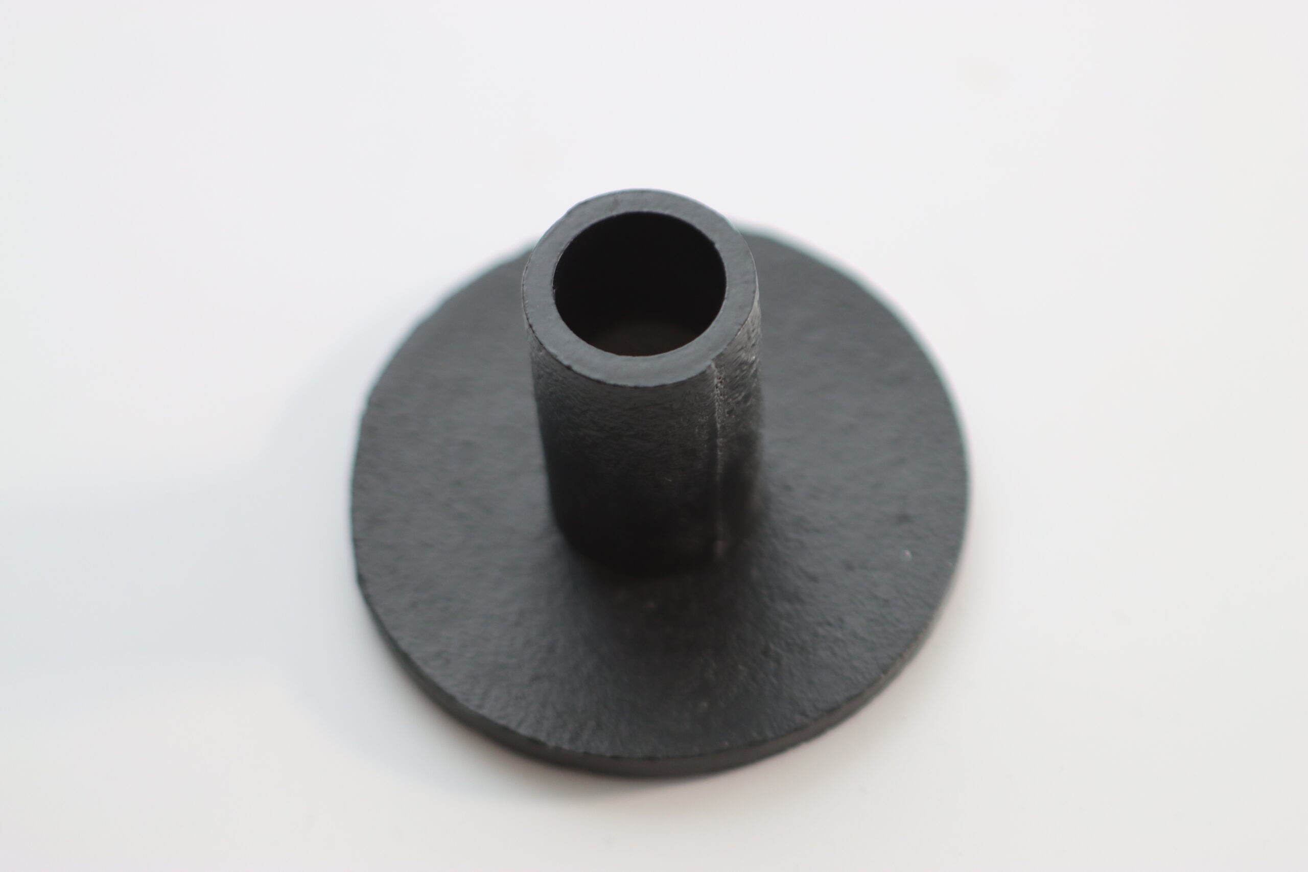 コンパクトな円盤ベースに短い軸を備えた、シンプルなキャンドルホルダー。