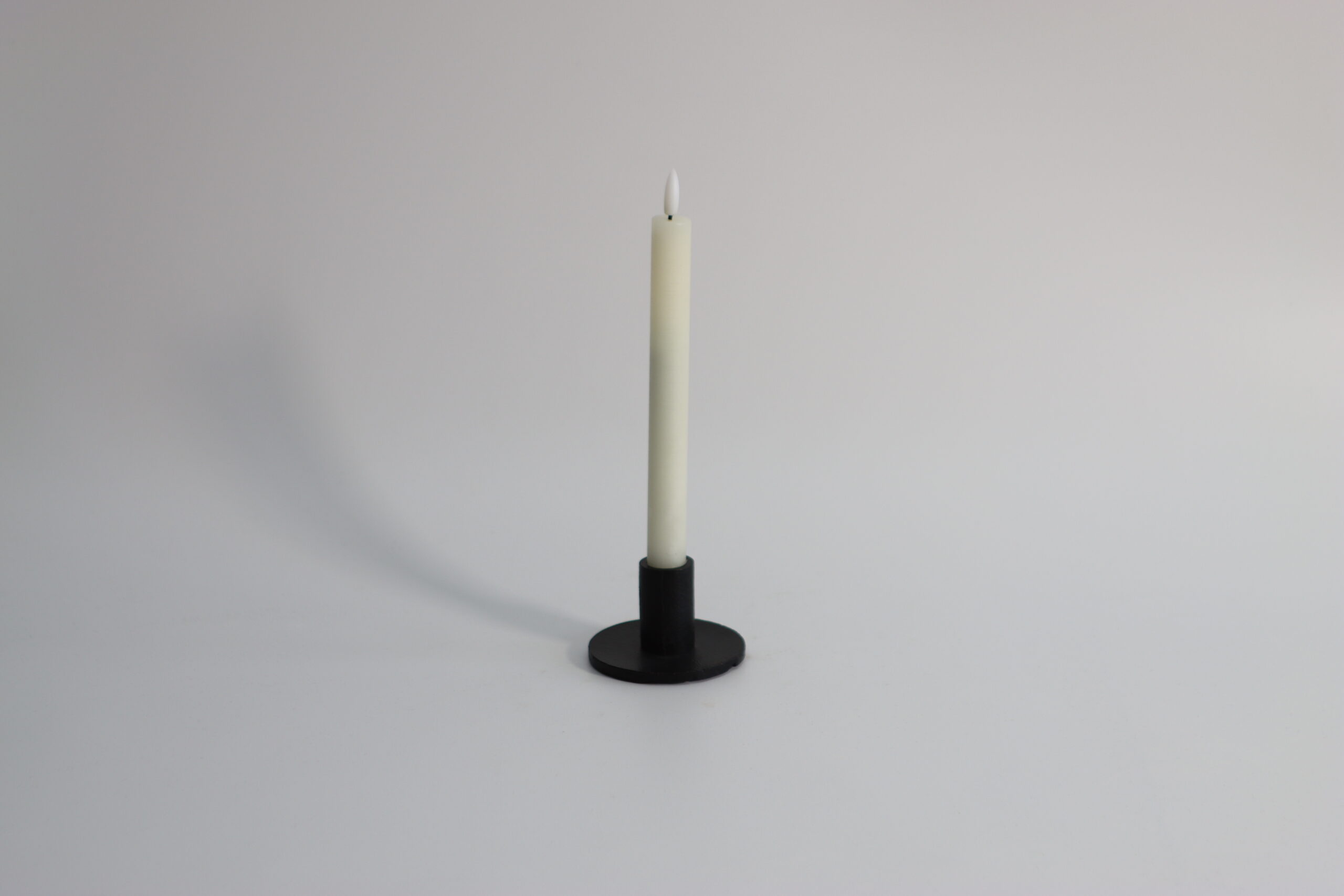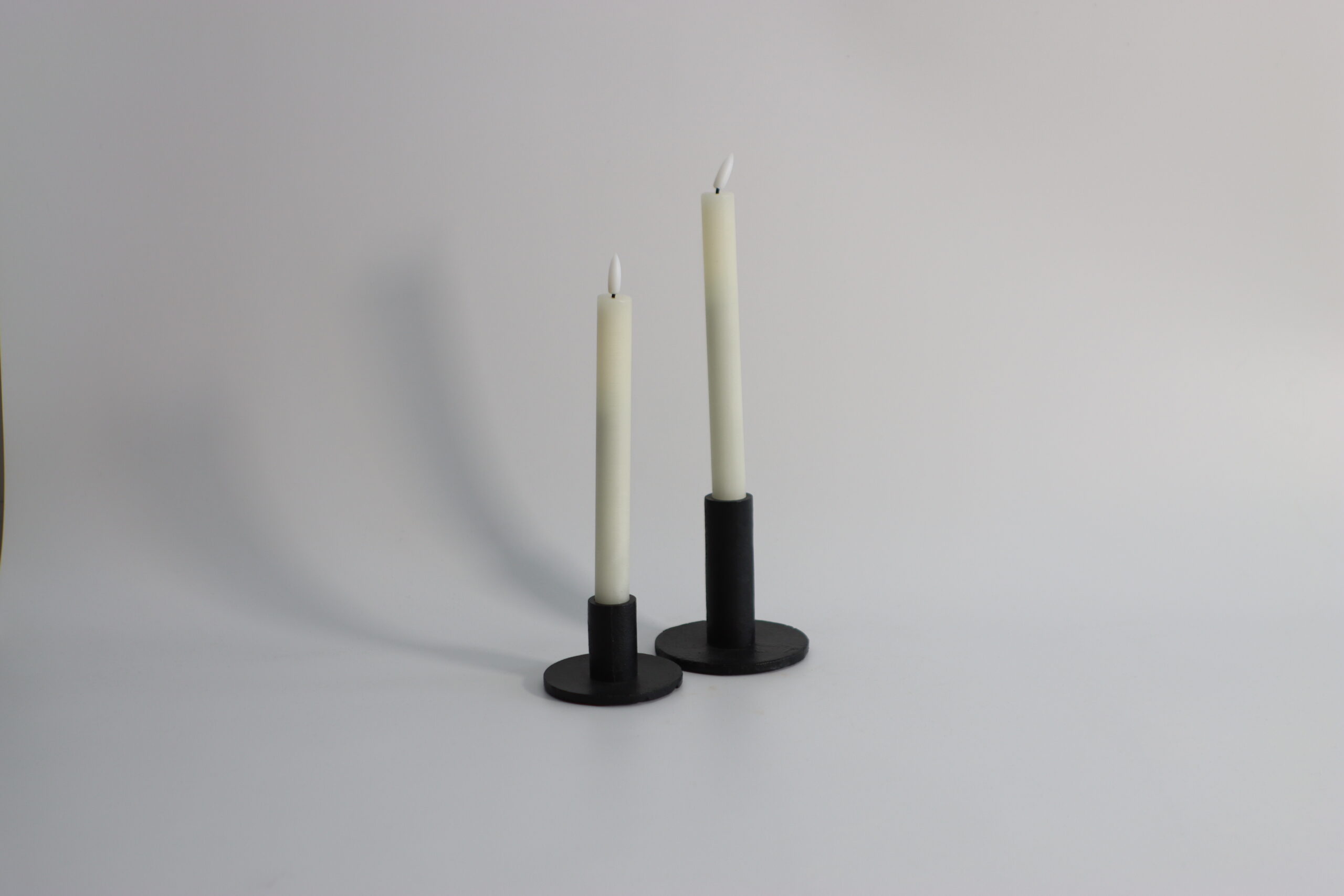 円盤ベースに縦ラインを持たせた、ミニマルデザインのキャンドルホルダー。