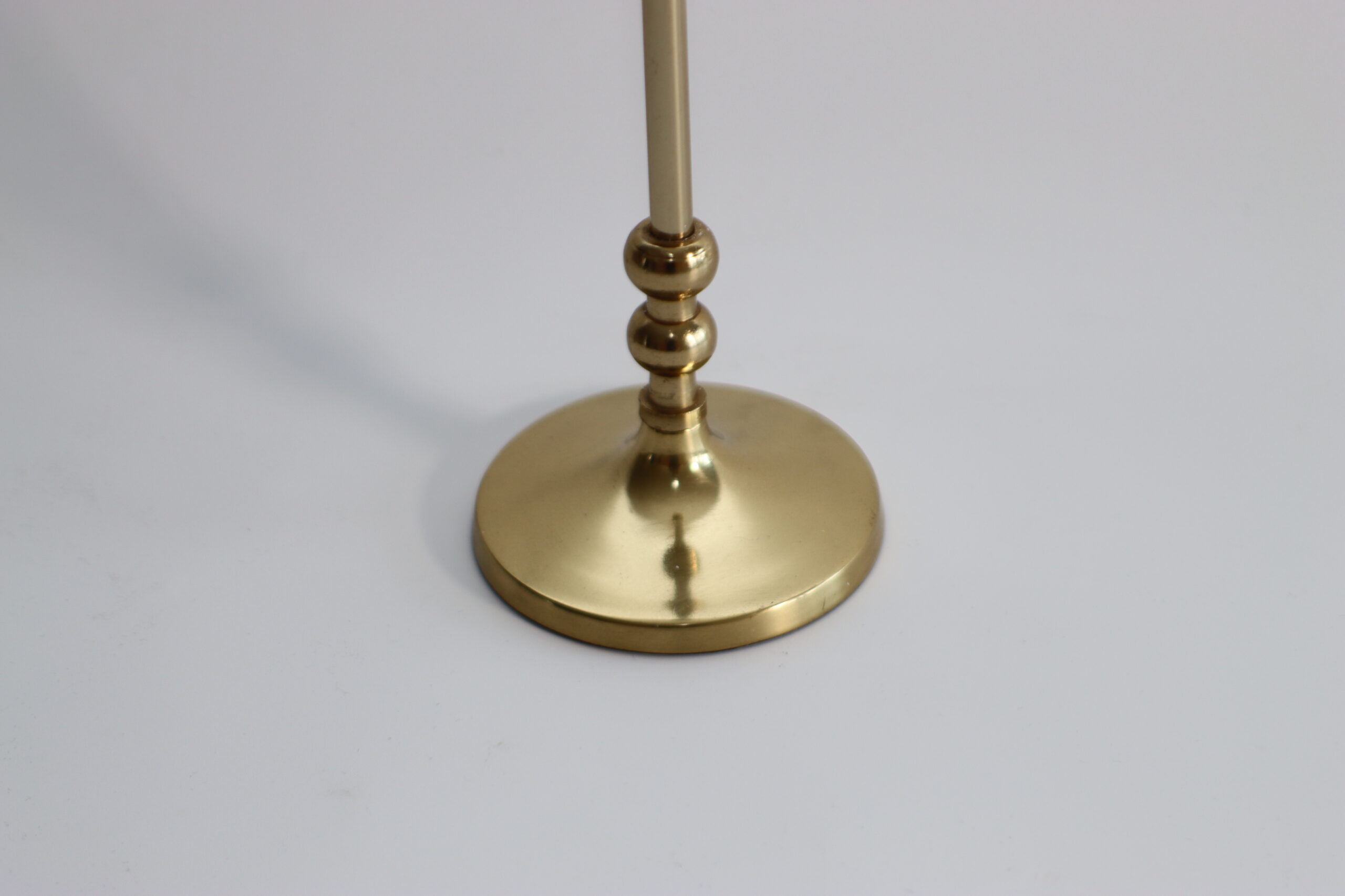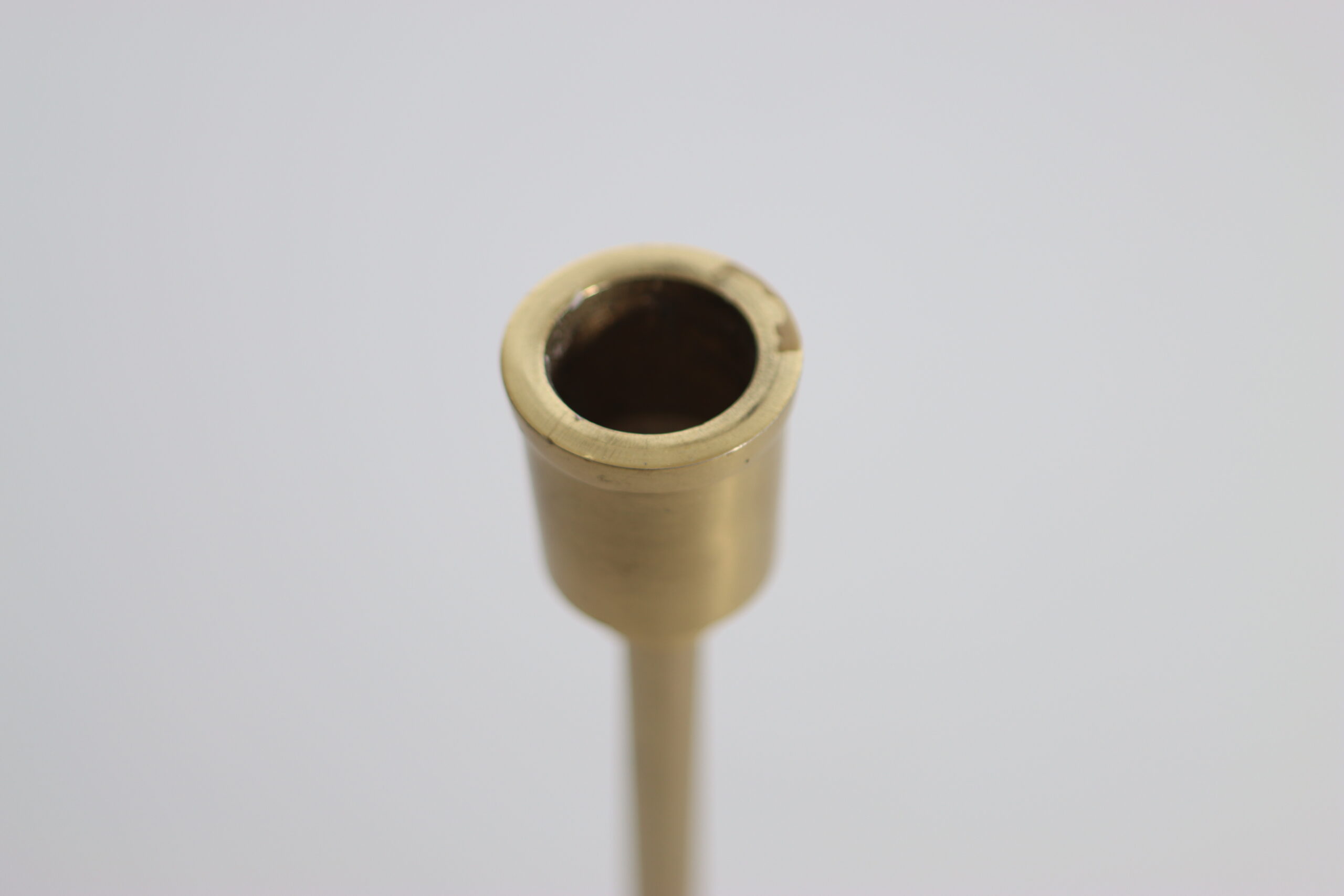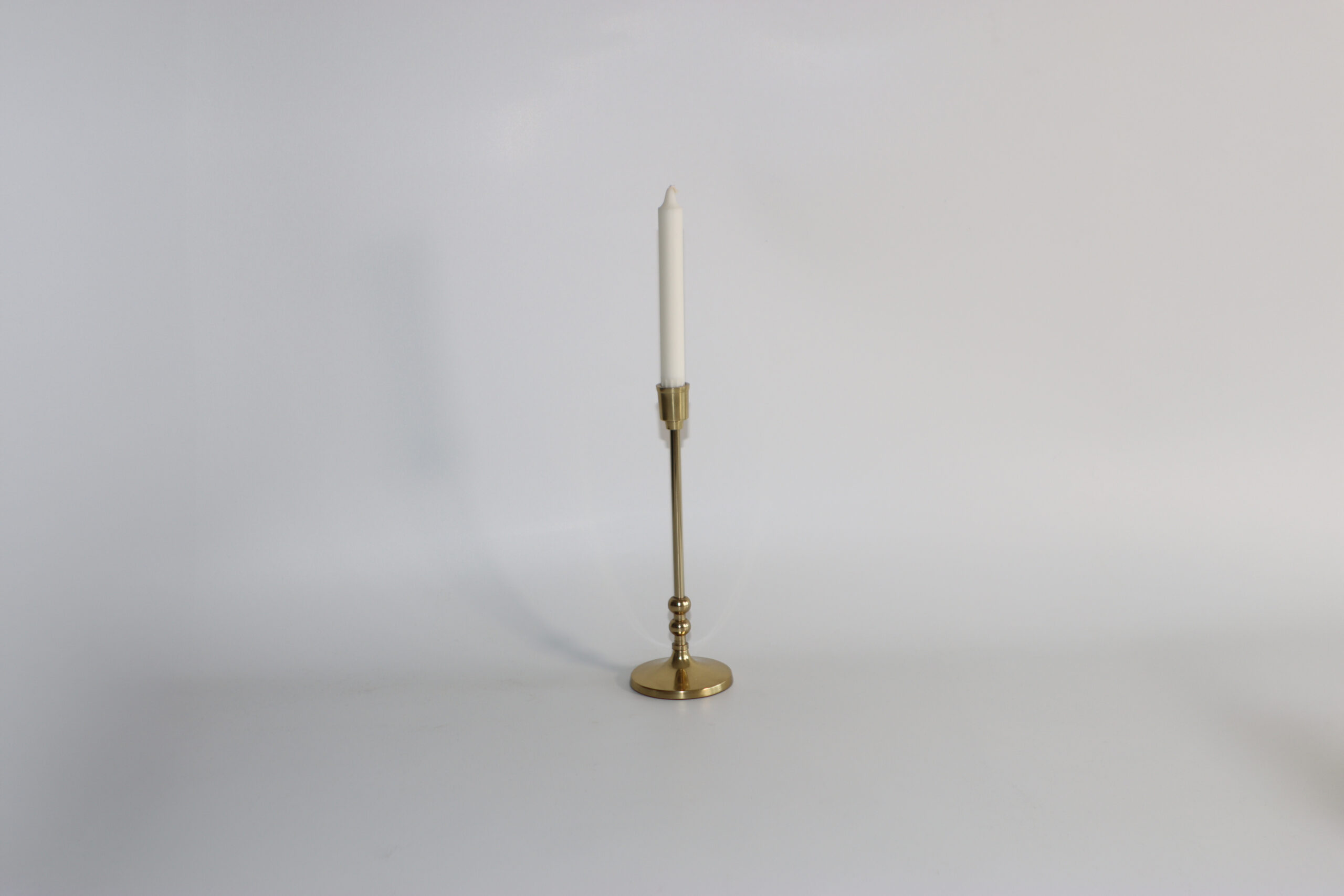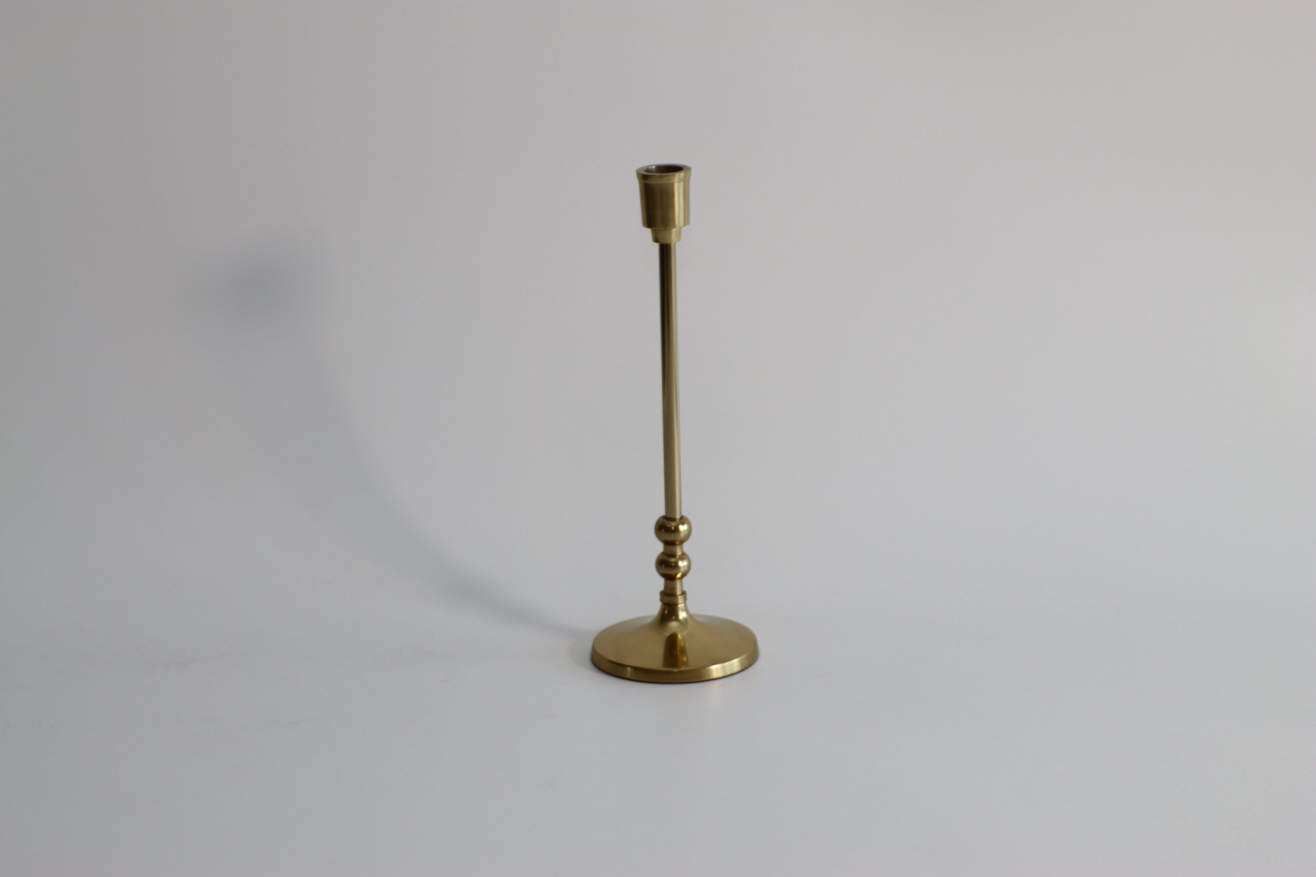 真鍮と思われる金属素材の、細身で高さのあるキャンドルスタンド。