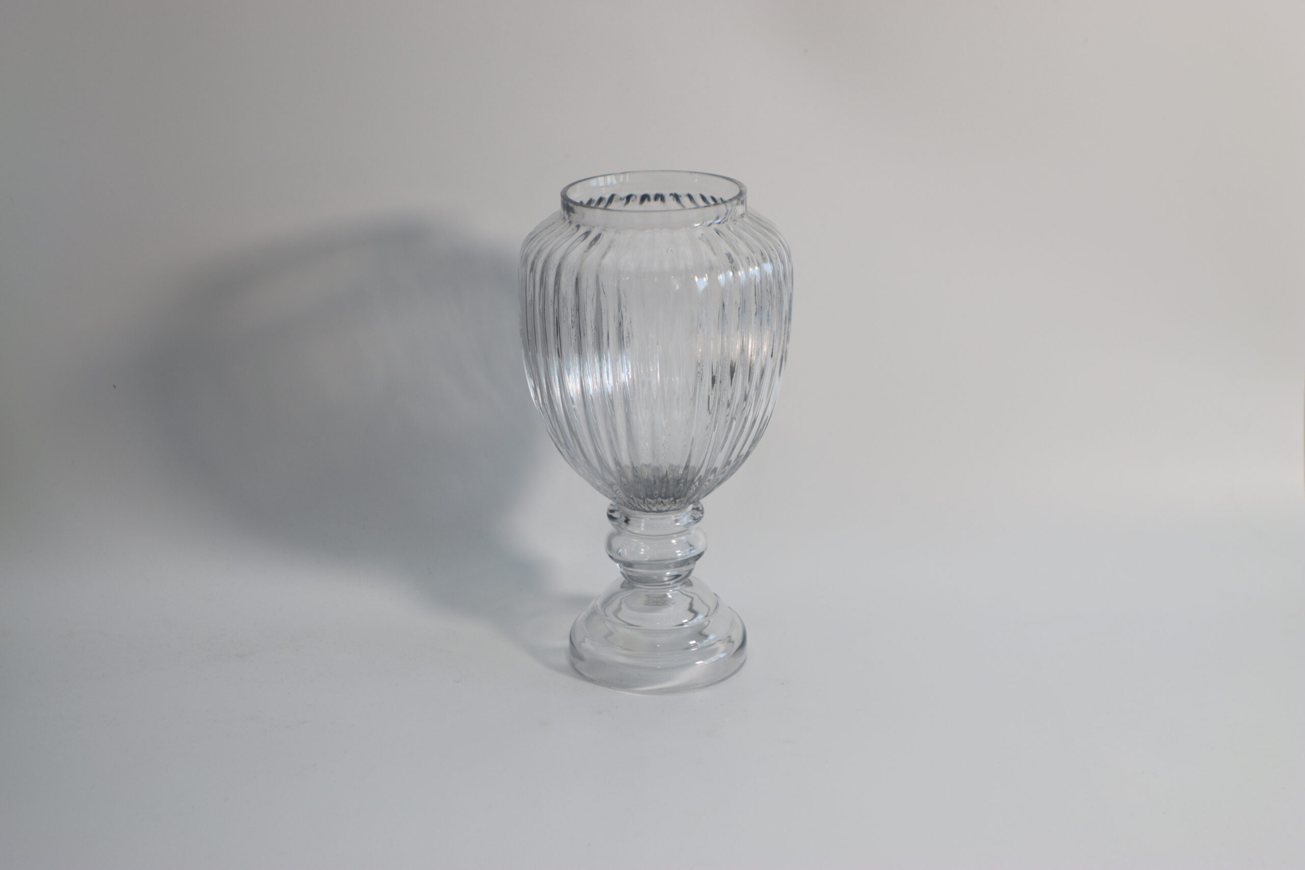 カットガラスの装飾が美しい、脚付きタイプのフラワーベース。