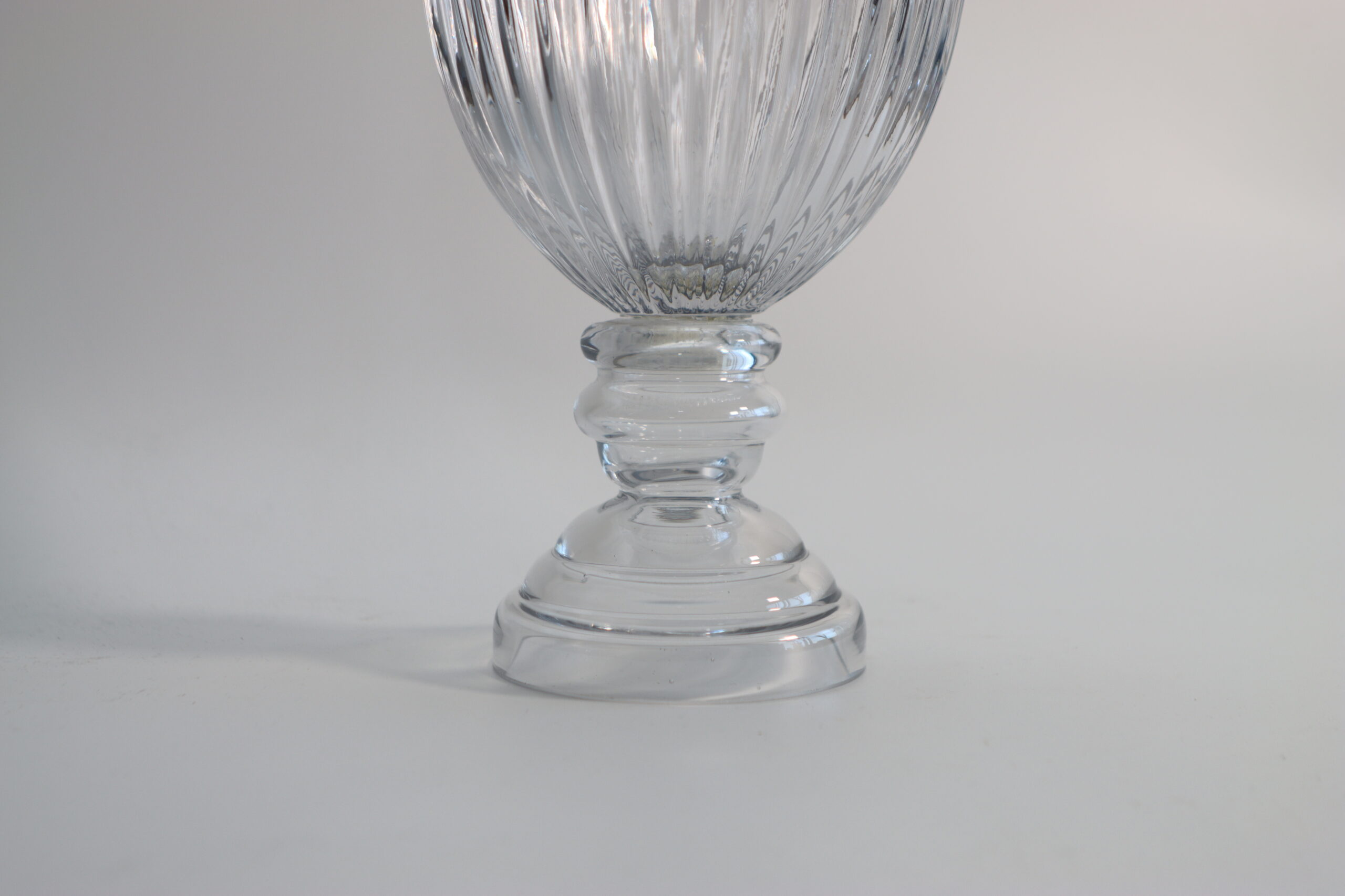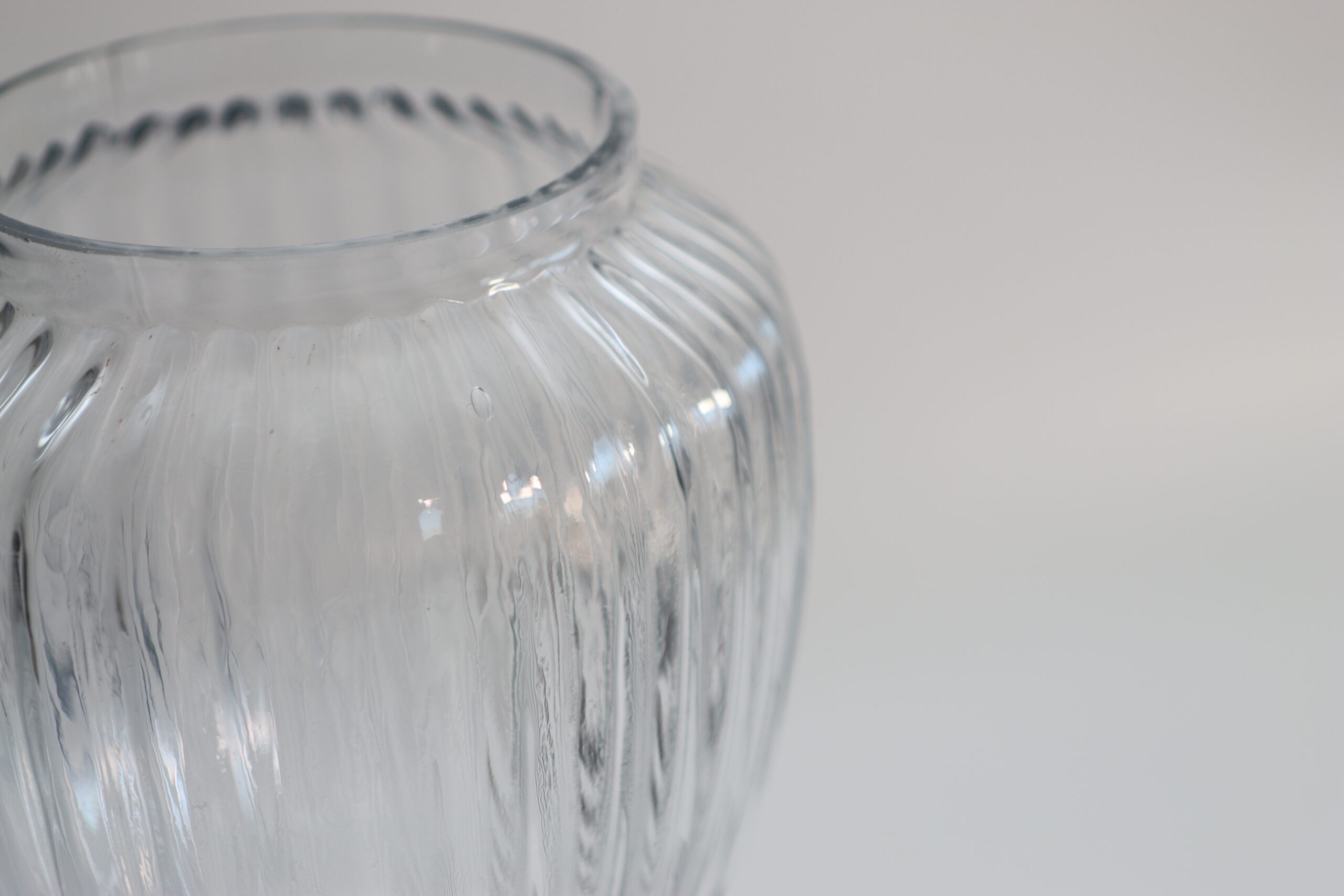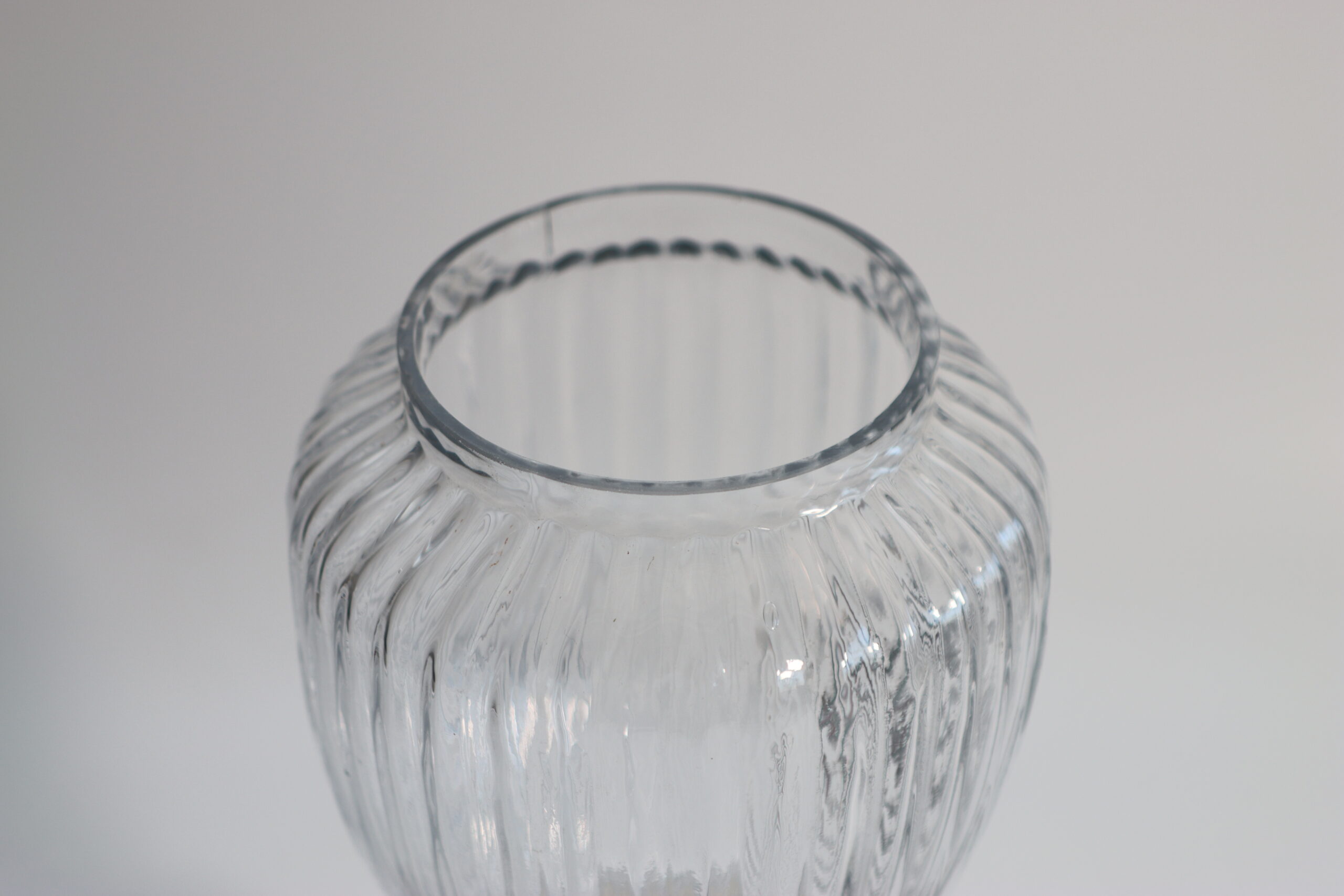 ガラスの透明感が美しい、脚付きタイプのフラワーベース。