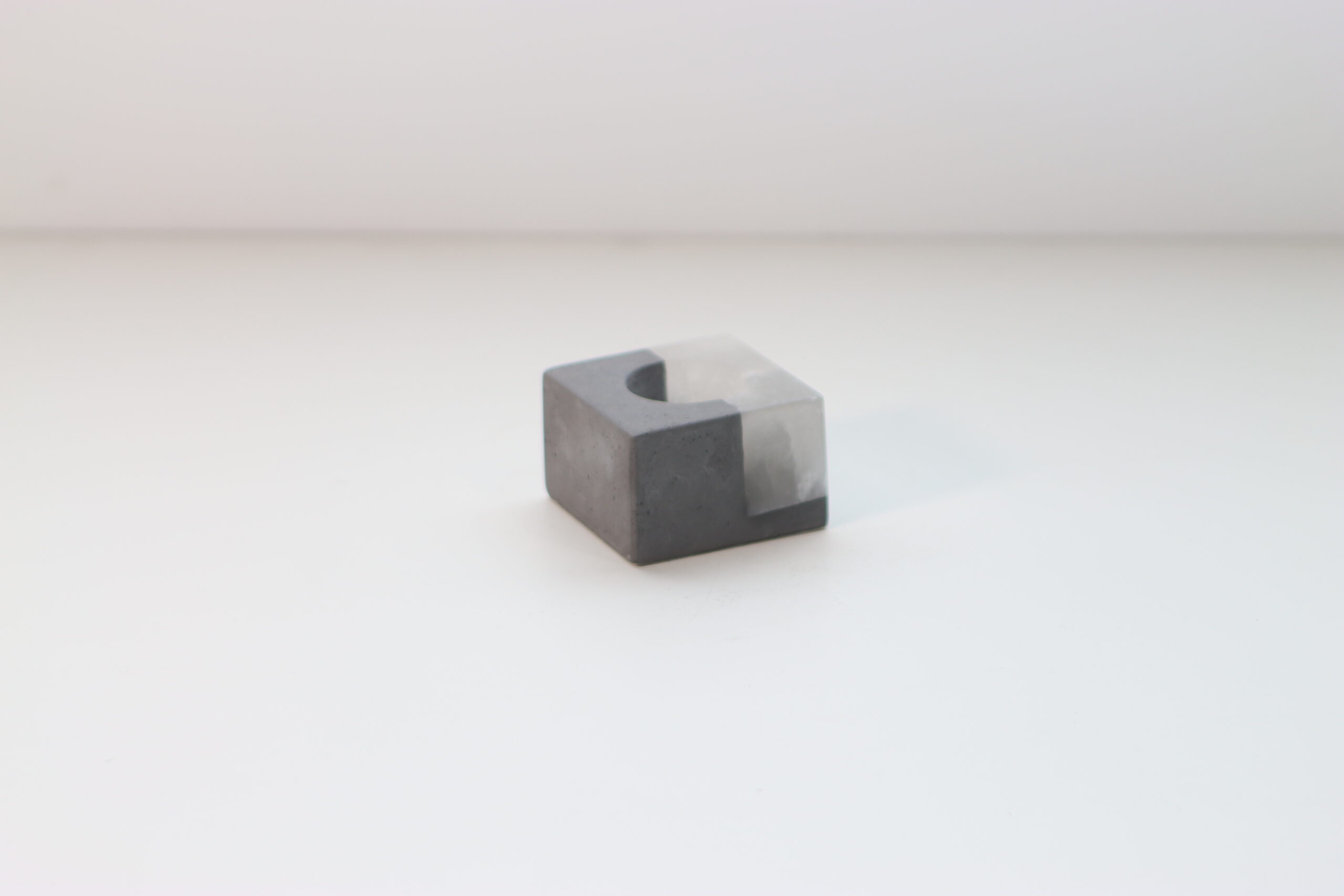 リング状の持ち手とフラットな受け皿が特徴的で、ミニマルでありながら遊び心を感じさせる陶器製ホルダーです。