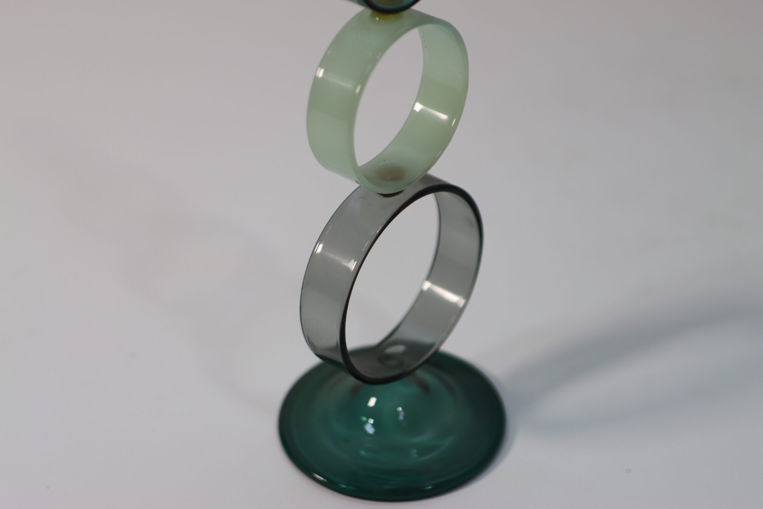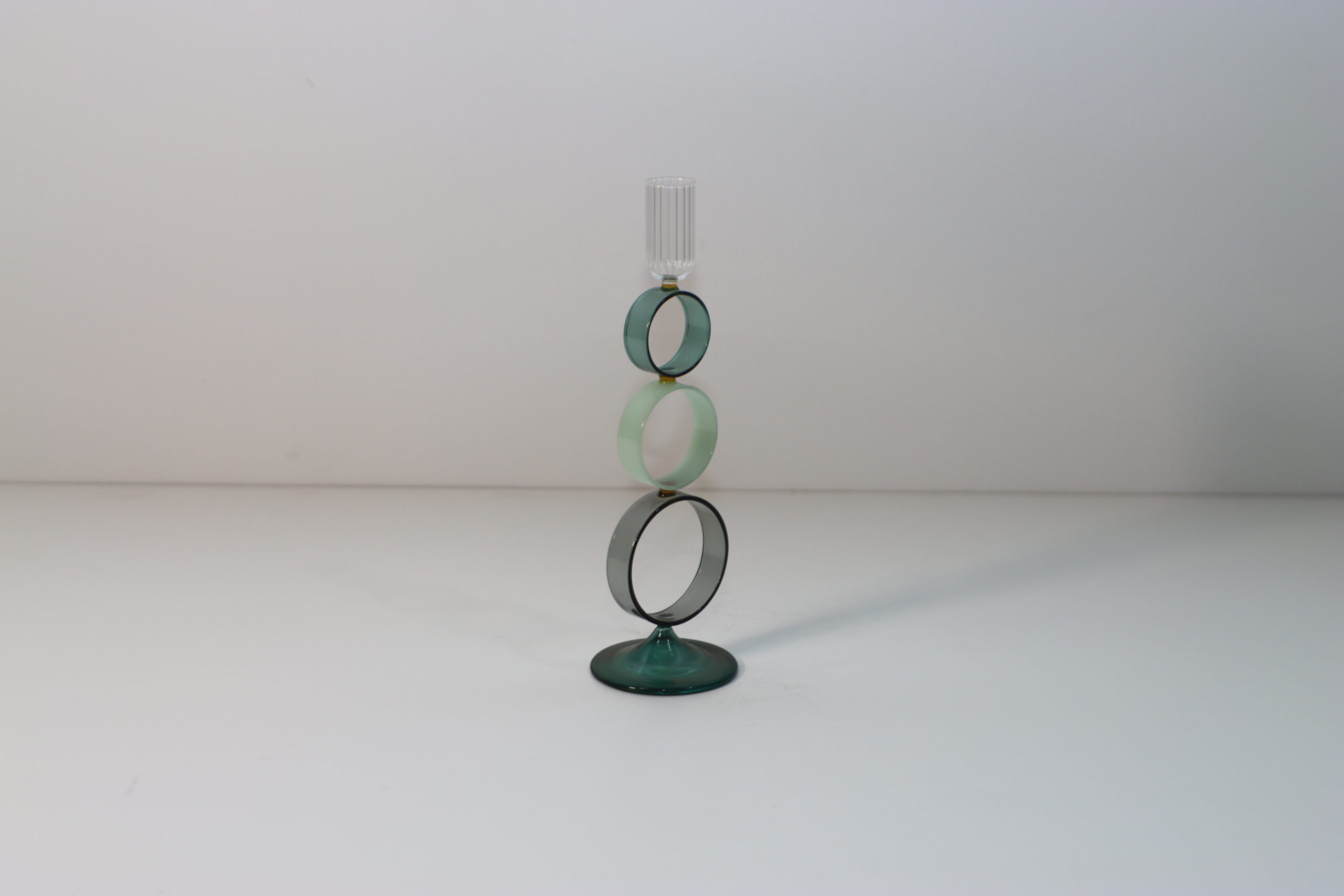 異なるサイズのリングを重ね合わせたような、独創的で建築的な造形が美しいガラス製ホルダーです。