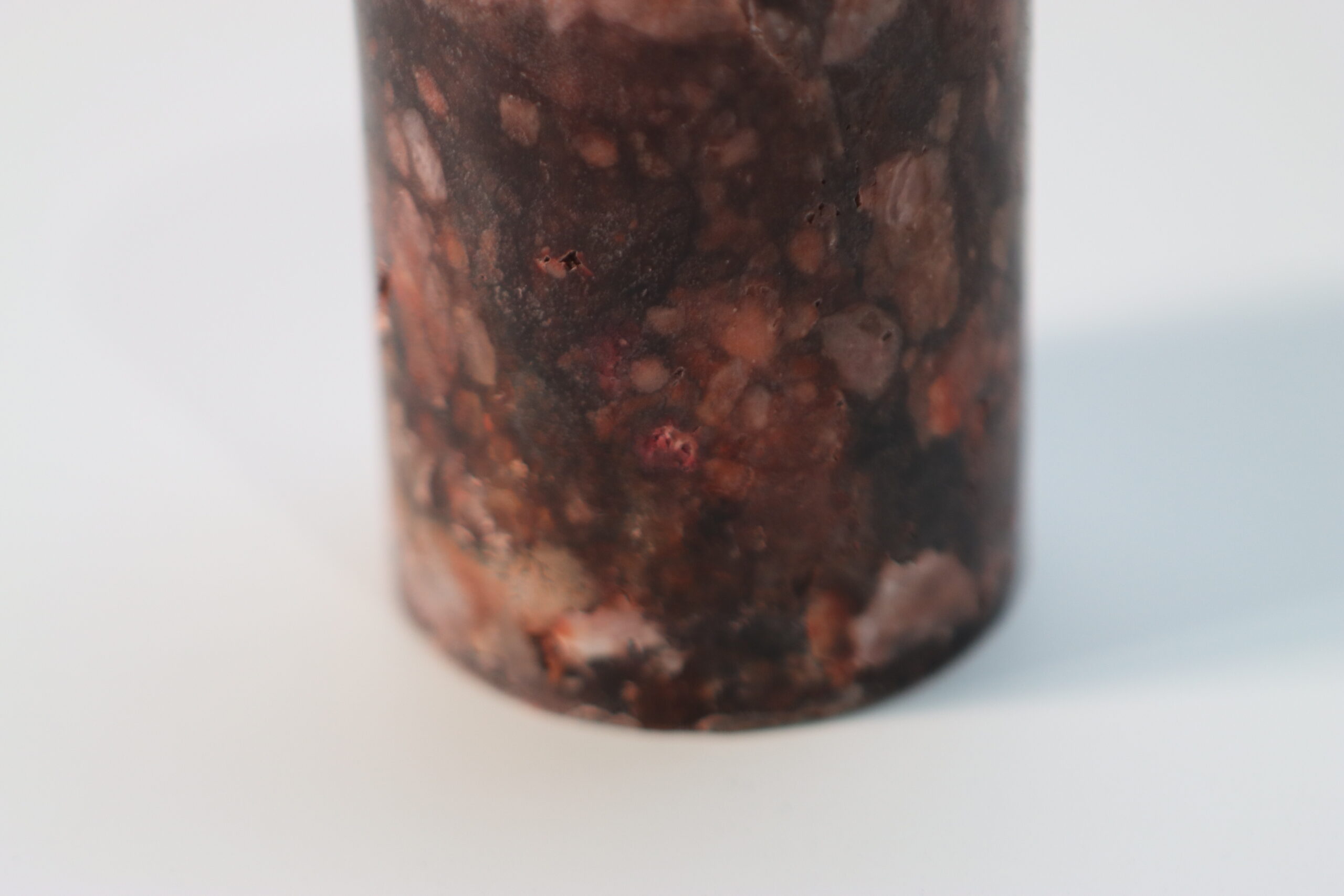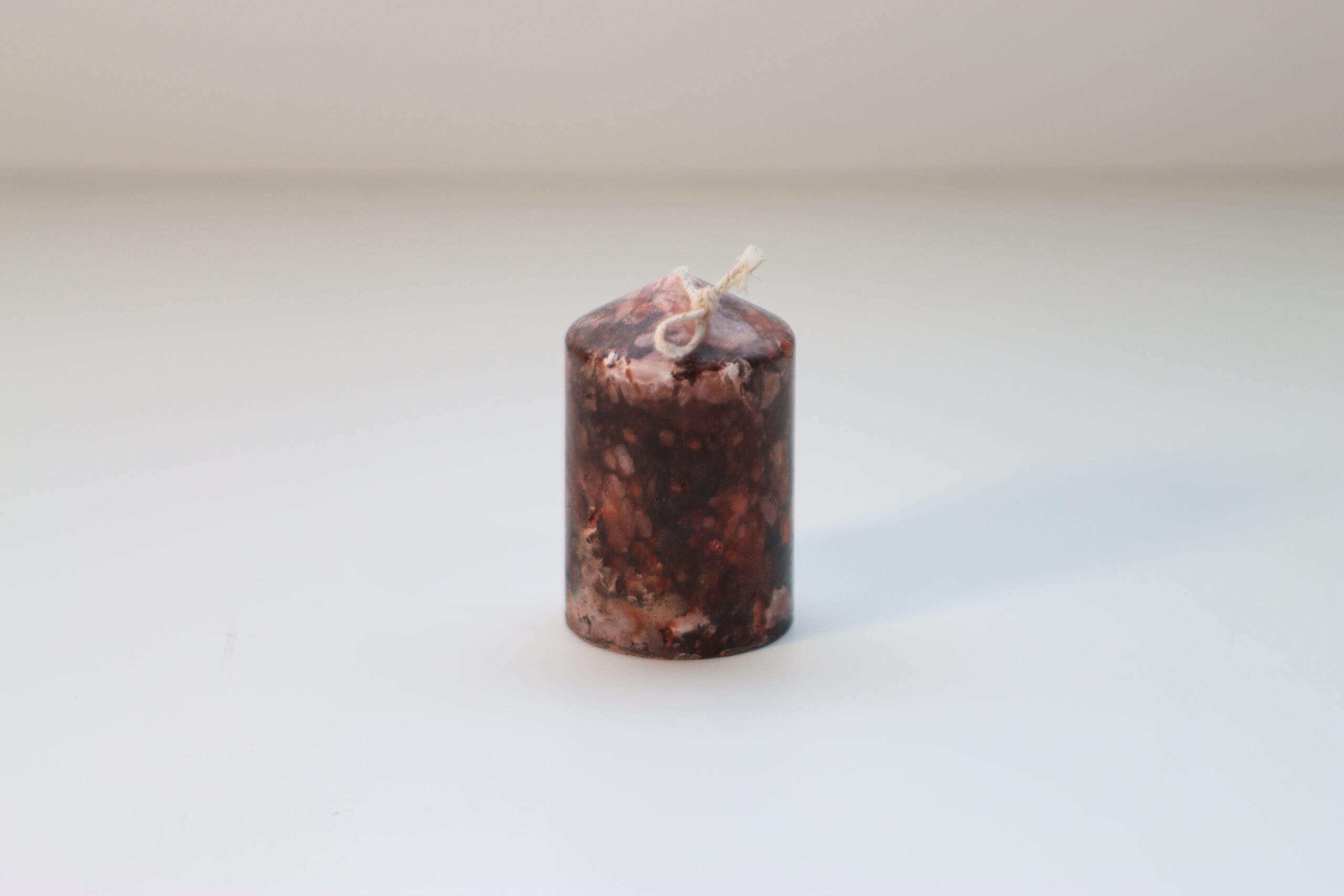 非常に密度の高い模様を持つため、一点ごとに表情が大きく異なります。意図したトーンに合わせるための個体選定が重要です。また、使用時はロウの垂れを防ぐため、必ずキャンドルプレートを併用してください。