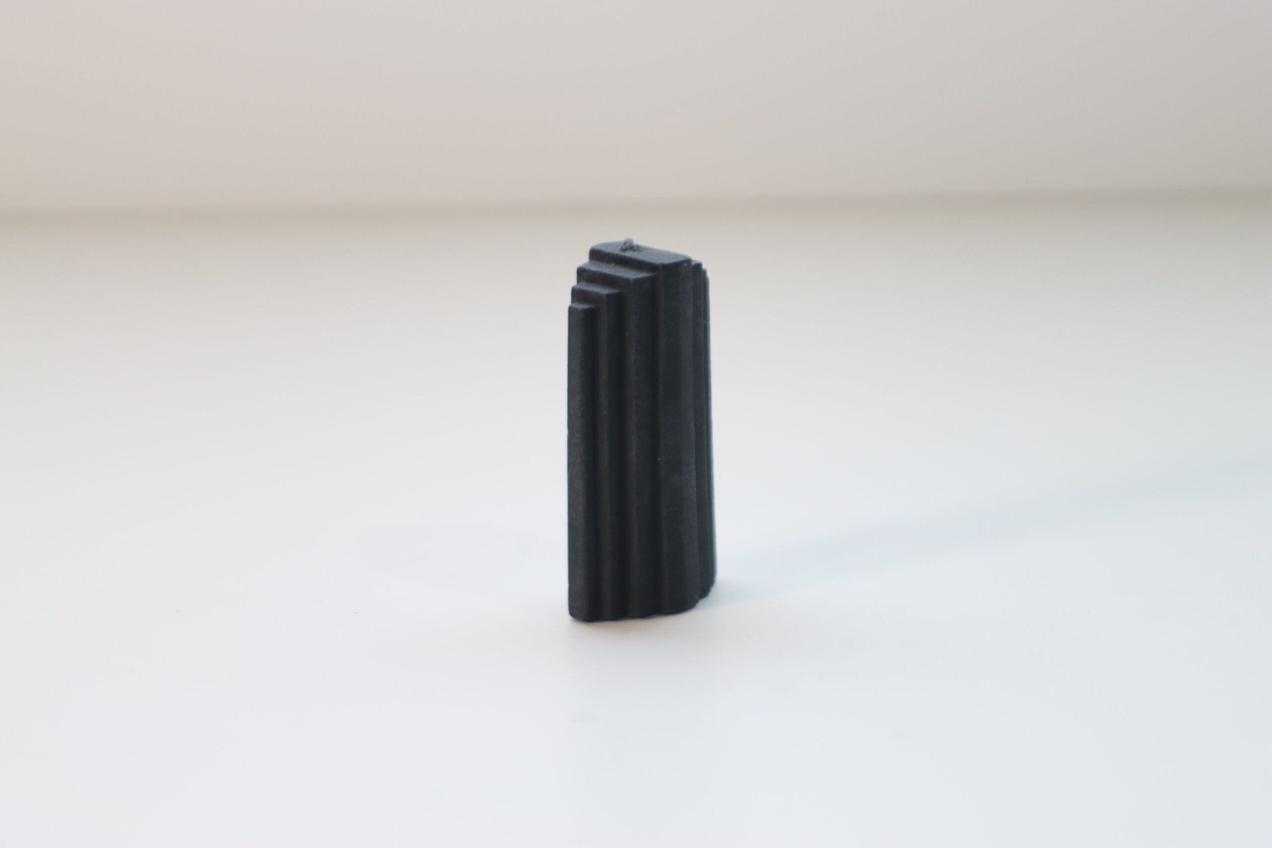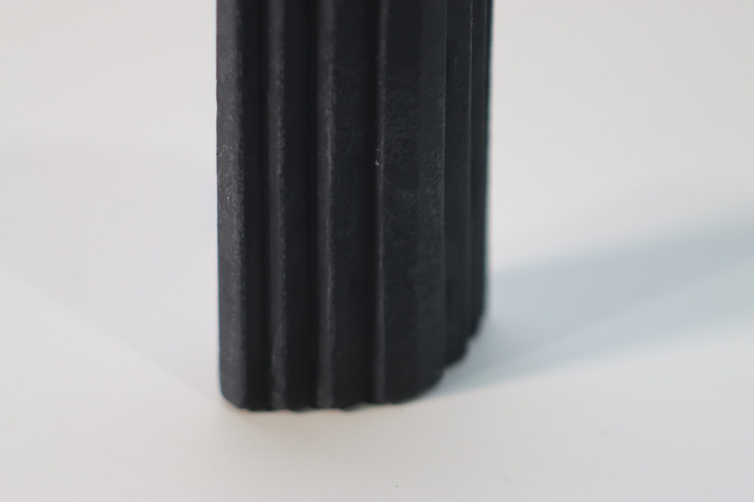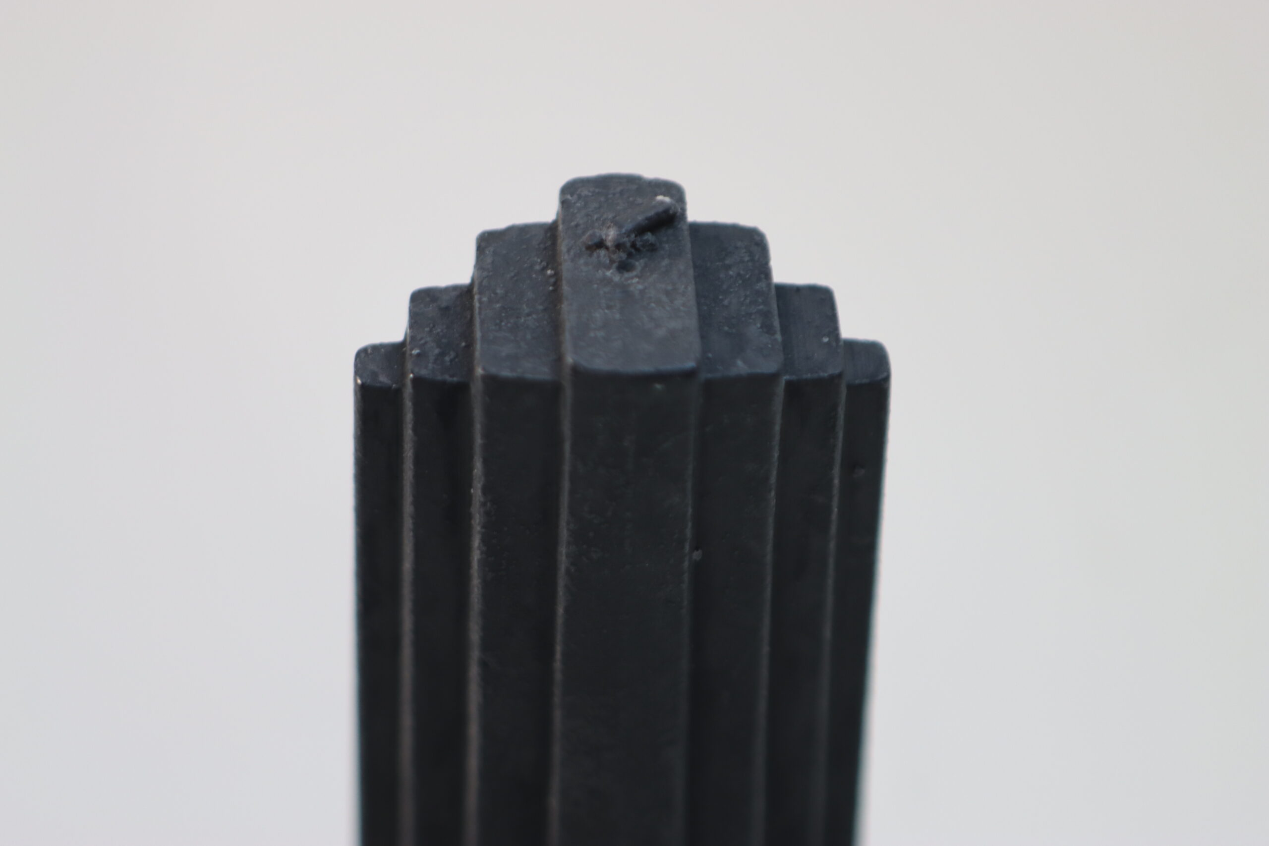 直線的なリブ(溝)がモダンな印象を与える、スクエアベースのブラックキャンドルです。凛とした佇まいが、空間をクールに引き締めます。