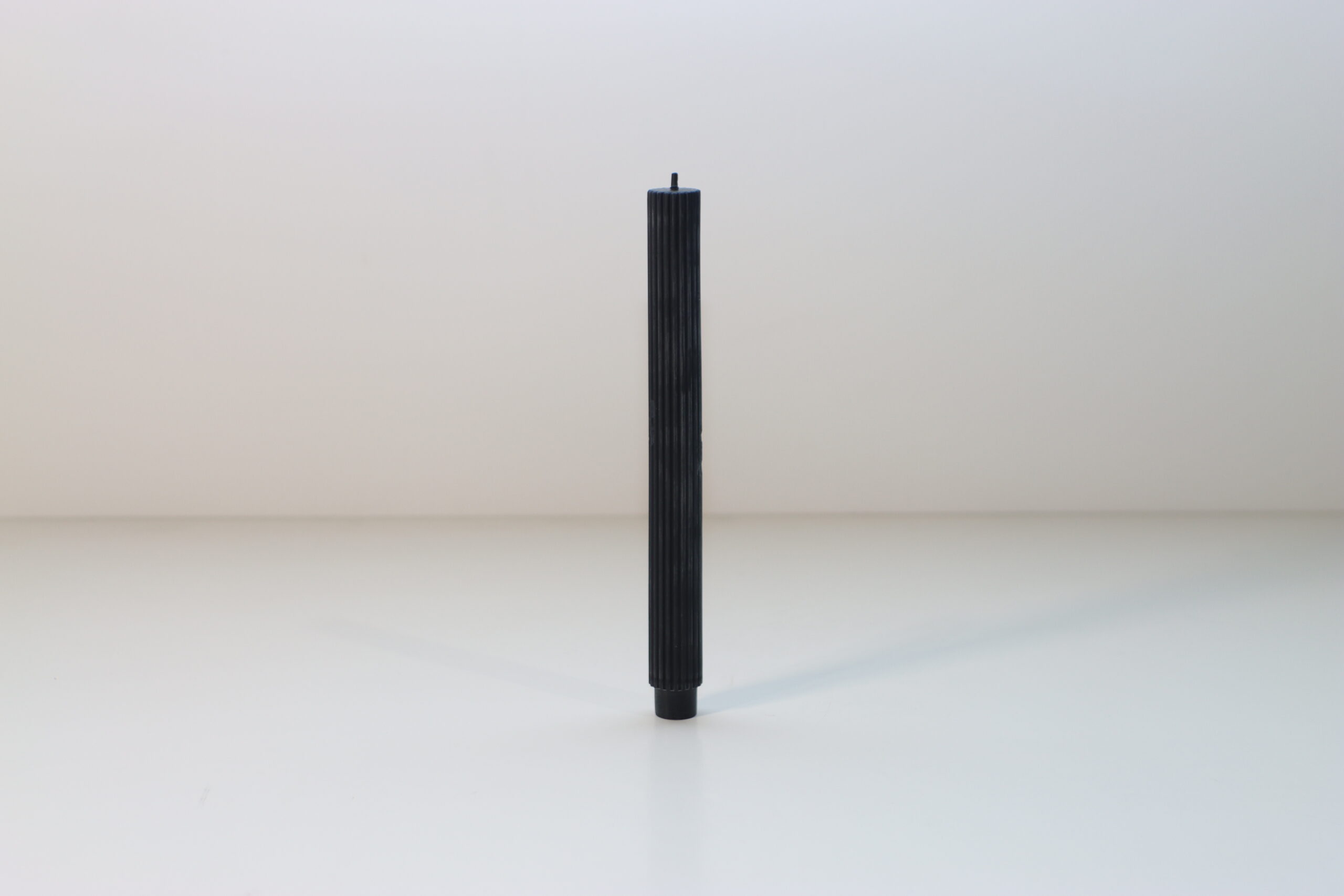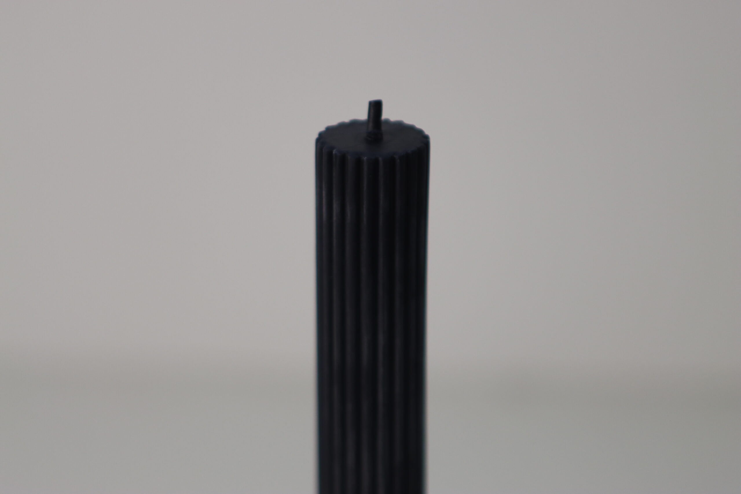 縦に刻まれた美しいリブ(溝)が、光と影のコントラストを強調する、スリムでモダンなブラックキャンドルです。