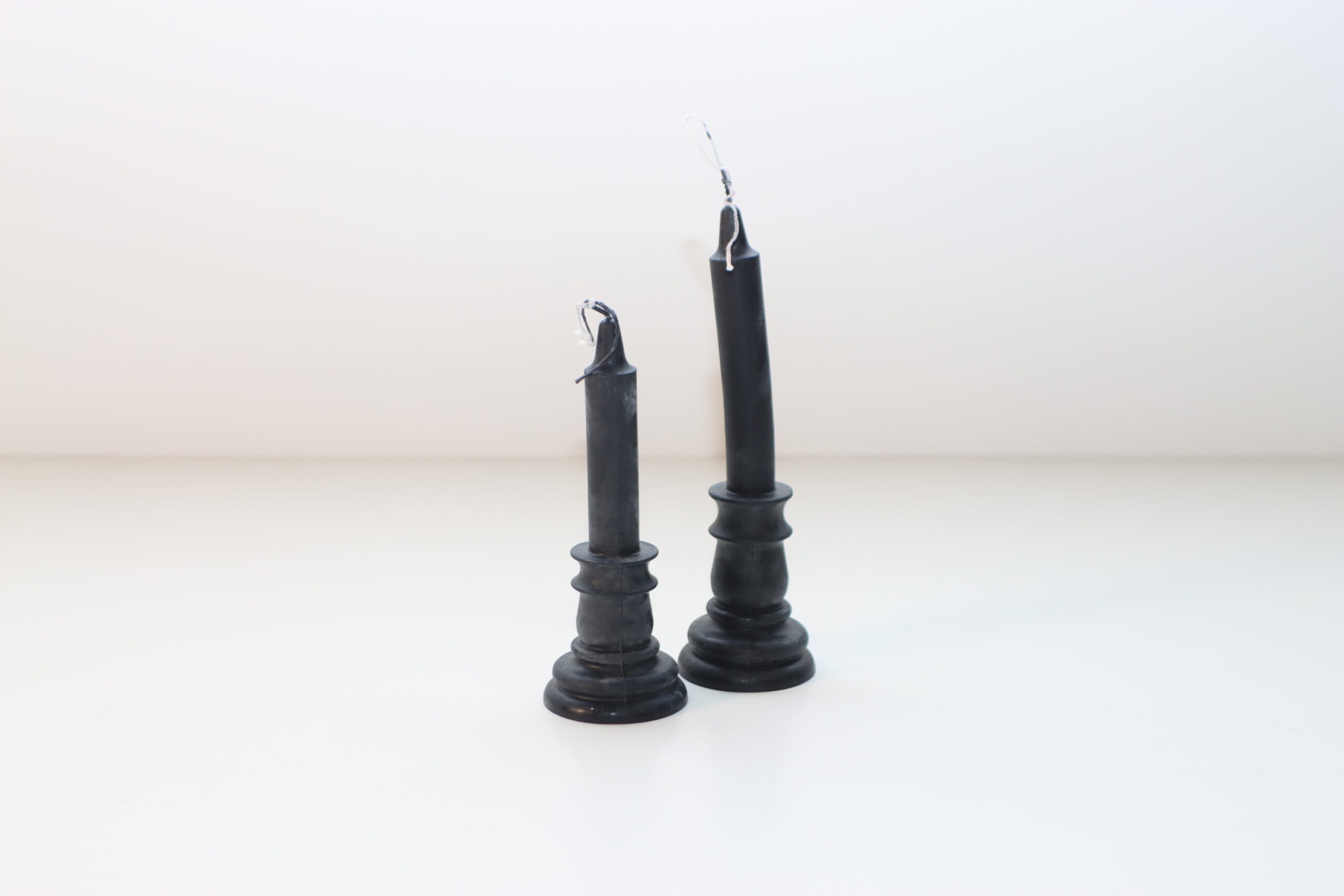 チェスの駒をモチーフにした、クラシカルかつミニマルなフォルムが目を引くブラックキャンドルです。