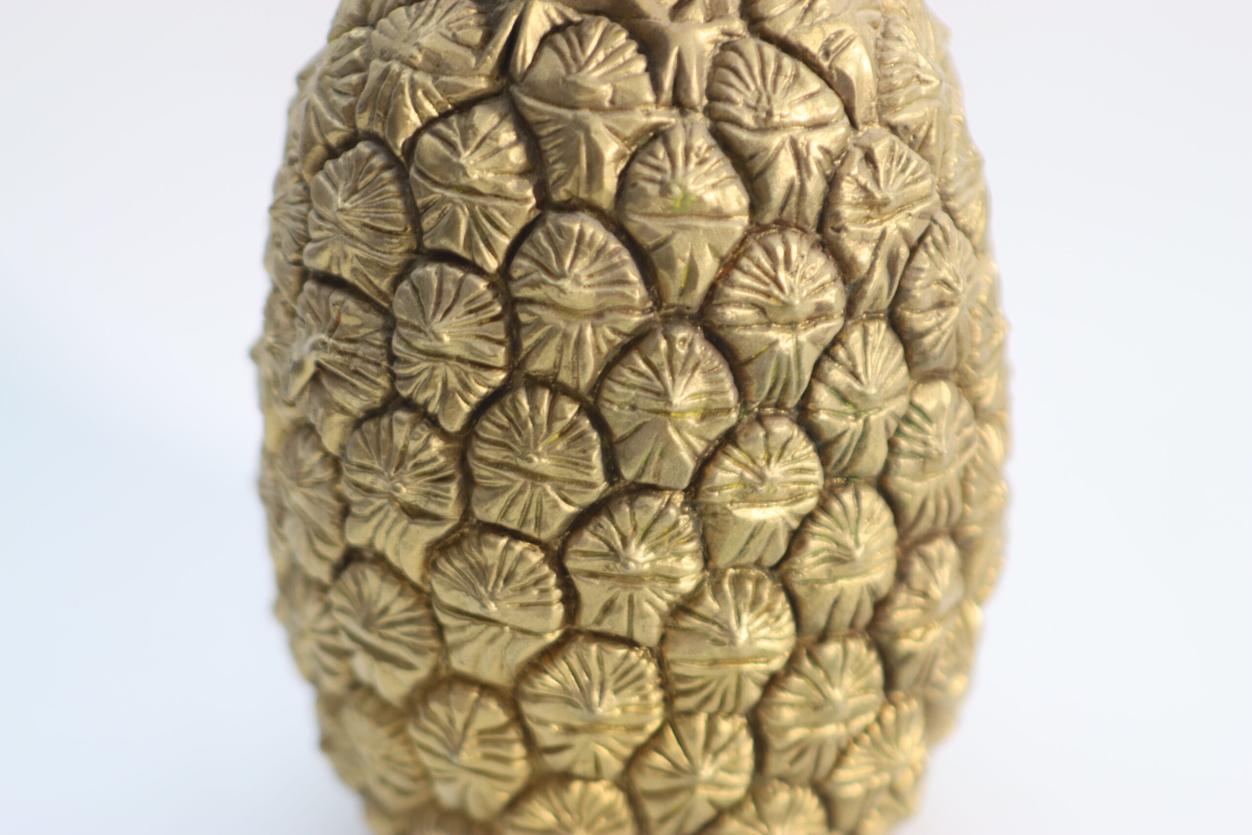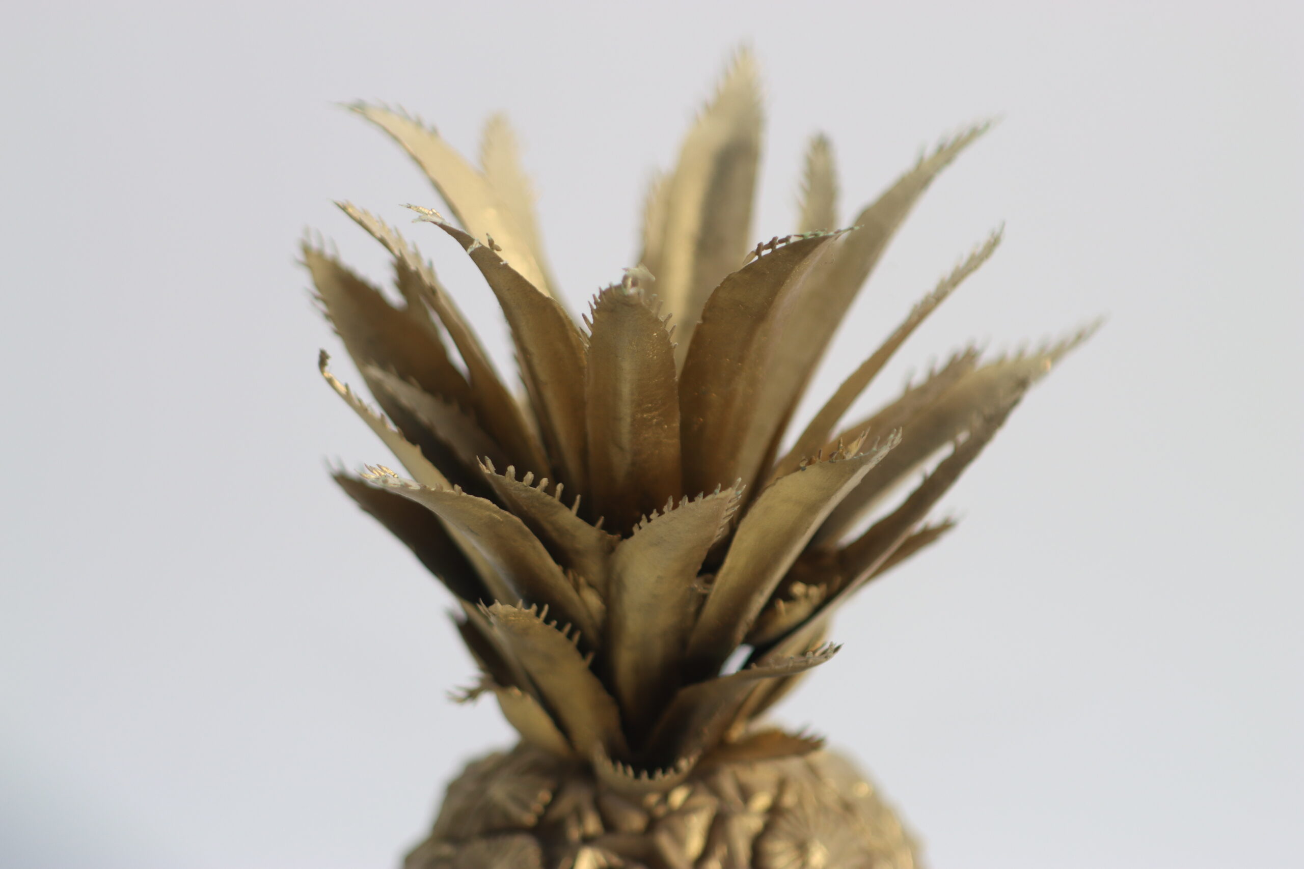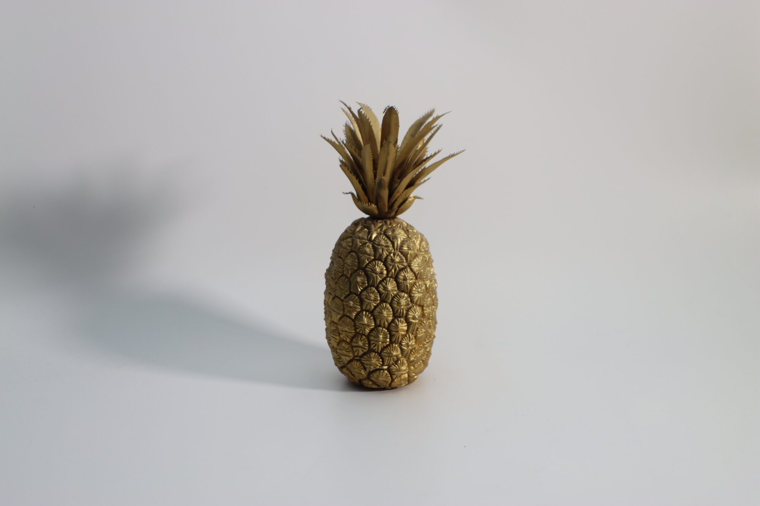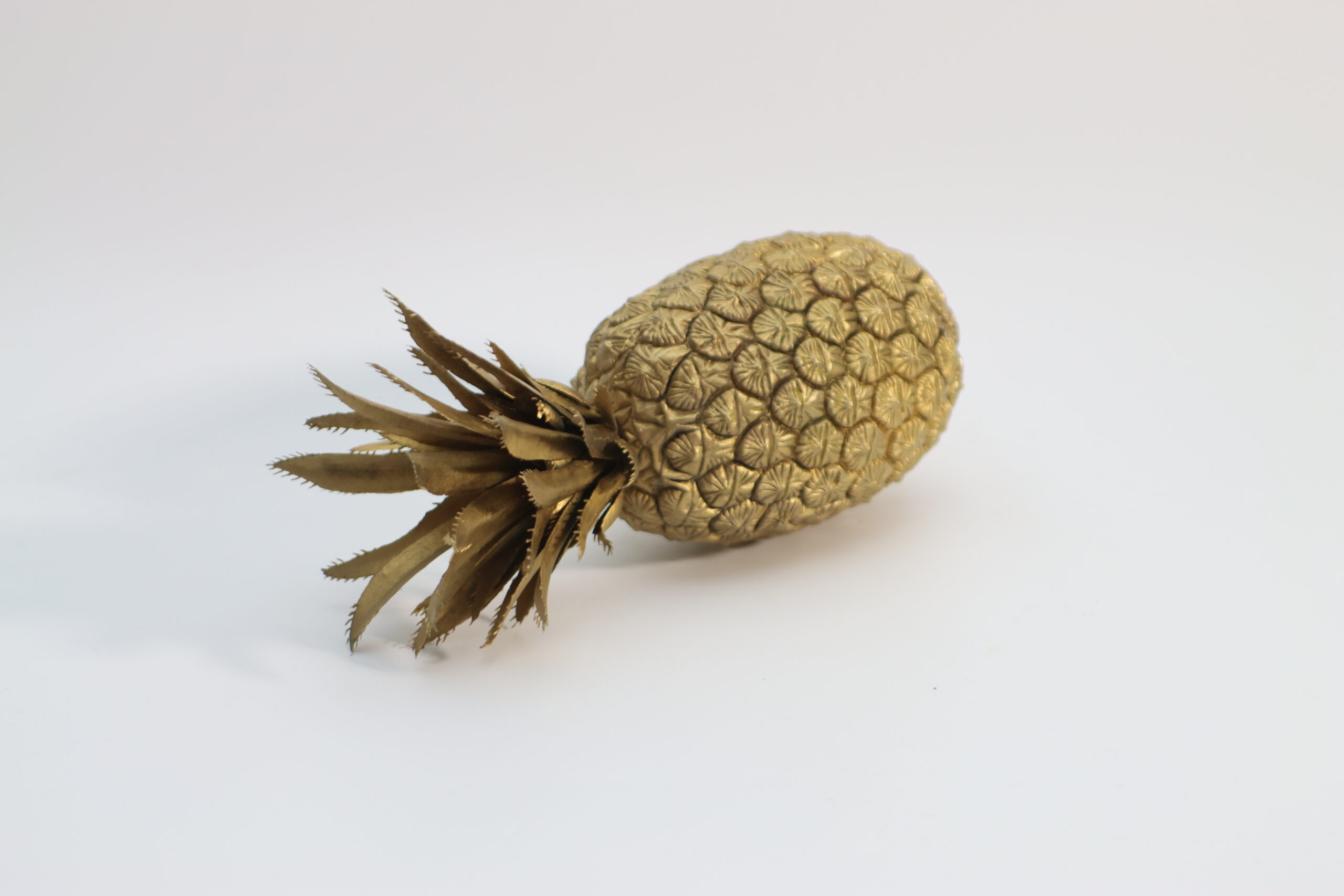 パイナップルモチーフのオブジェにゴールド塗装を施した、存在感のあるインテリアアイテム。