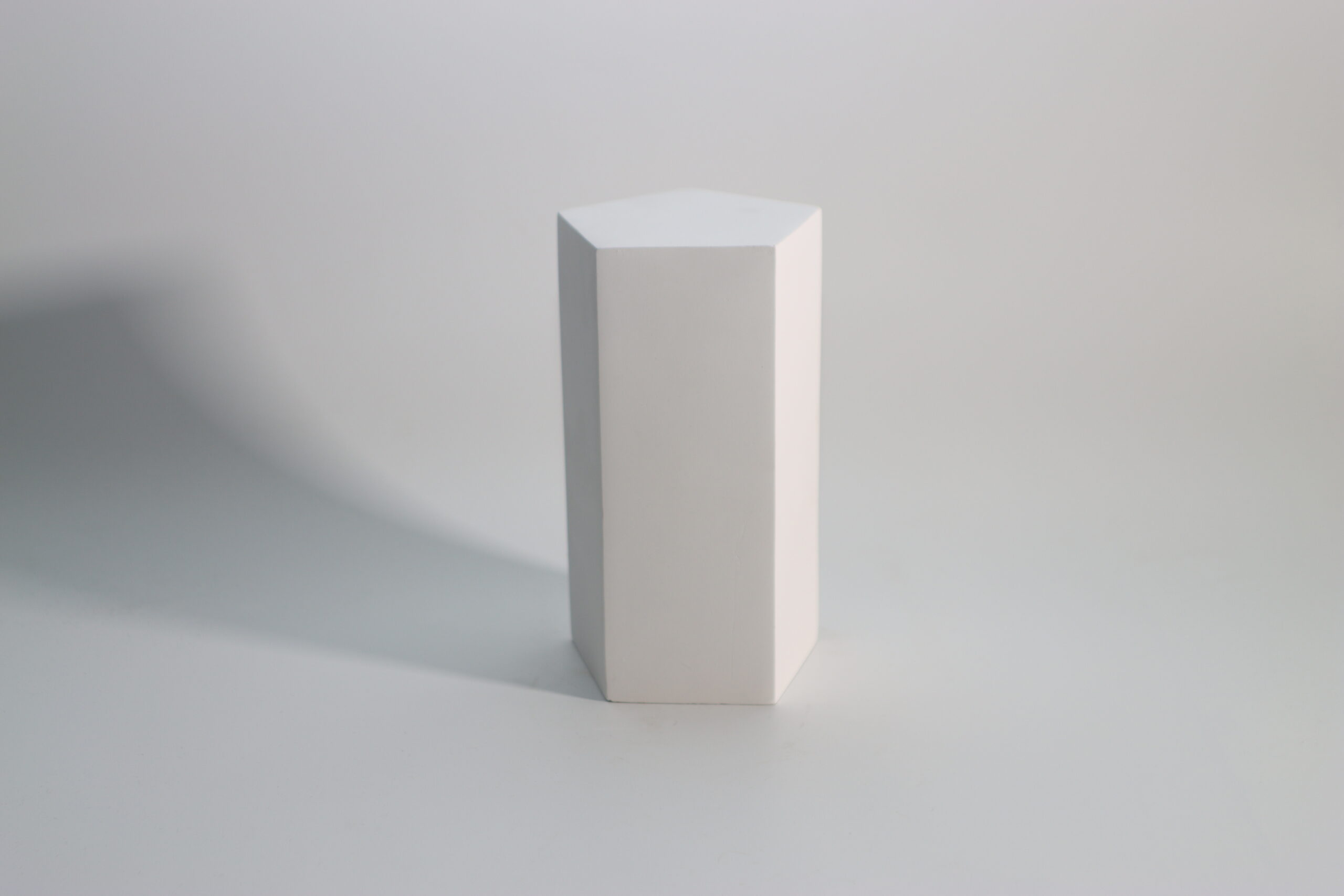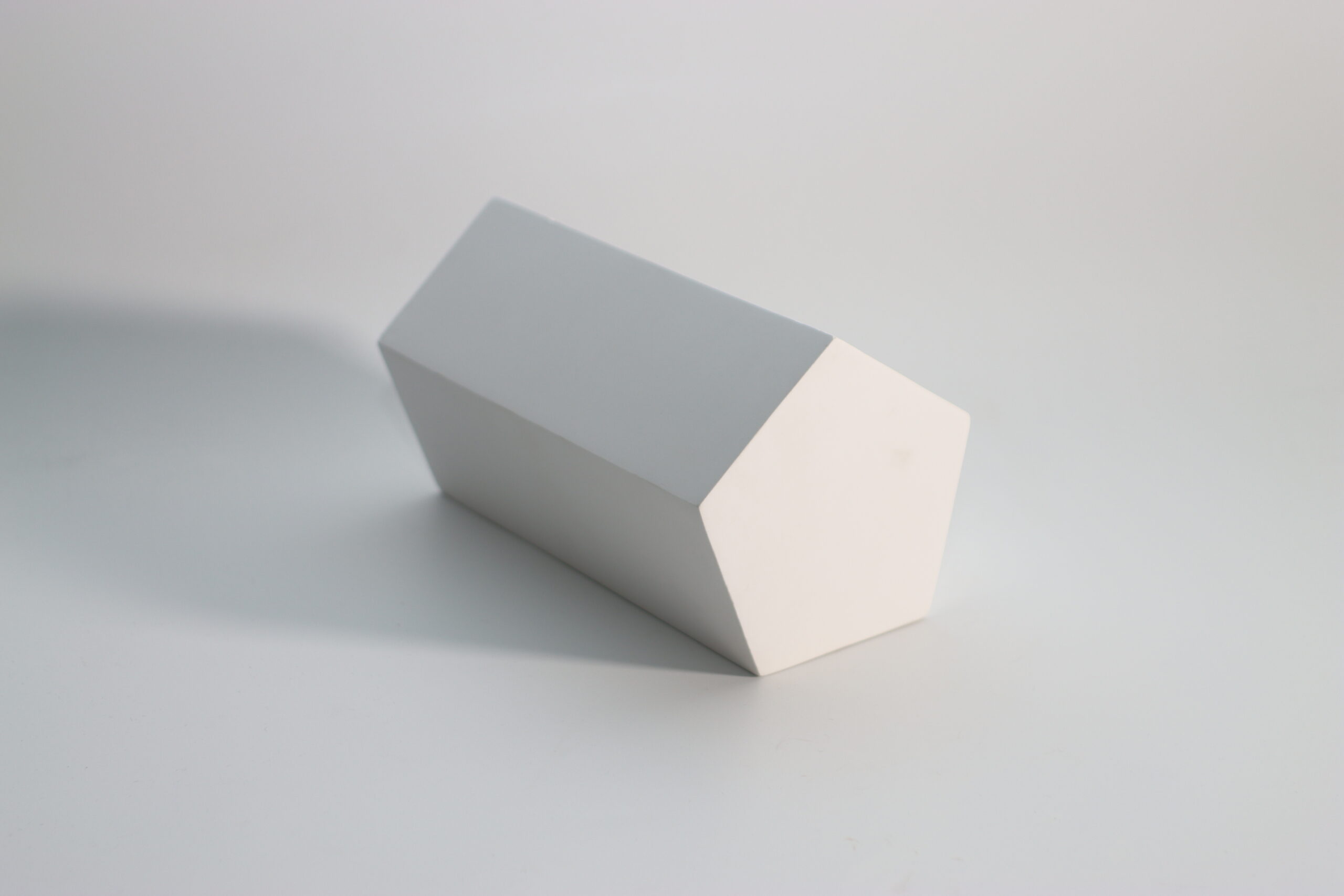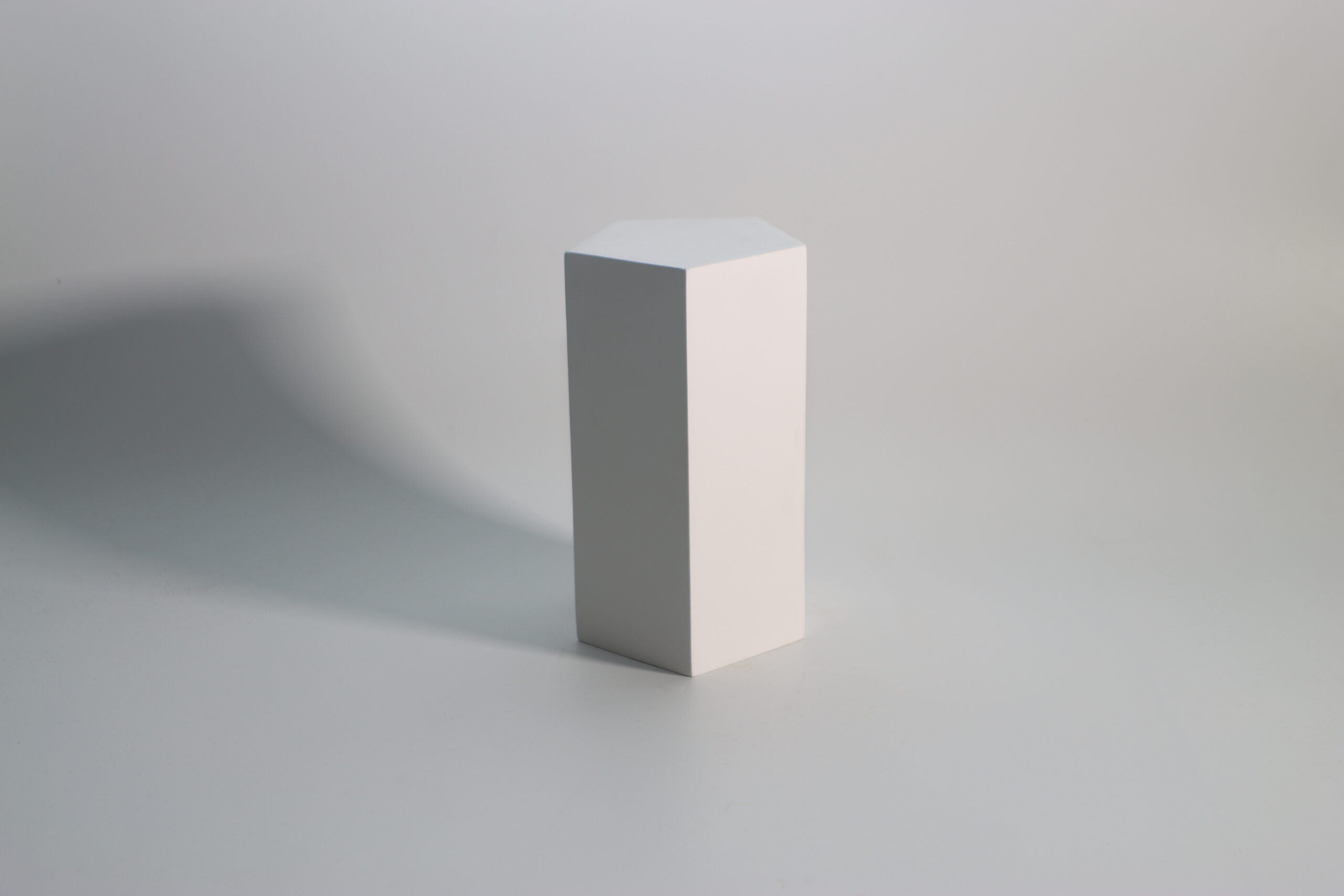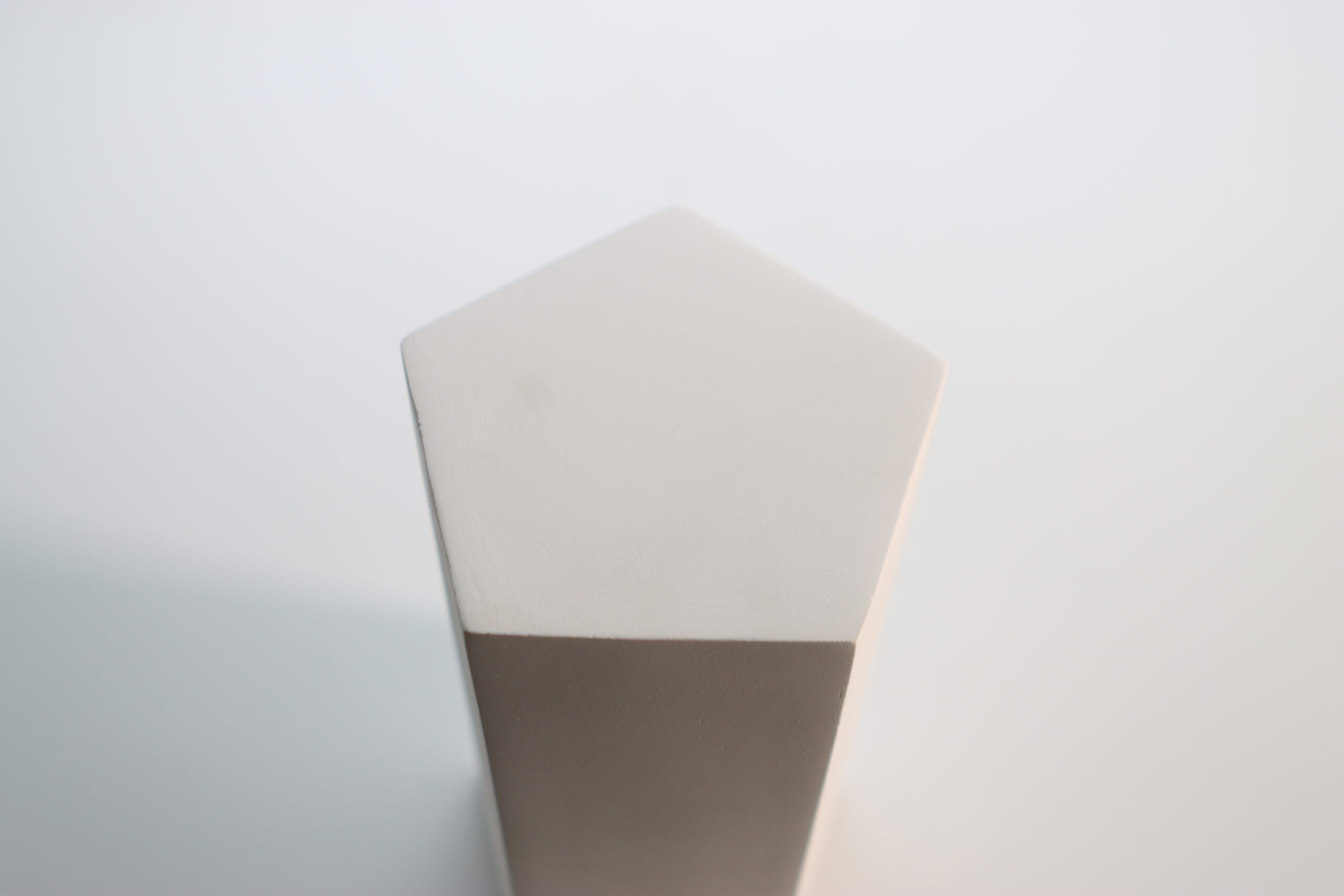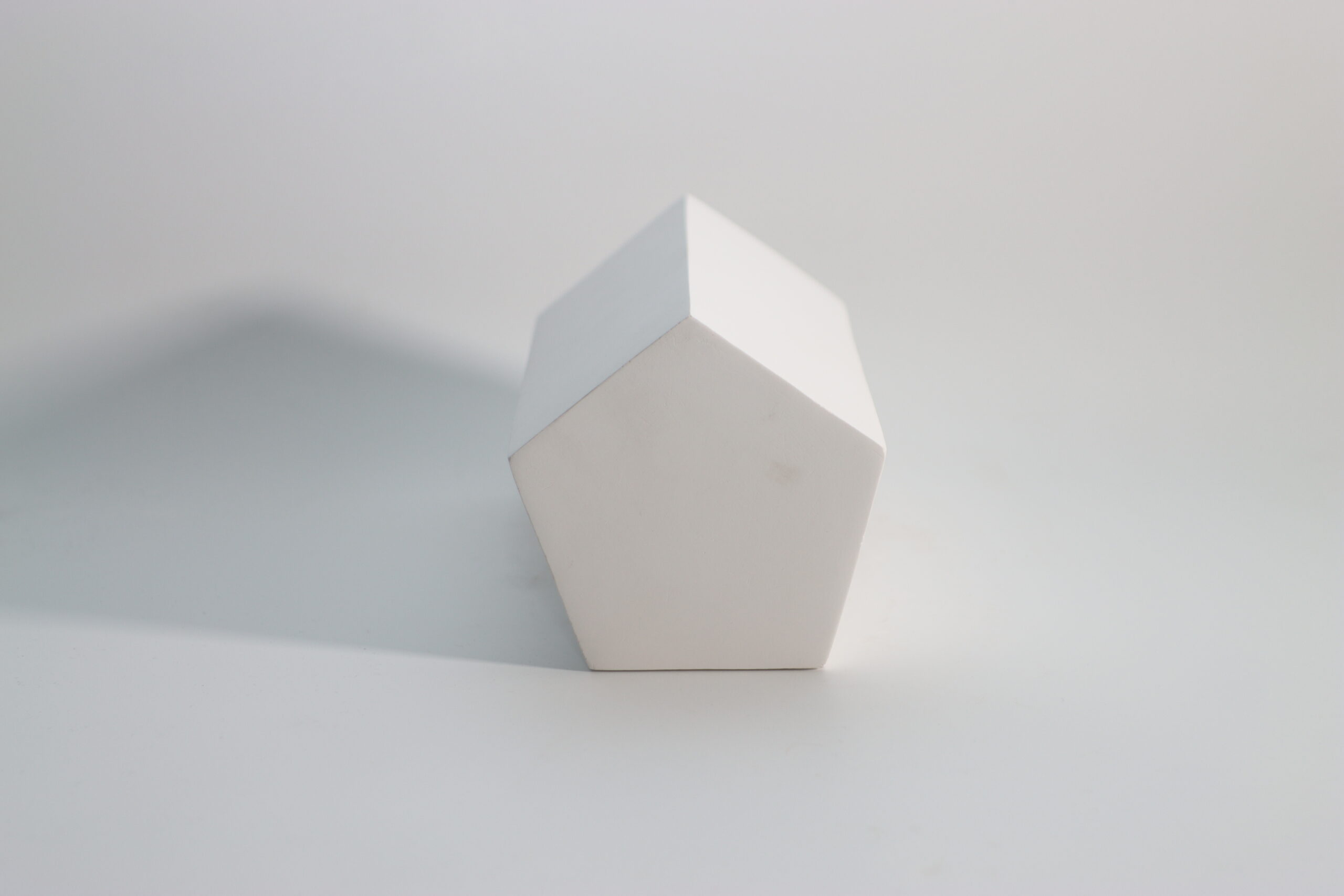 石膏素材を使用した、五角形フォルムのインテリアオブジェ。