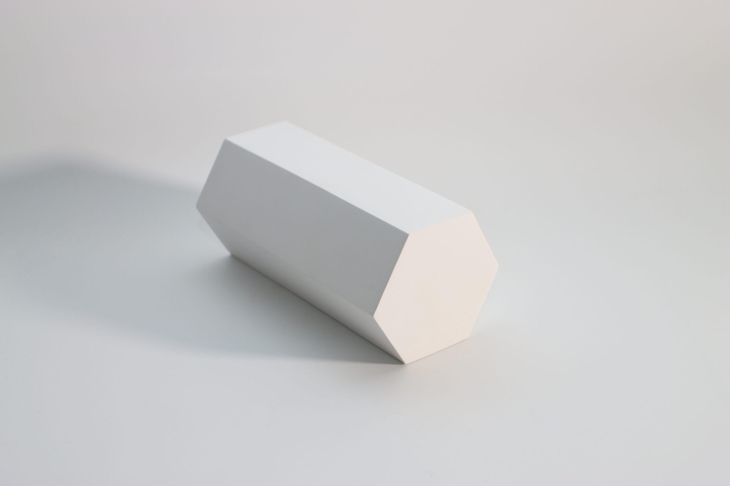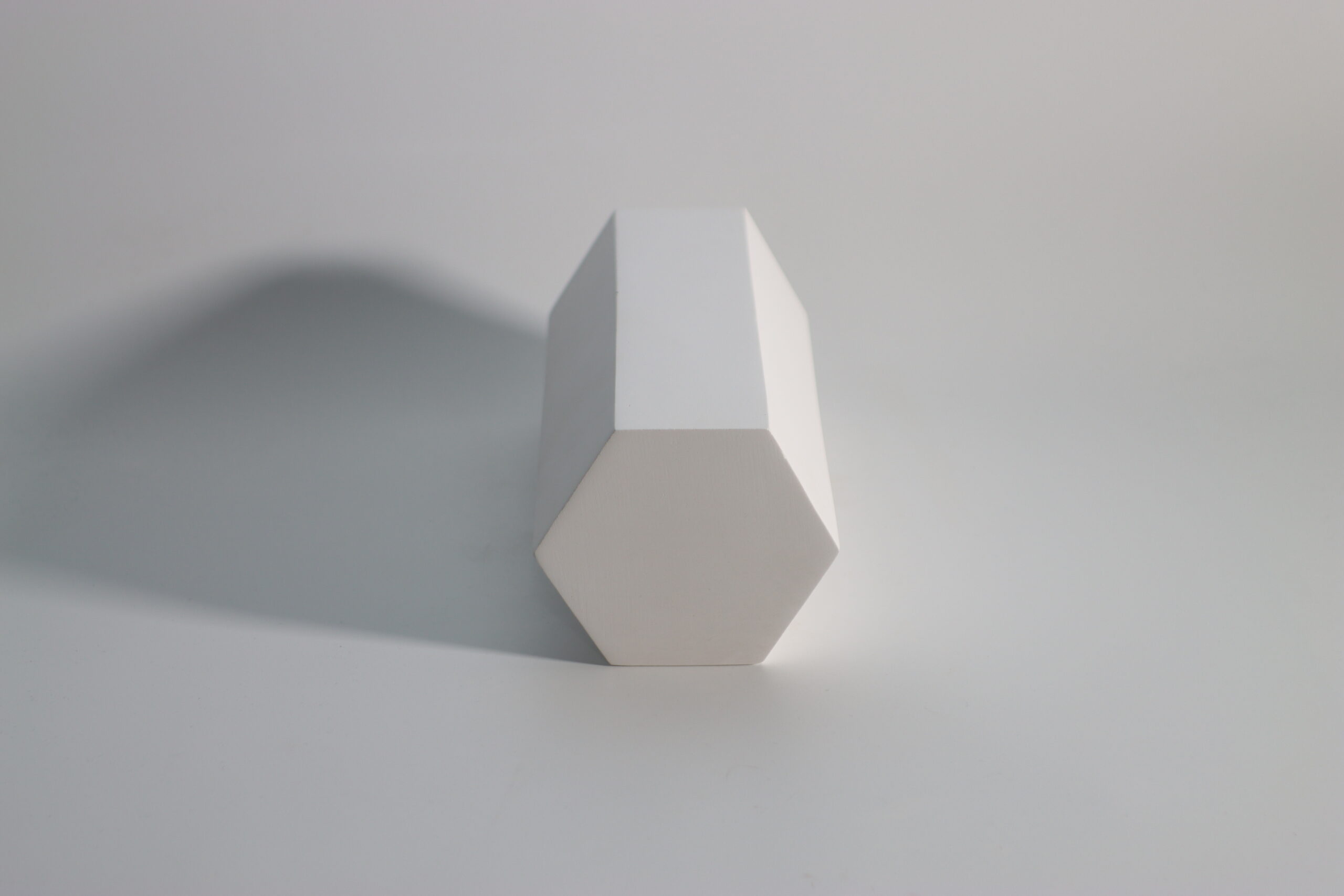石膏素材を使用した、六角形フォルムのインテリアオブジェ。