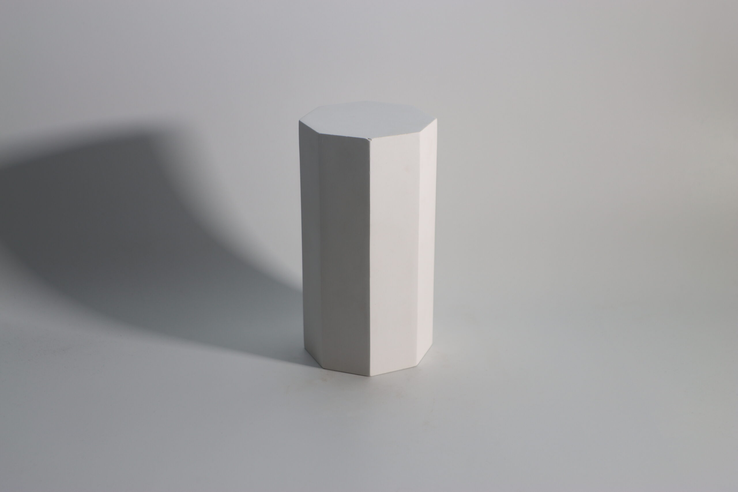 石膏素材を使用した、八角形フォルムのインテリアオブジェ。