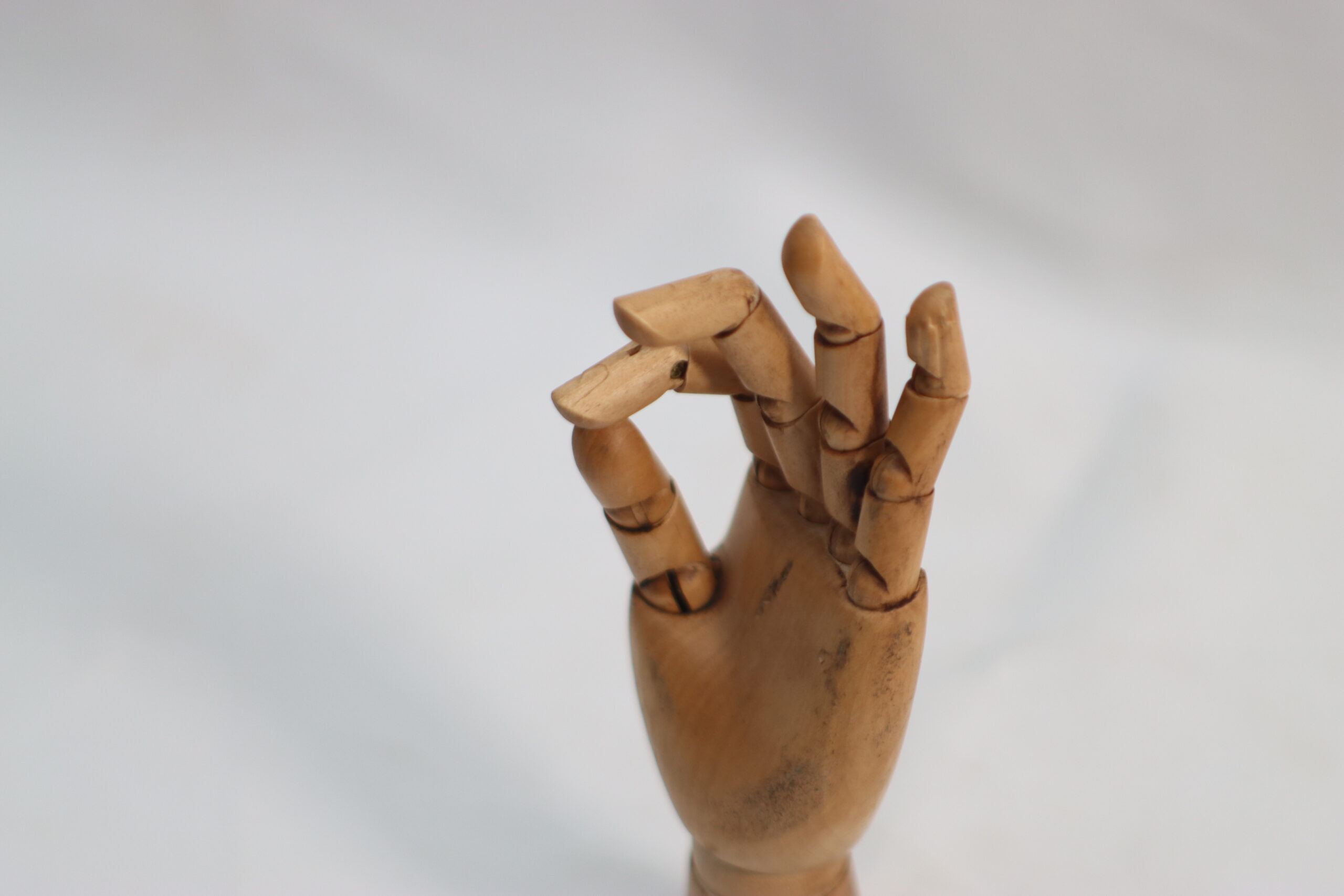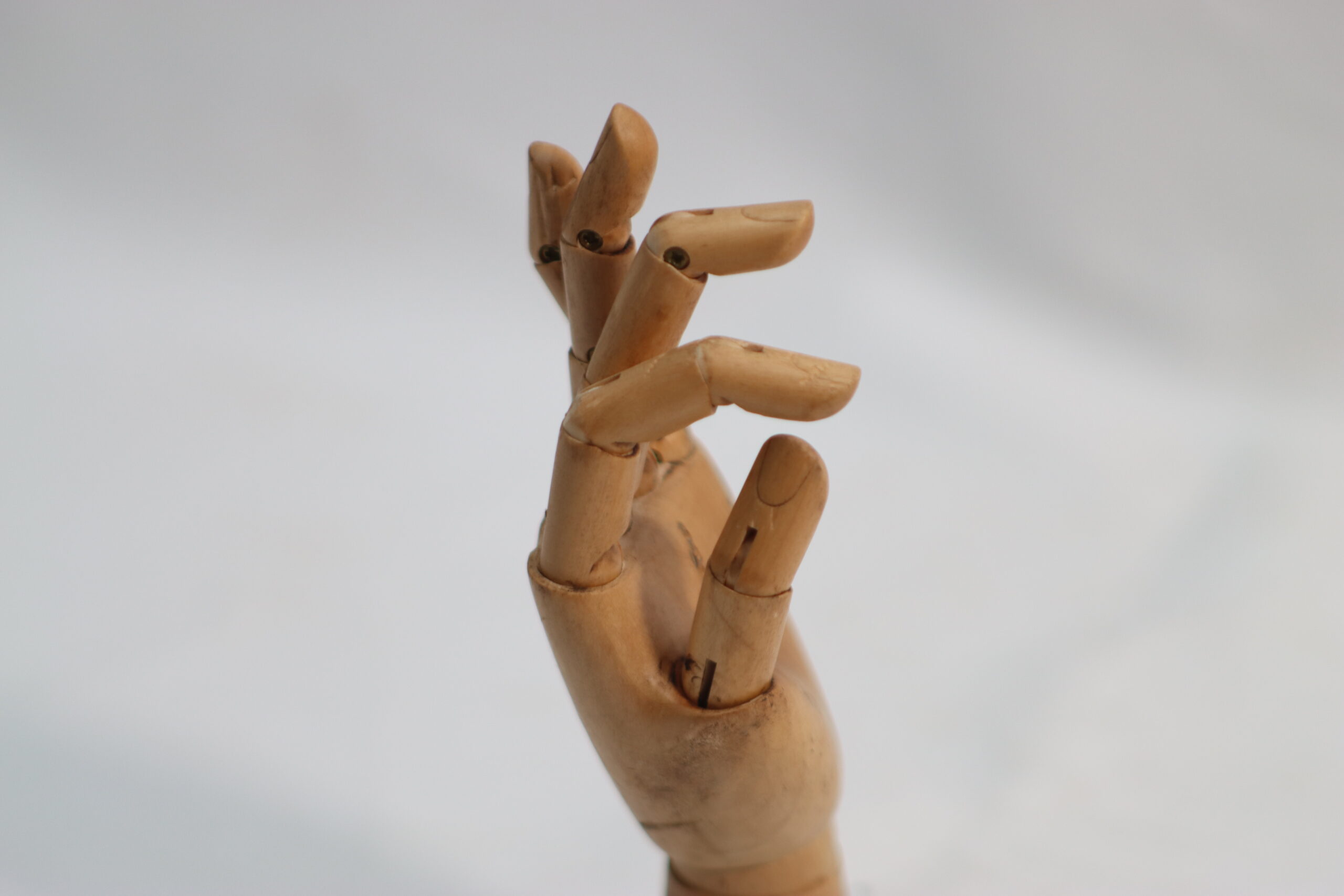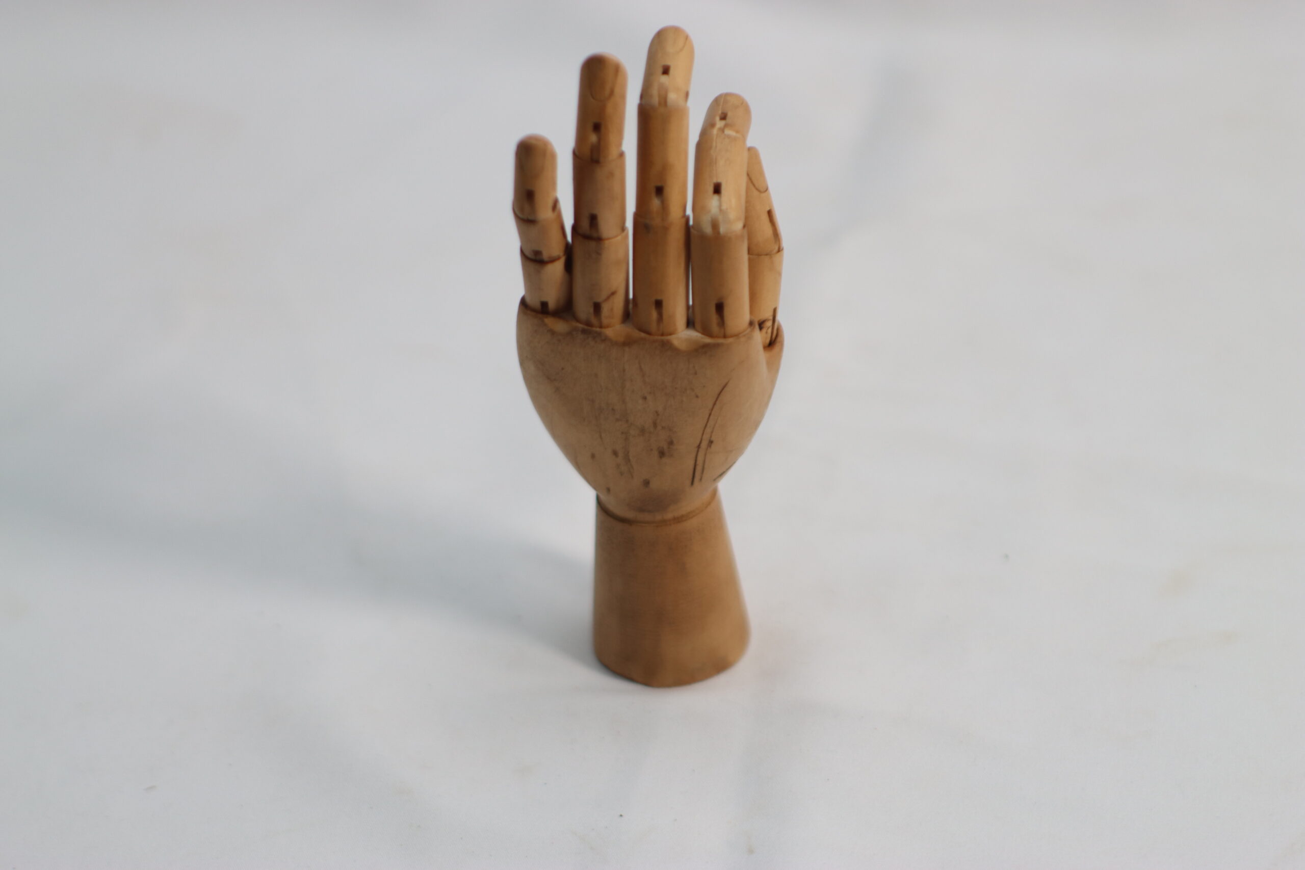 指の背や関節の構造が美しく際立つ、背面ポーズの木製ハンドマネキンです。