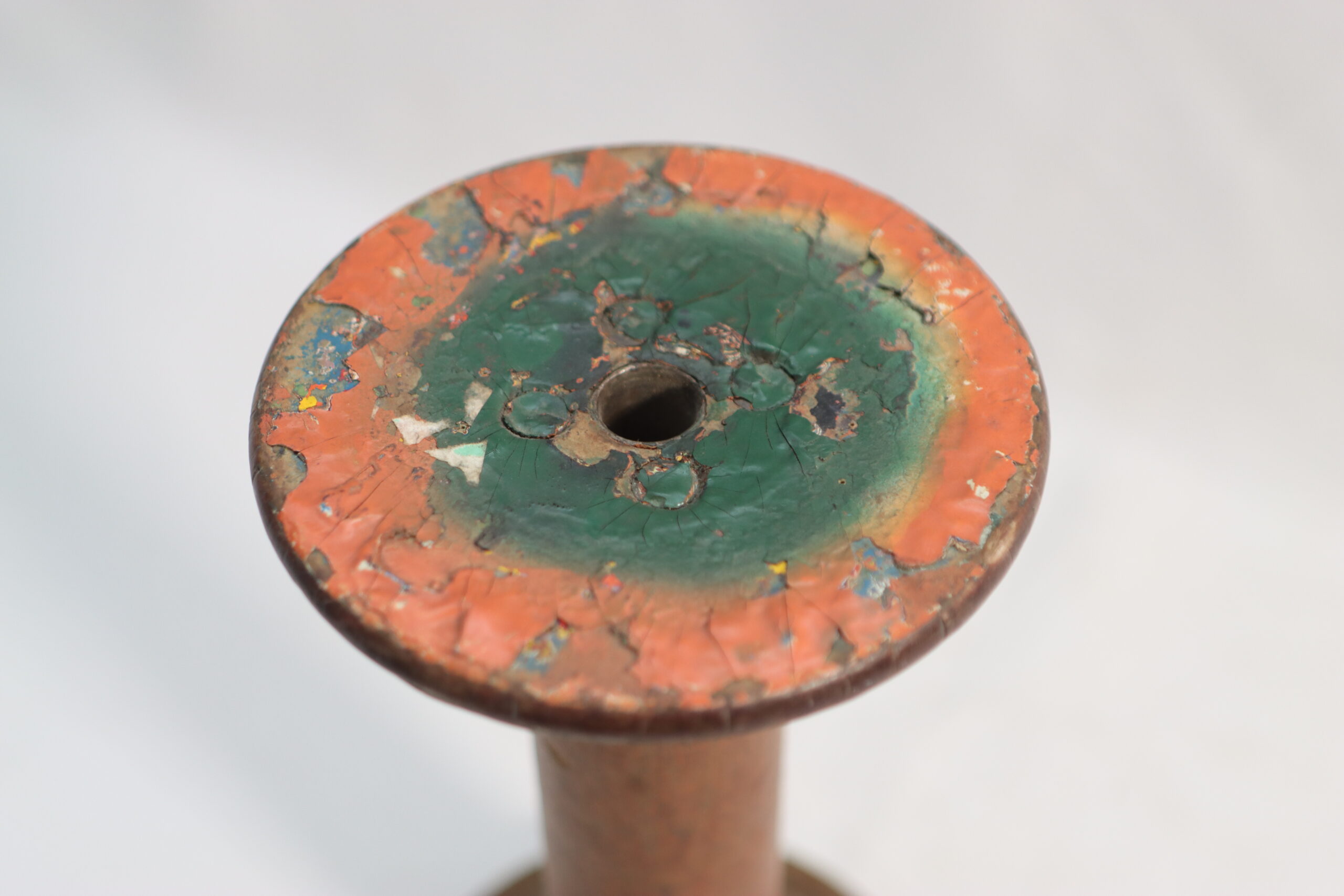 *ヴィンテージ・ウッドスプール(レッド&グリーン)**は、天面に重なり合った赤と緑の塗装剥げが唯一無二の表情を見せ、画面に「職人の長年の功績」や「歴史の深み」をダイレクトに伝えます。