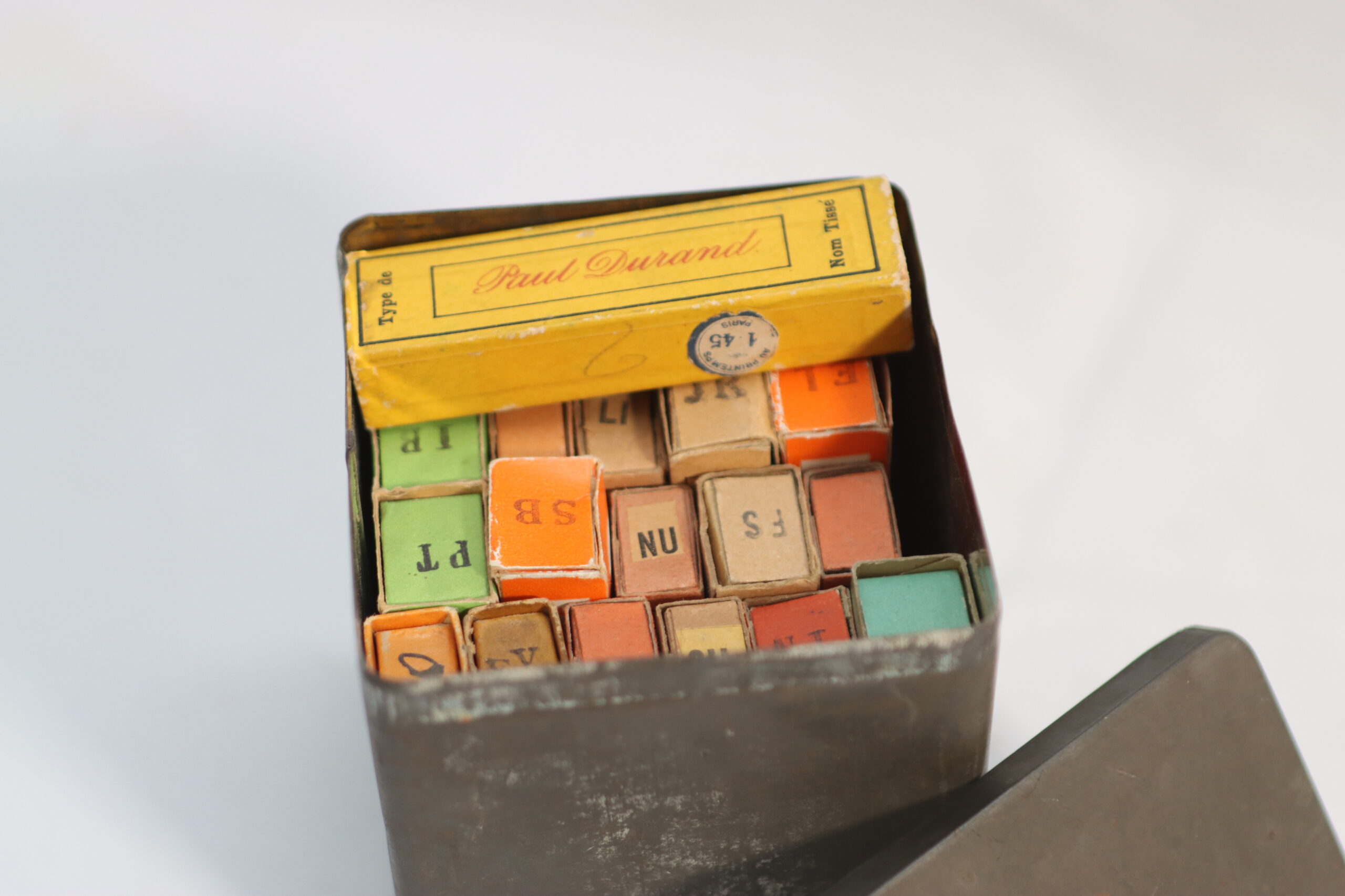 ヴィンテージ・イニシャルテープ&メタル缶セットは、使い込まれた風合いのメタル缶に、色とりどりのタイポグラフィが施された個別パッケージが収められており、視覚的な「整列の美」と「アーカイブ感」を演出します。