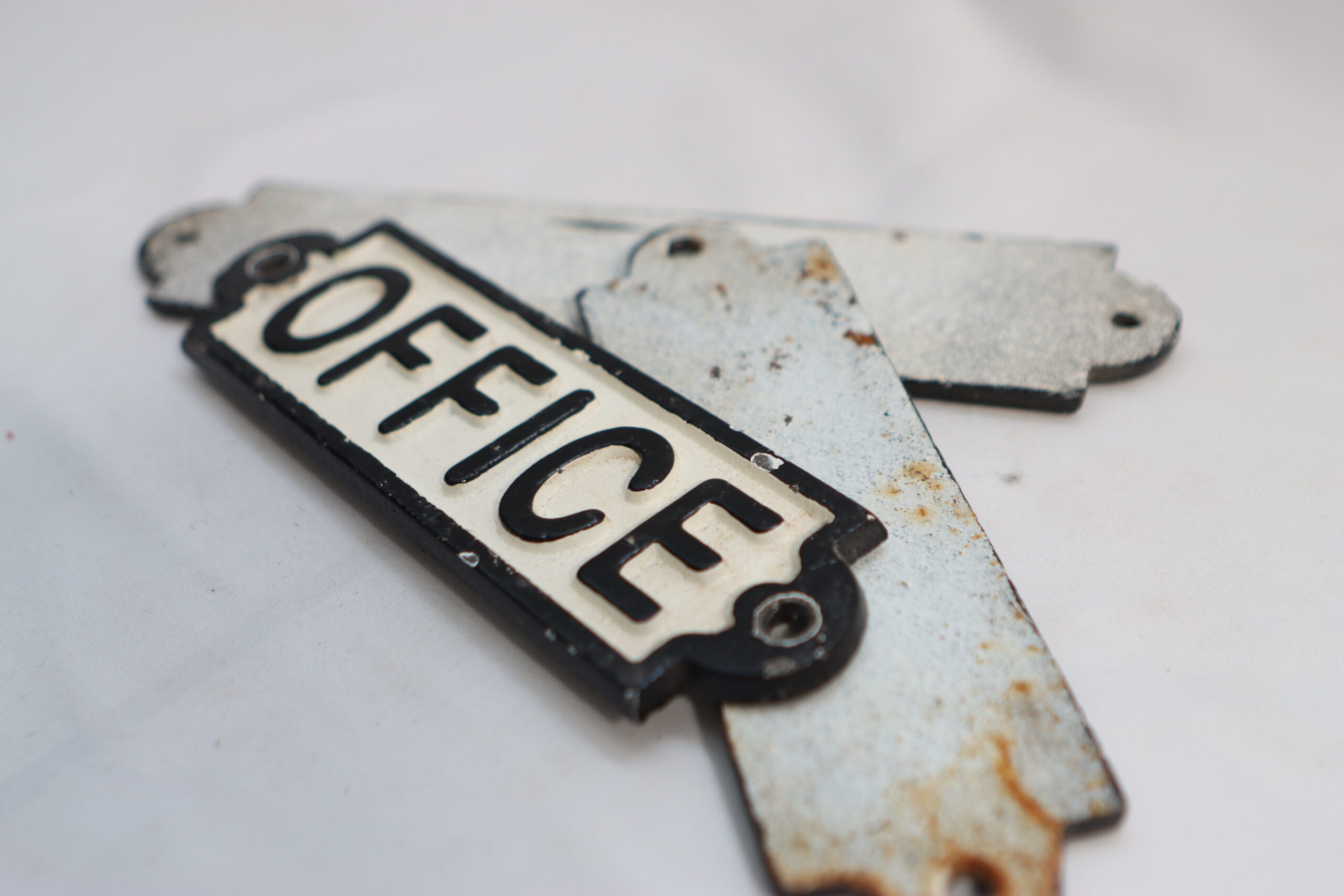 縁に施された装飾的なカッティングと、実用性を重んじた白黒のコントラストが特徴のヴィンテージ・エナメルサインは、単なる案内表示を超え、店舗やスタジオの世界観を決定づける重要なデザイン要素となります。