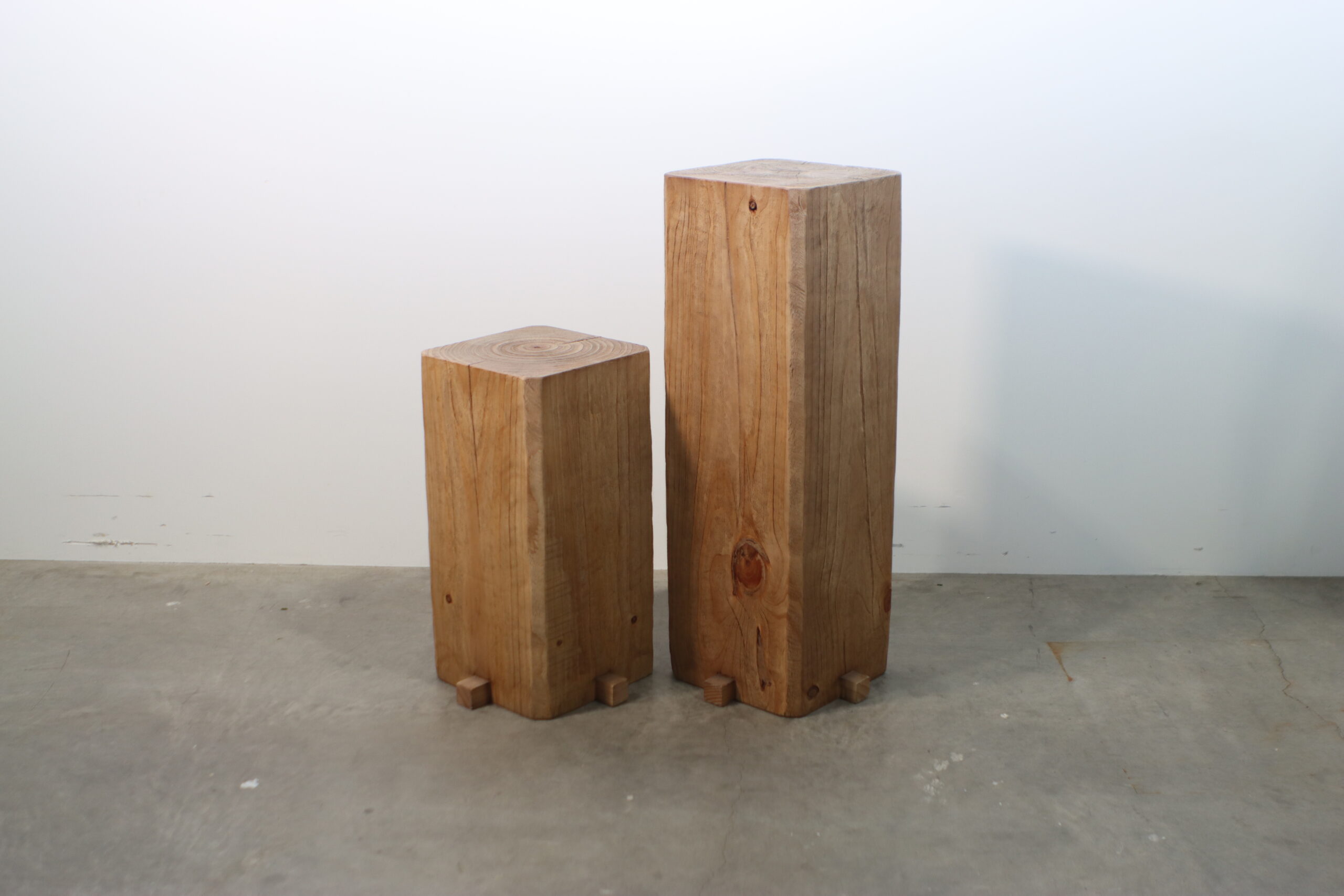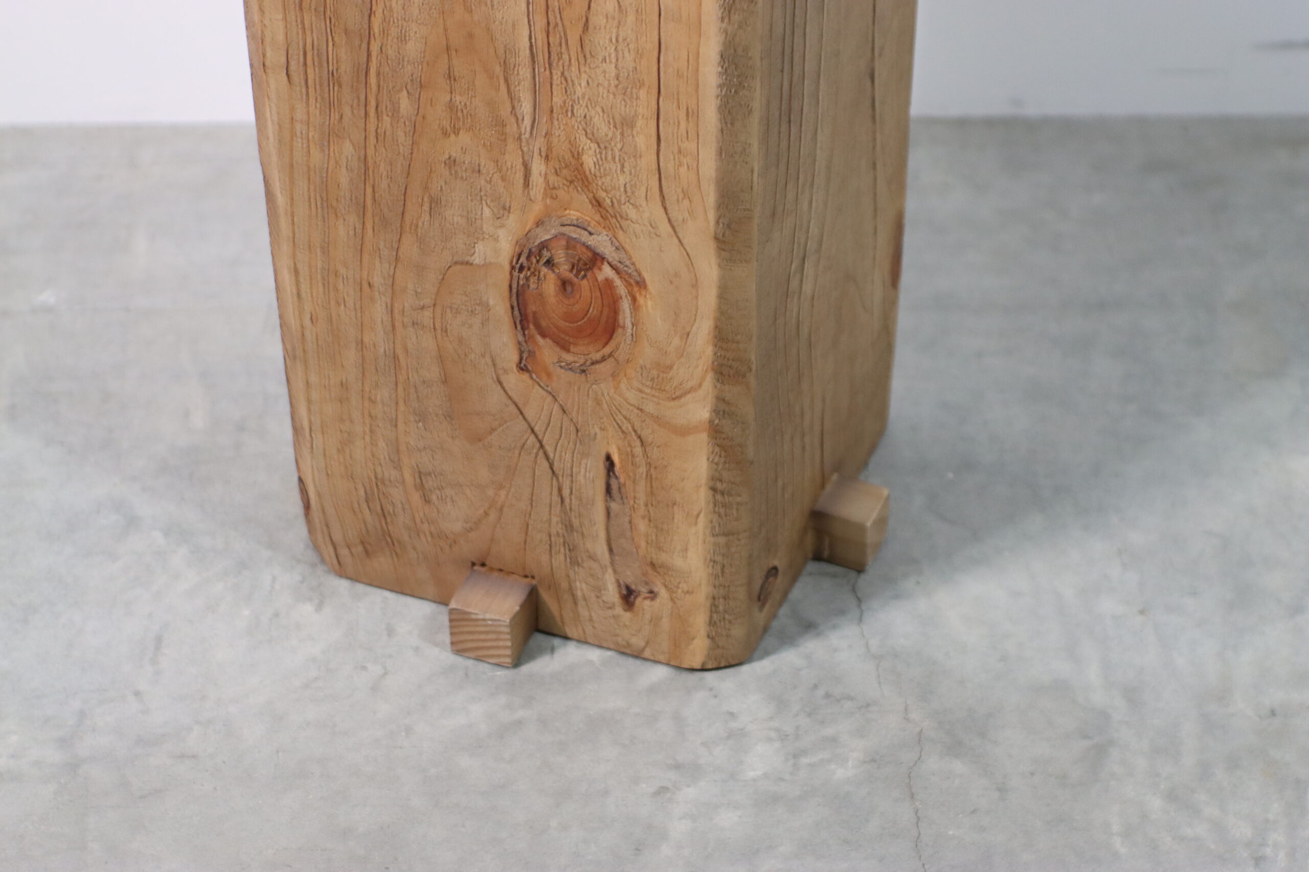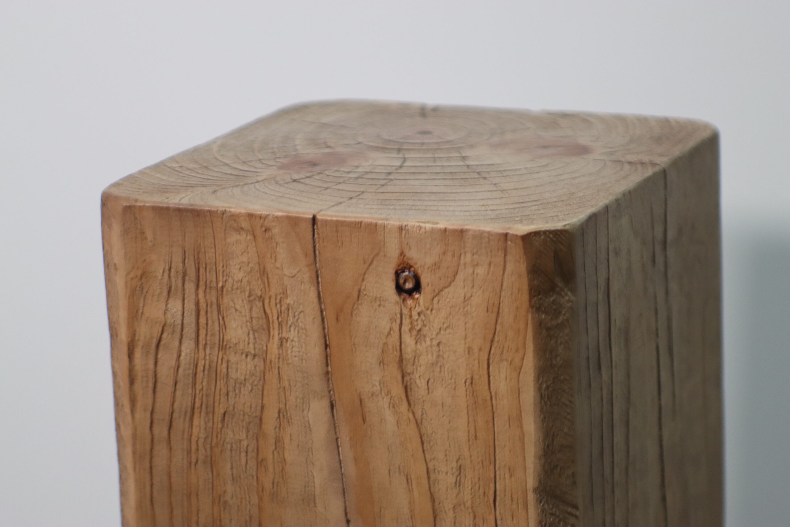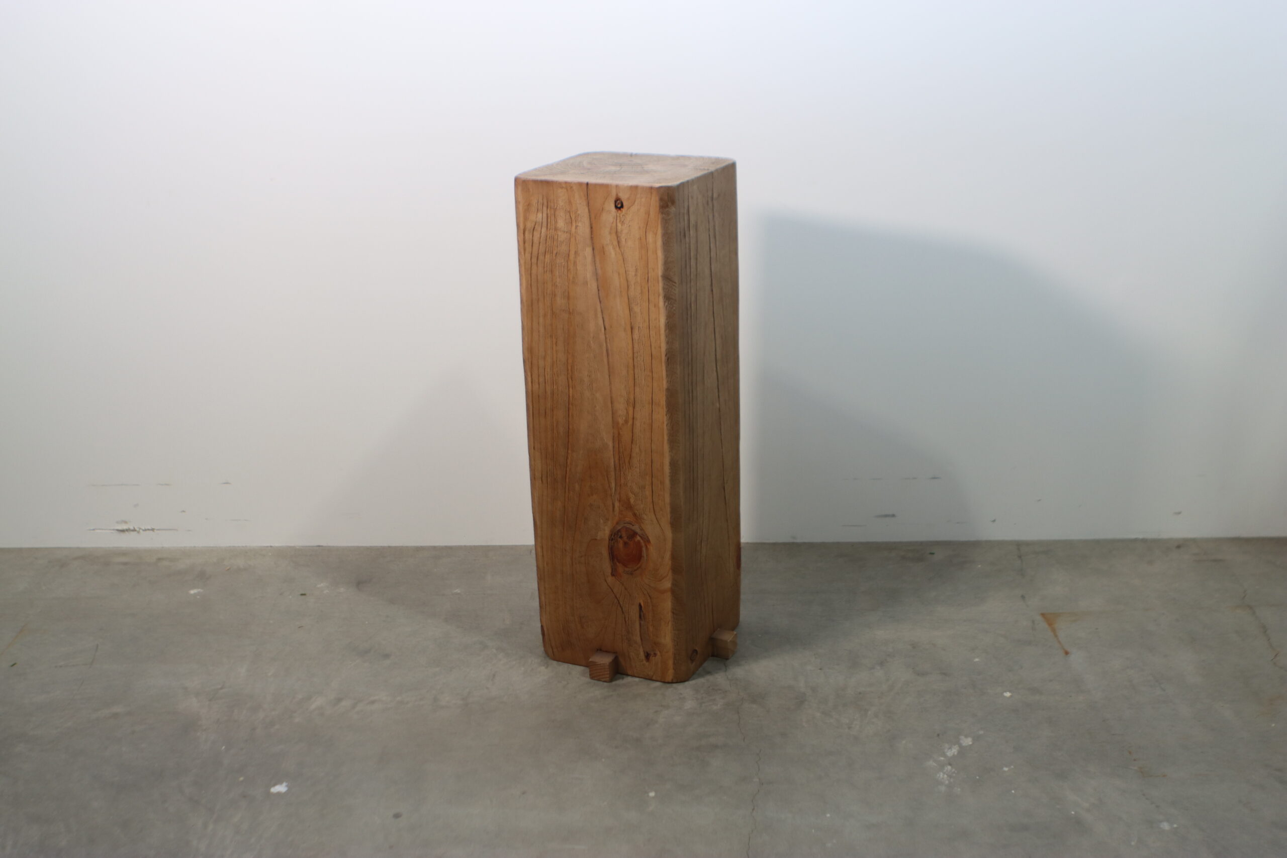 長年使い込まれたような古材の風合いが、空間に圧倒的な重厚感と物語を生み出すディスプレイスタンドです。