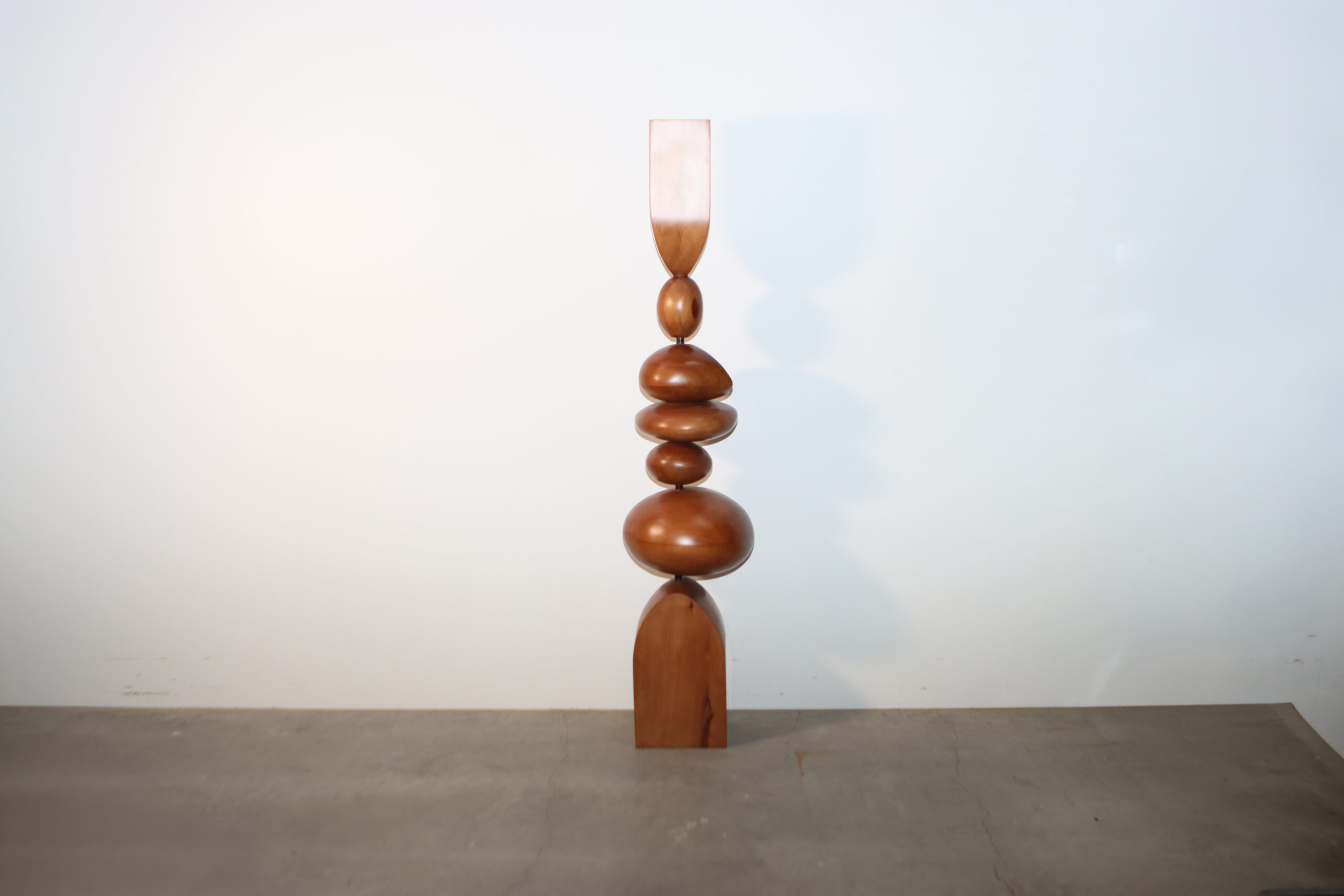 柔らかな曲線を描くパーツを積み上げた、有機的でモダンな佇まいが魅力の大型スカルプチュアです。