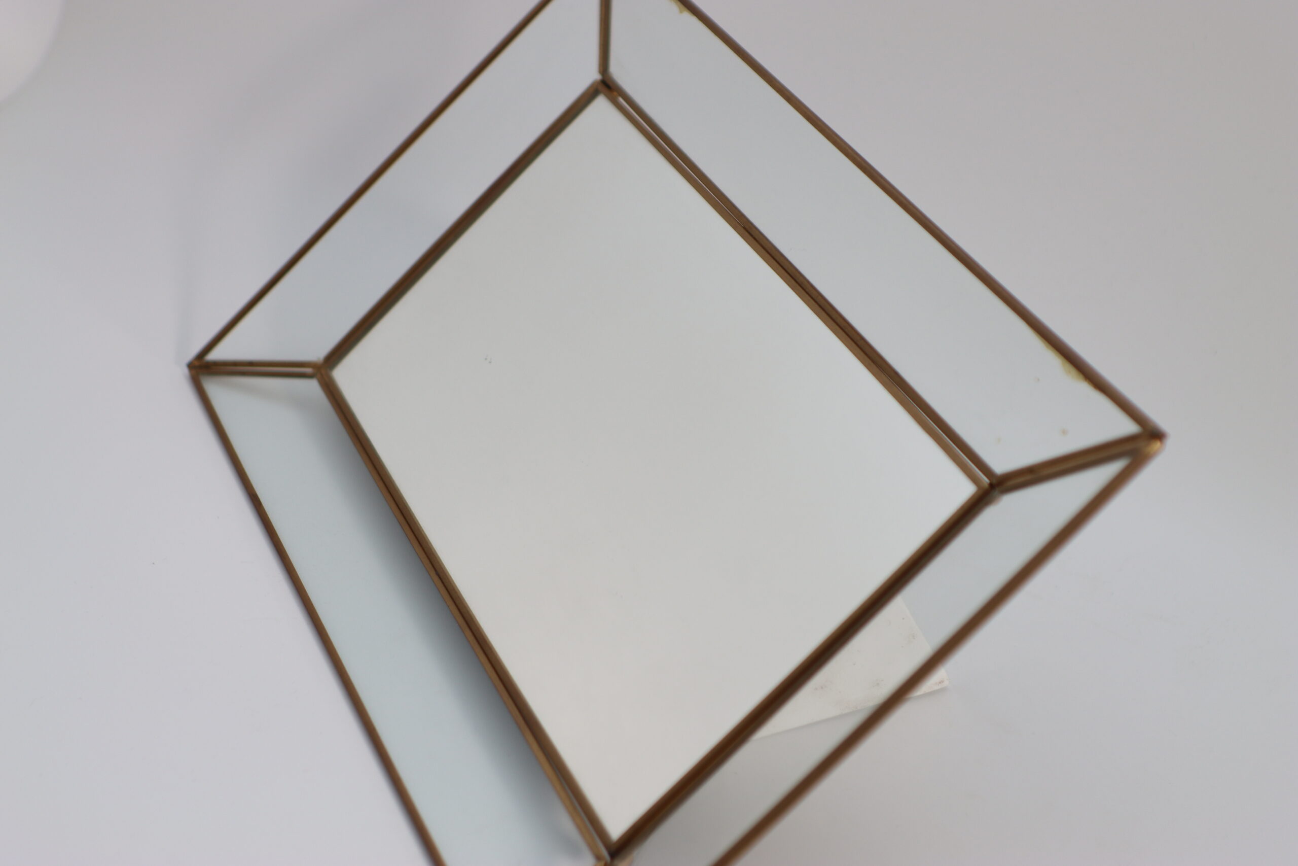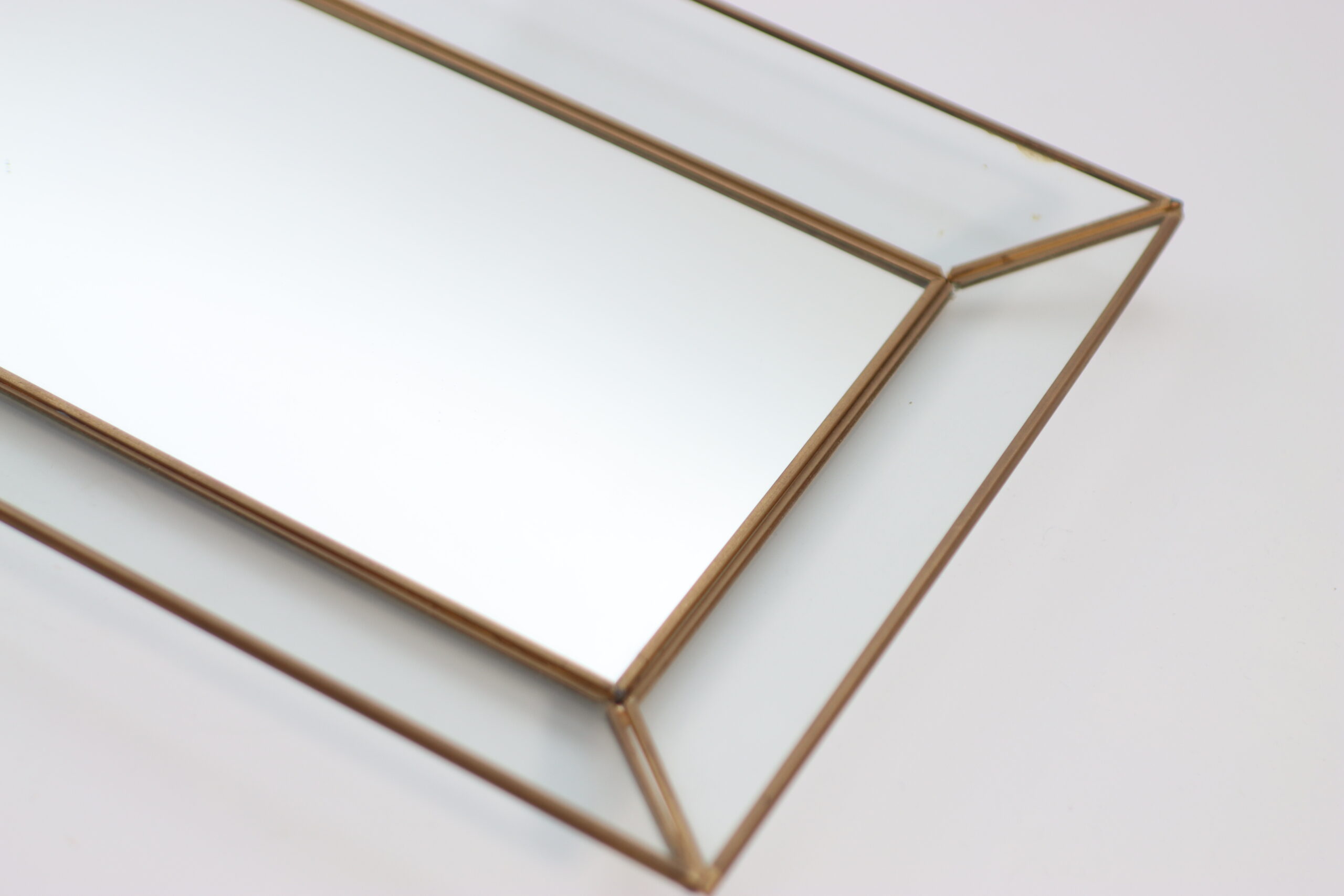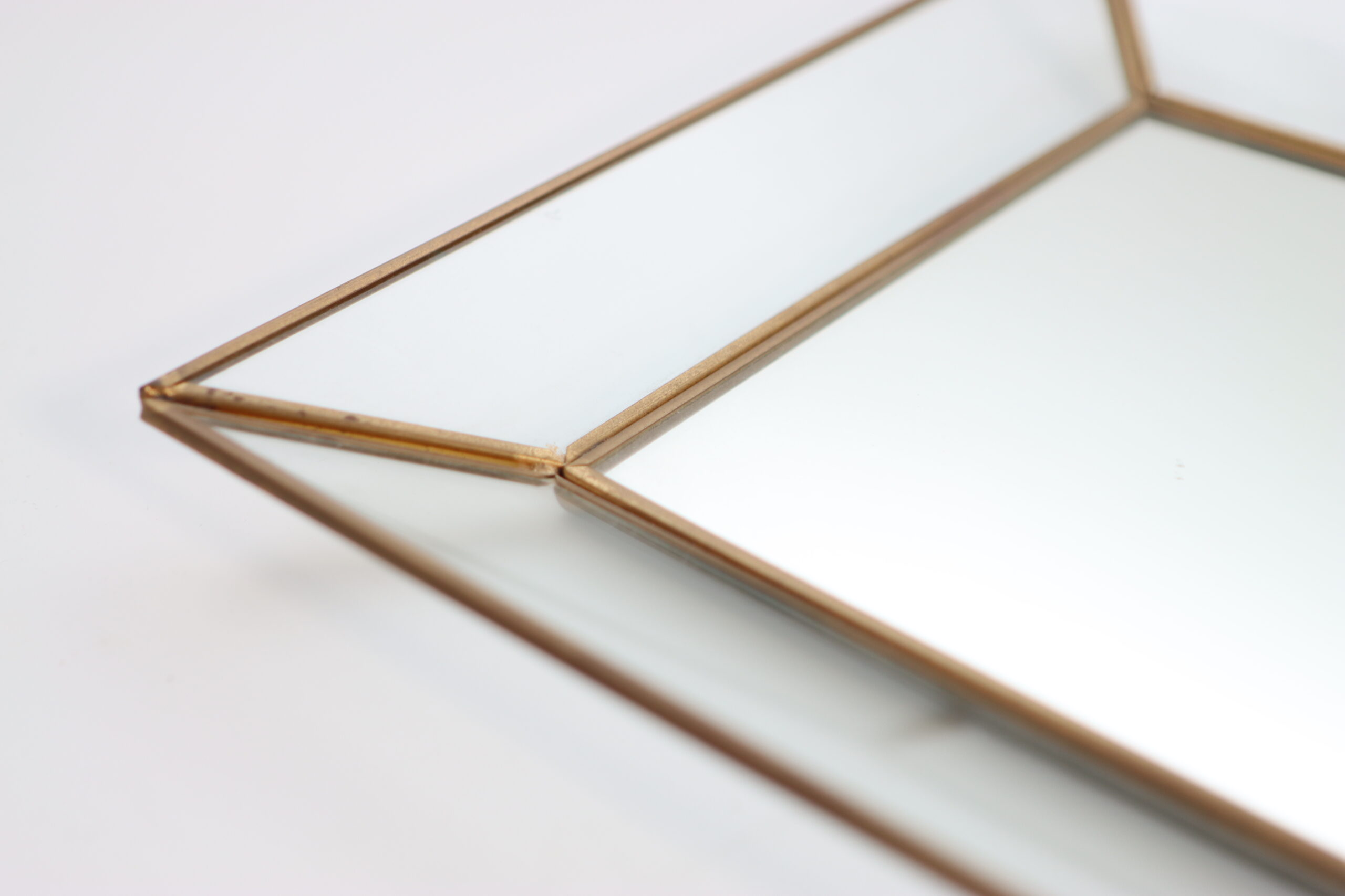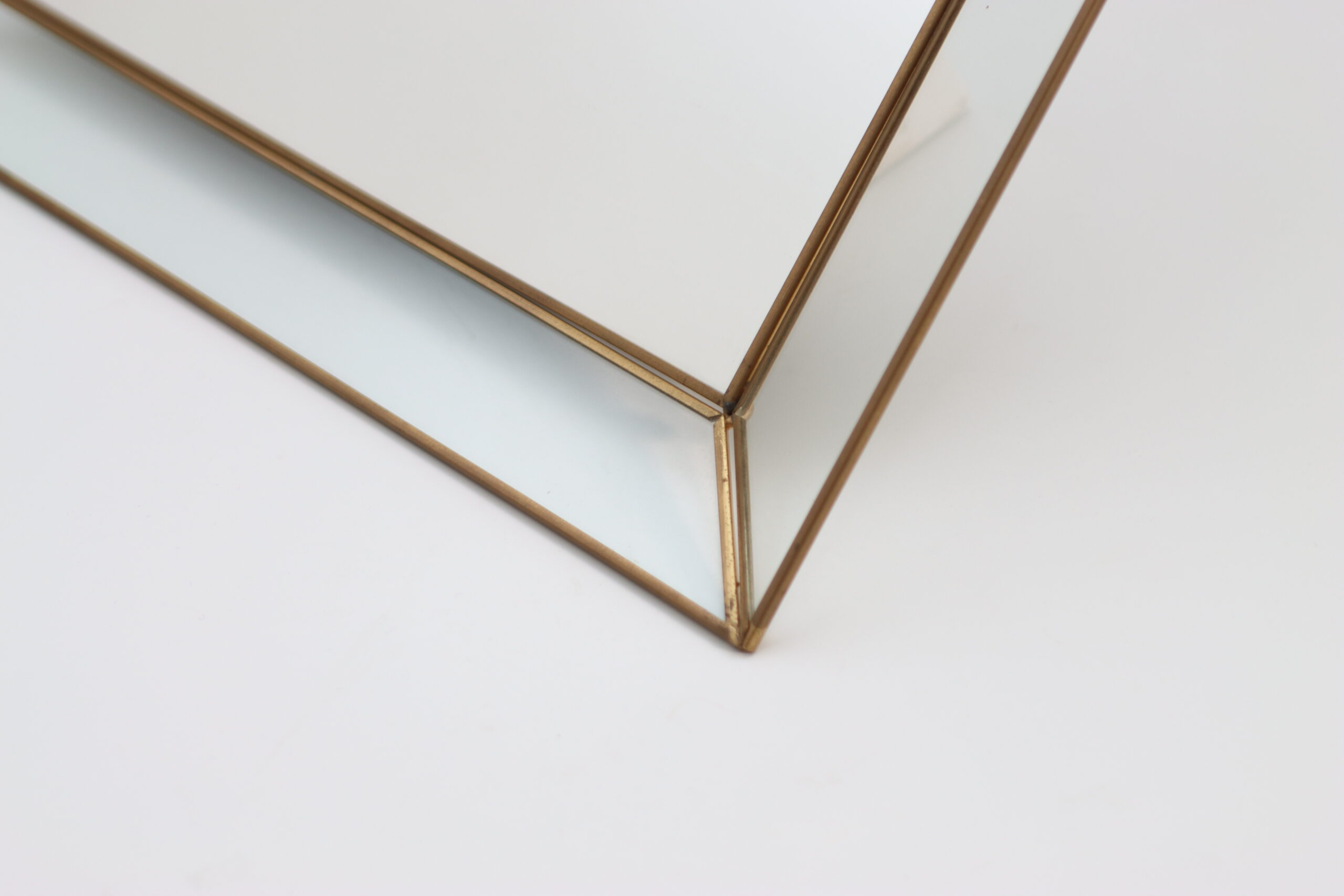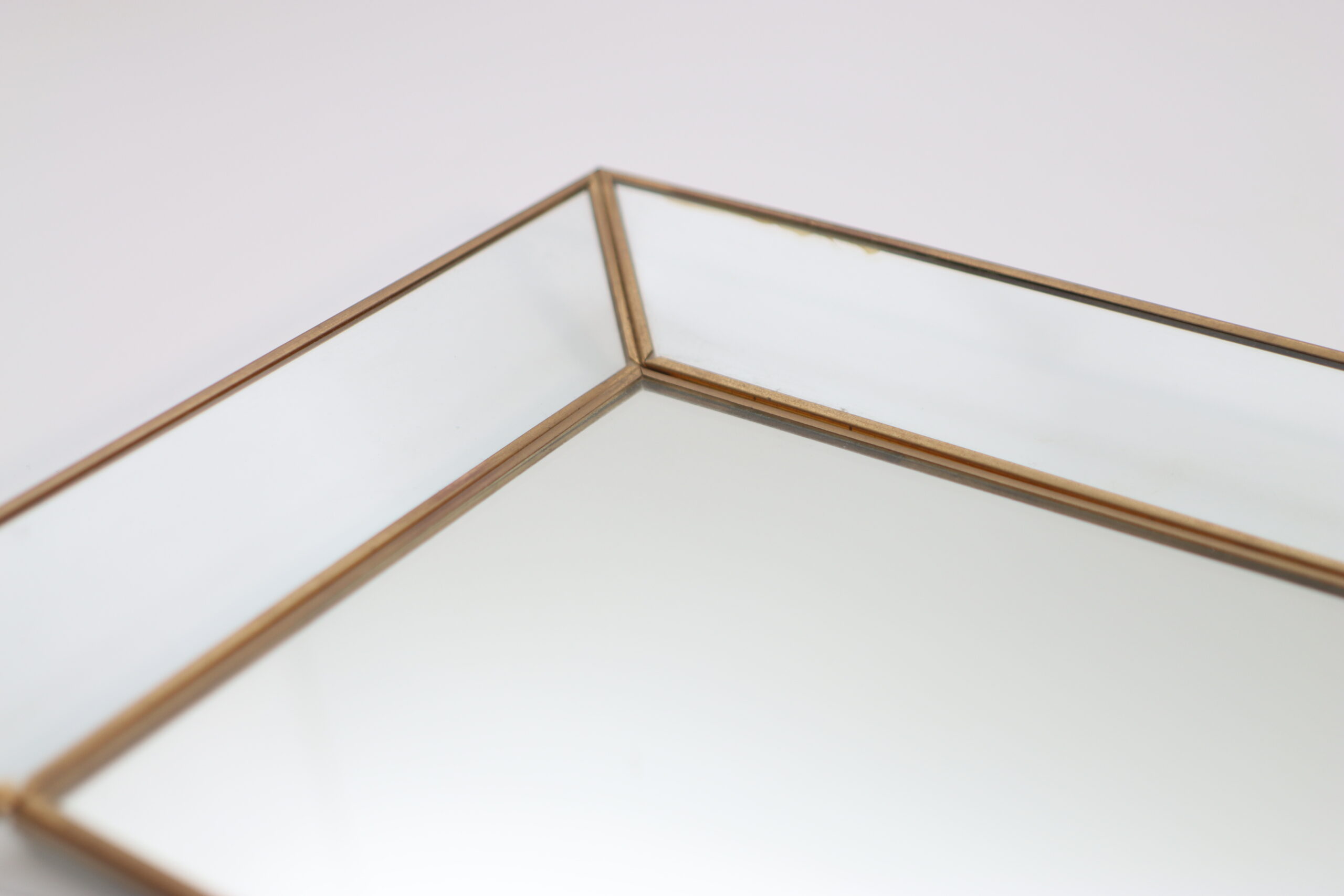 面取りされたガラスと細身のブラスフレームが、直線的で端正な印象を与えます。