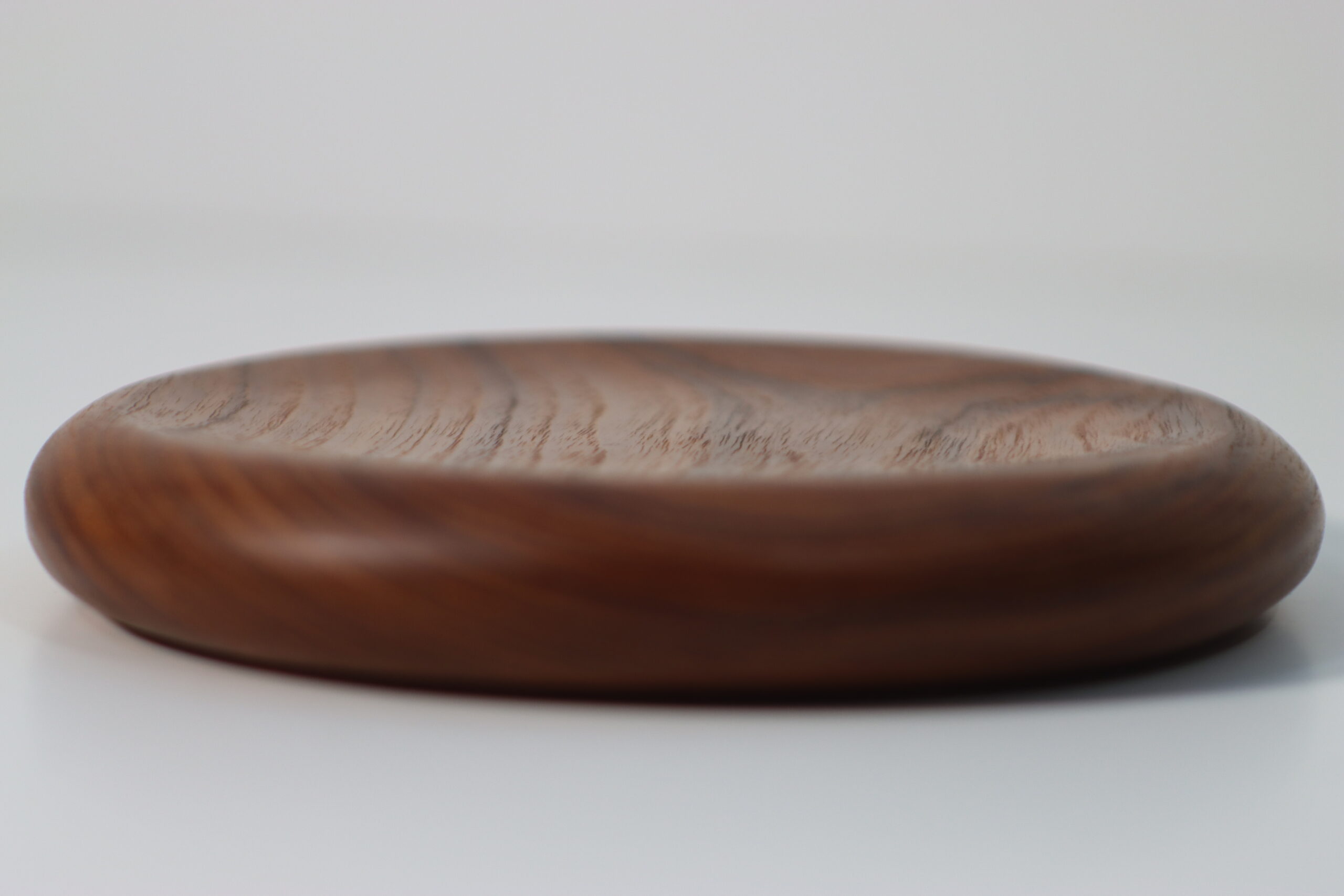 滑らかな曲線を描く天然木の質感が、空間に柔らかな温もりと落ち着きを添える、無駄のないミニマルなデザインのトレーです。