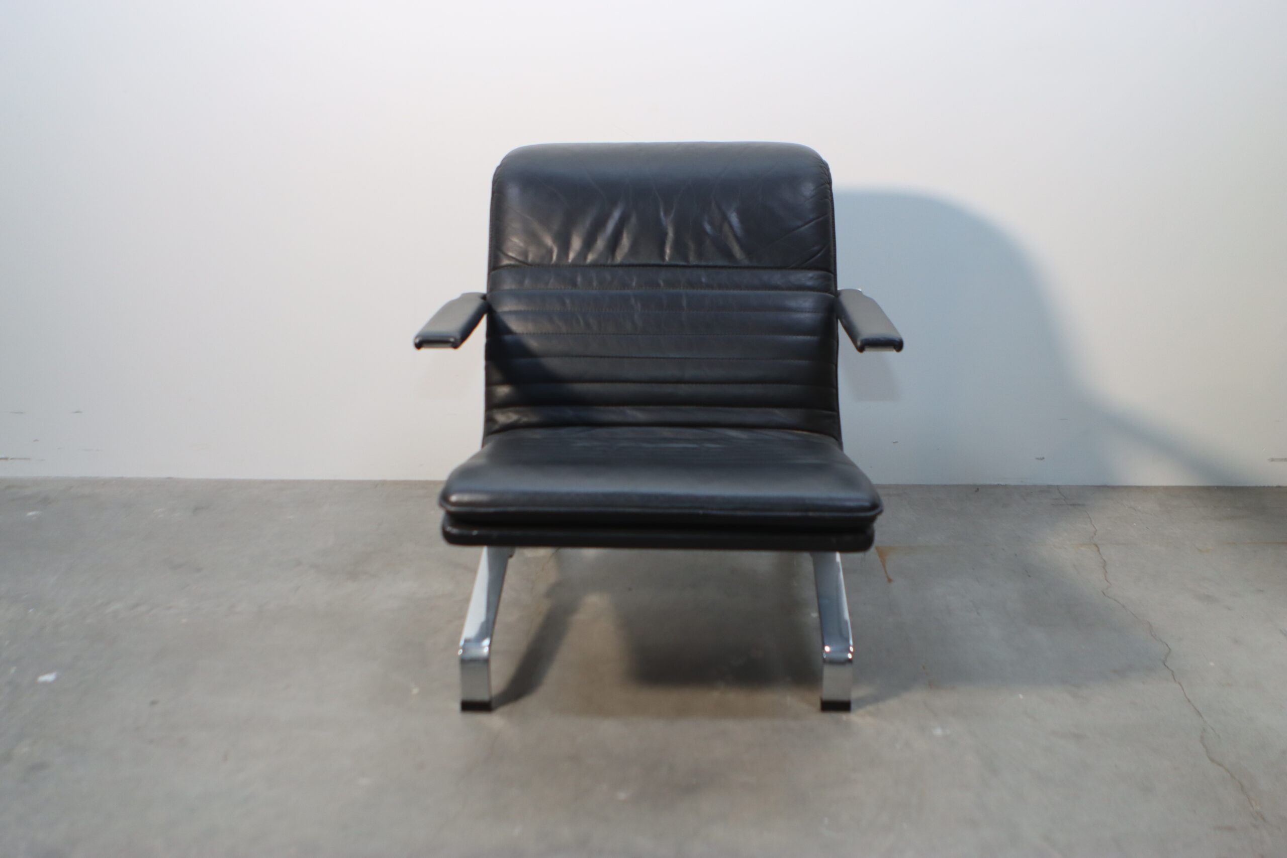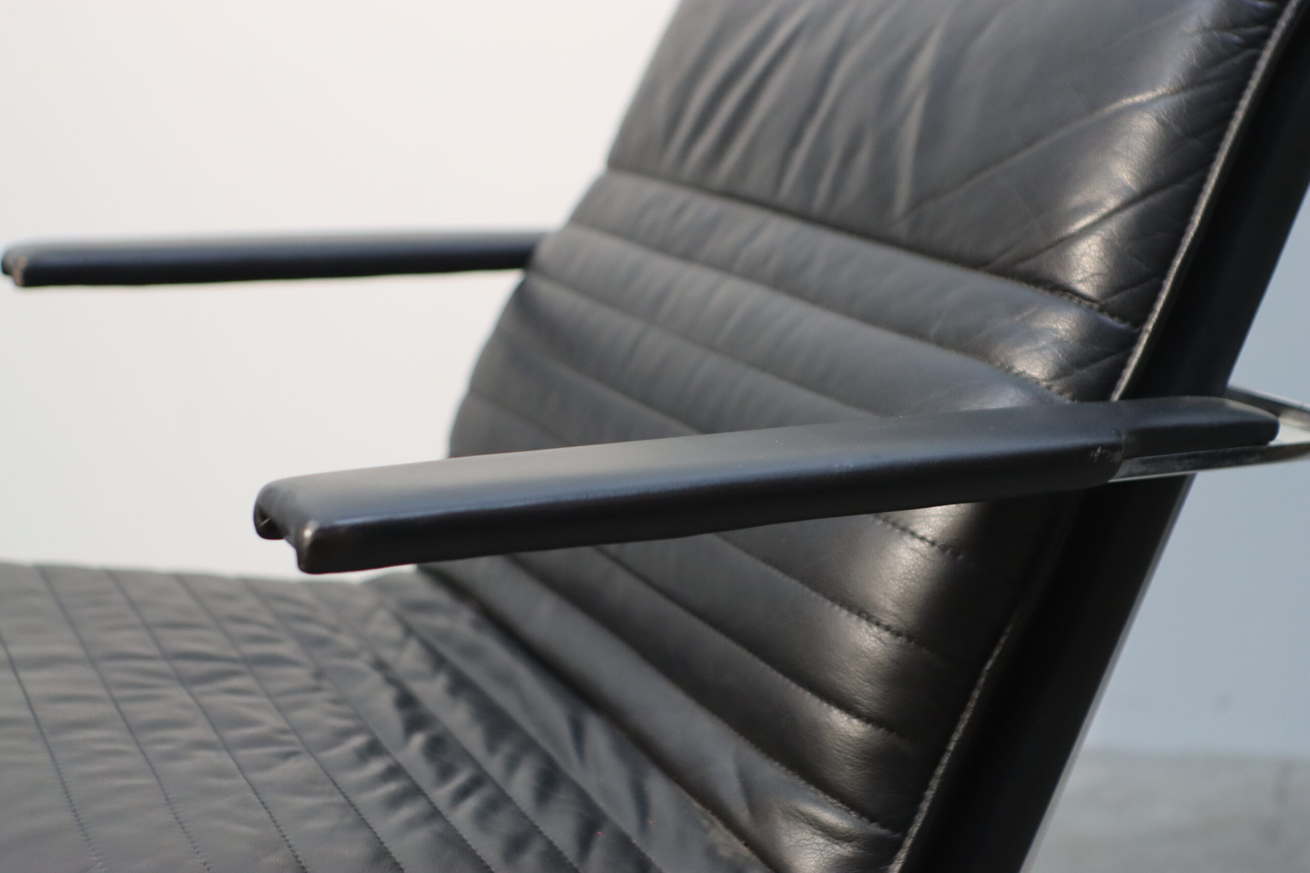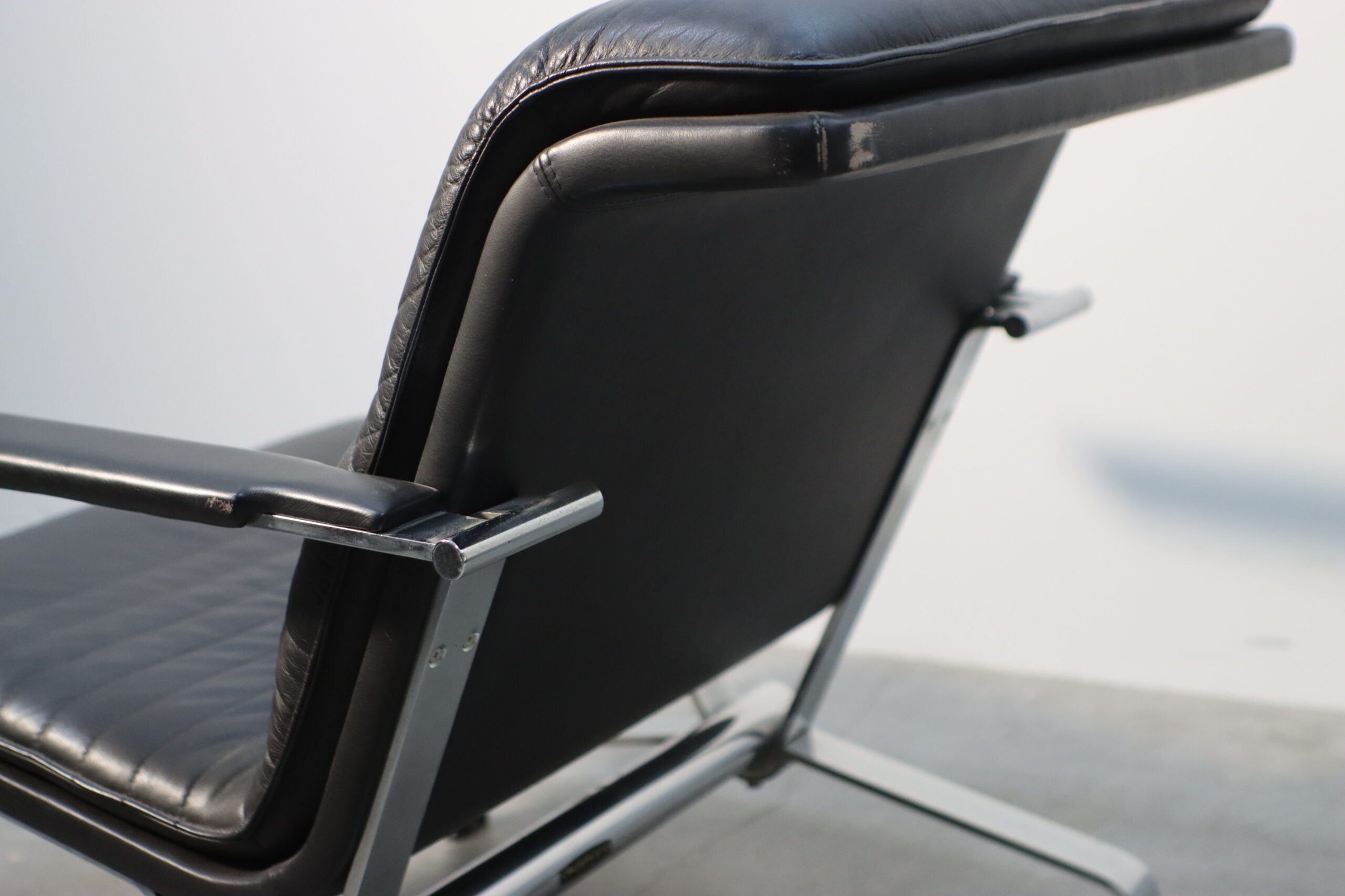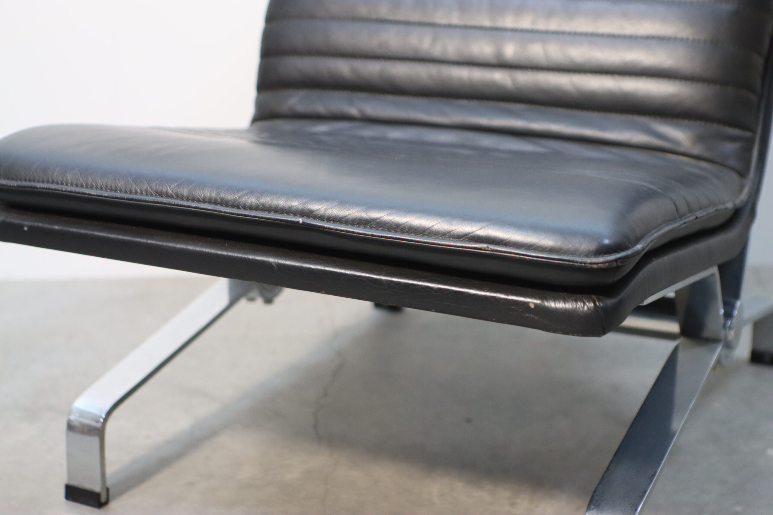 キルティング加工が施された肉厚なブラックレザーが、身体を深く包み込み、視覚的にも「最上級の休息」を空間に印象づけます。