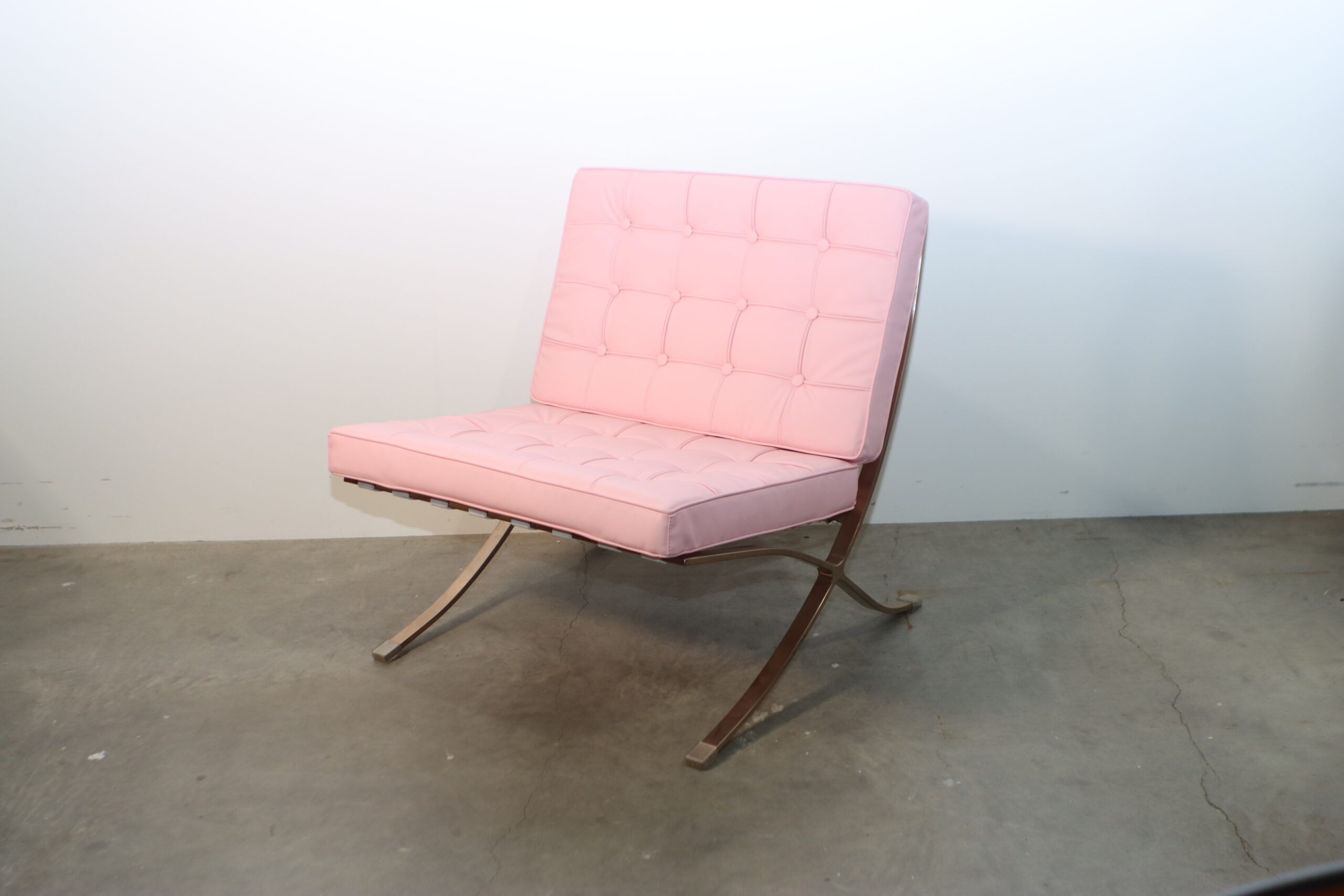 本製品は、その優れたデザイン性と色彩を活かした撮影用プロップ・装飾用オブジェです。実際の家具としての長期的な実使用や、構造的な安全性、クッションの復元性などは考慮されておりません。先に紹介した ブラックのレザー・ラウンジチェア と対比させることで、「強さと柔らかさ」を表現するドラマチックな空間構成が可能になります。