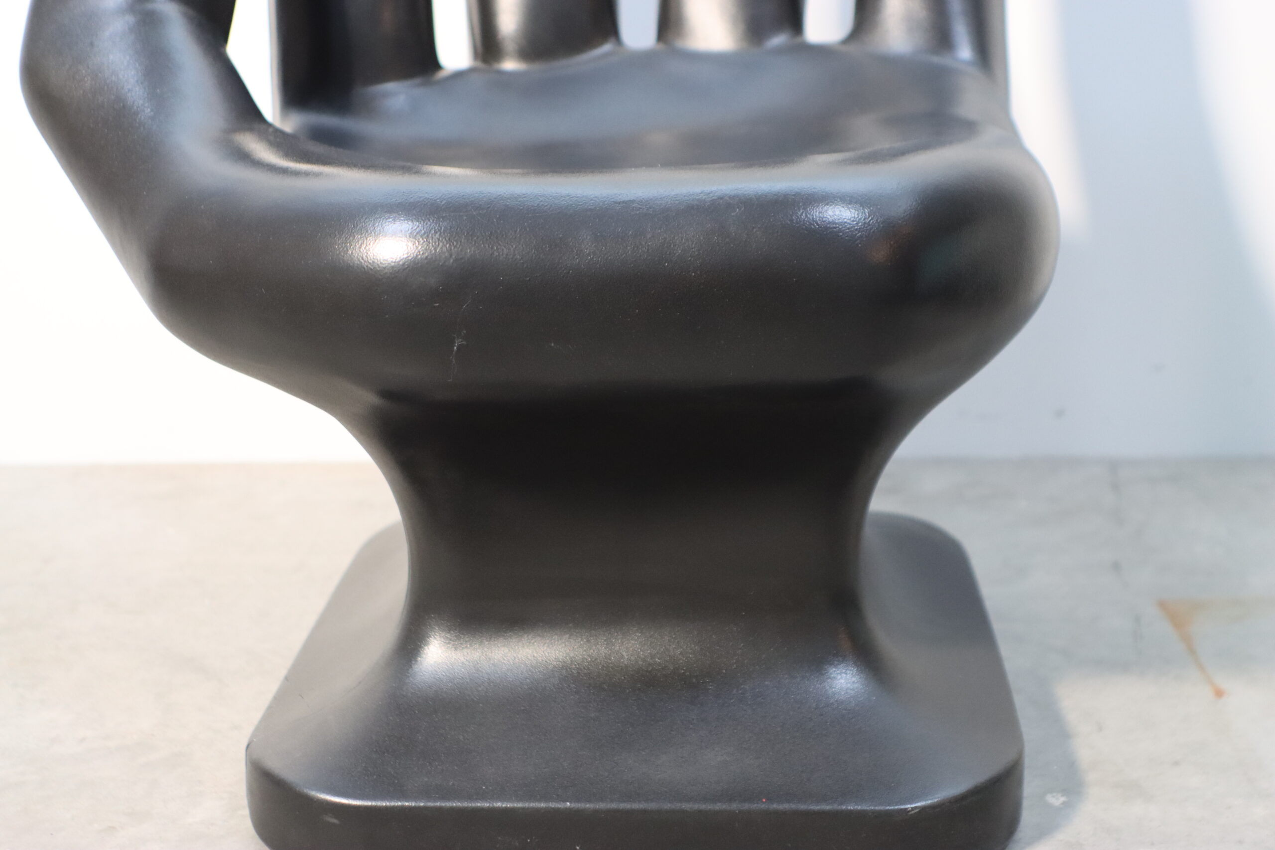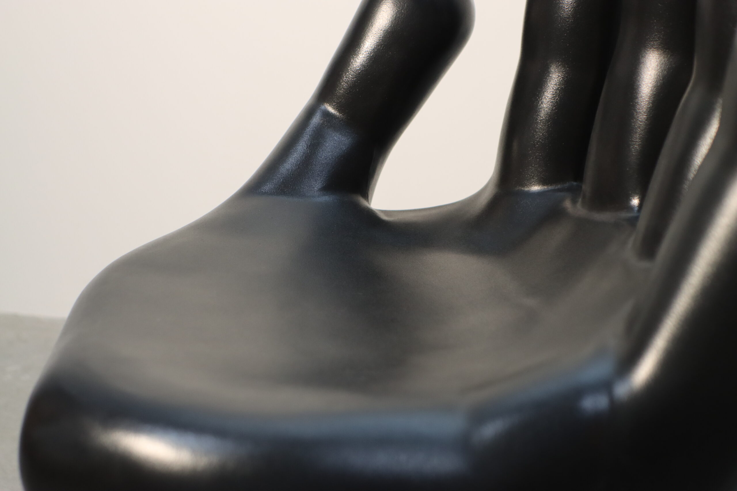 艶やかなブラックの質感が指の曲線を際立たせるこのハンド・ラウンジチェアは、単なる家具の枠を超えたオブジェとしての価値を持ち、訪れる者の記憶に深く残るアイコンとして機能します。