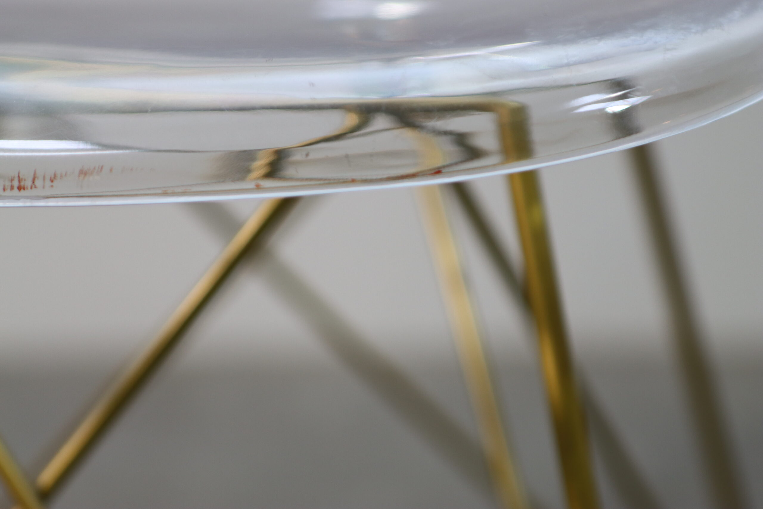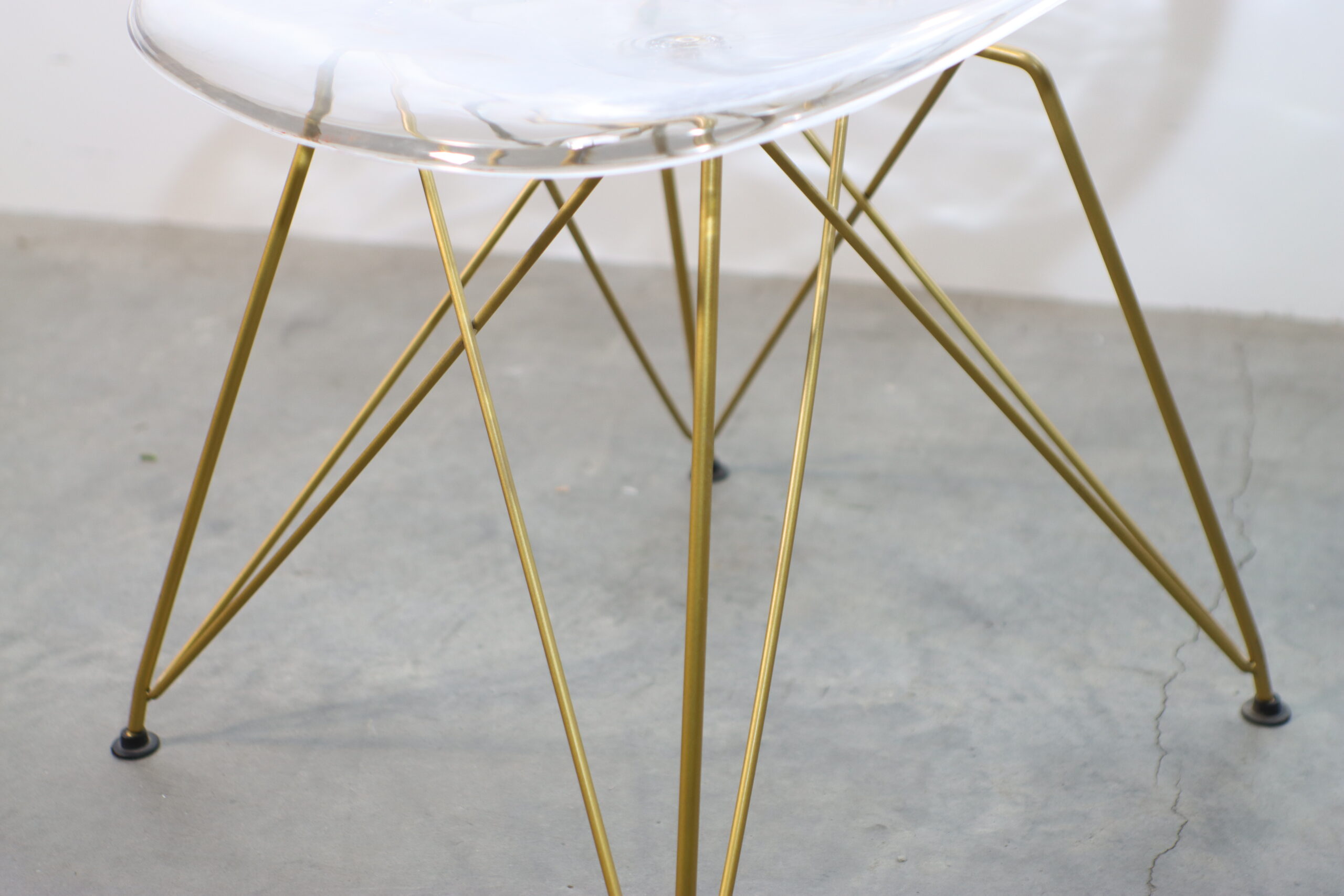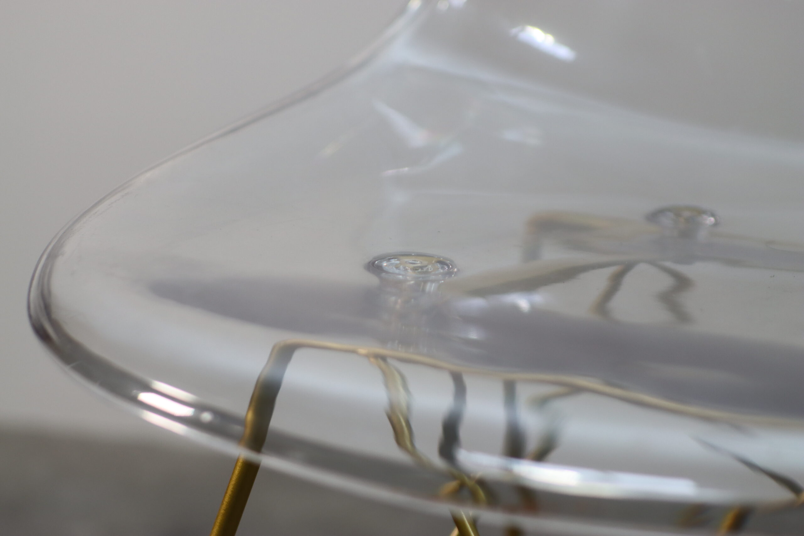 座面が透けることで視覚的な圧迫感を完全に取り除き、狭い撮影セットでも空間を広く開放的に見せる効果があります。