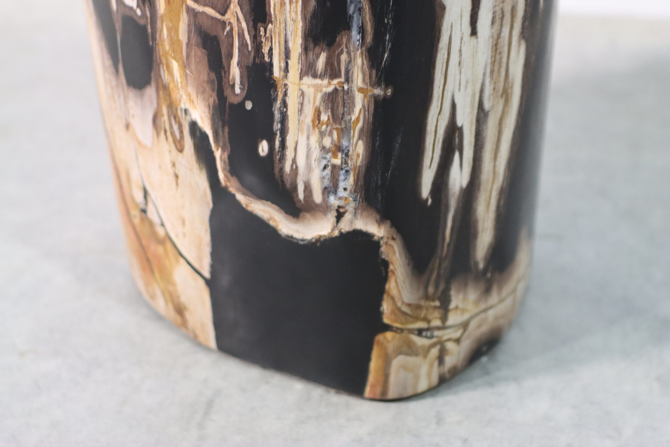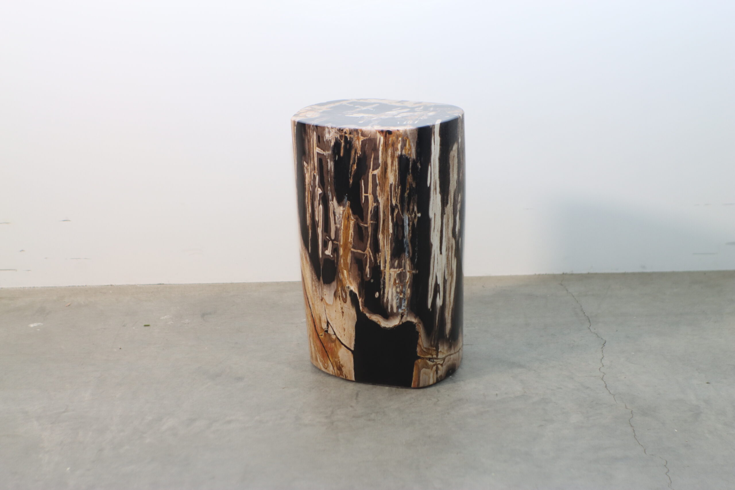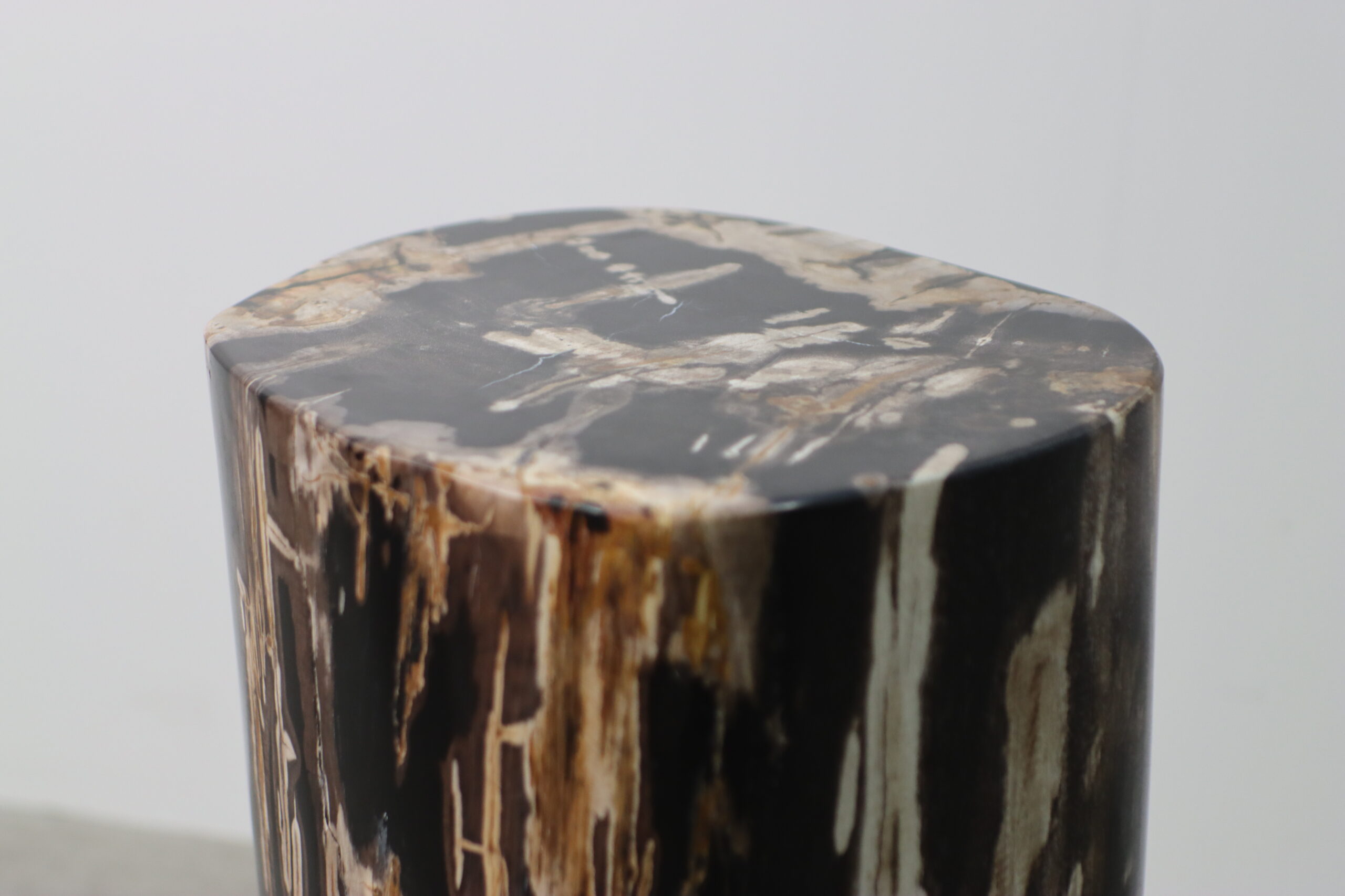 モダン・レジン・ログスツールは、天然木の緻密な年輪や樹皮のテクスチャーを樹脂(レジン)で封じ込め、人工的な光沢と有機的な造形を融合させることで、空間に「超現実的な自然美」を付与します。