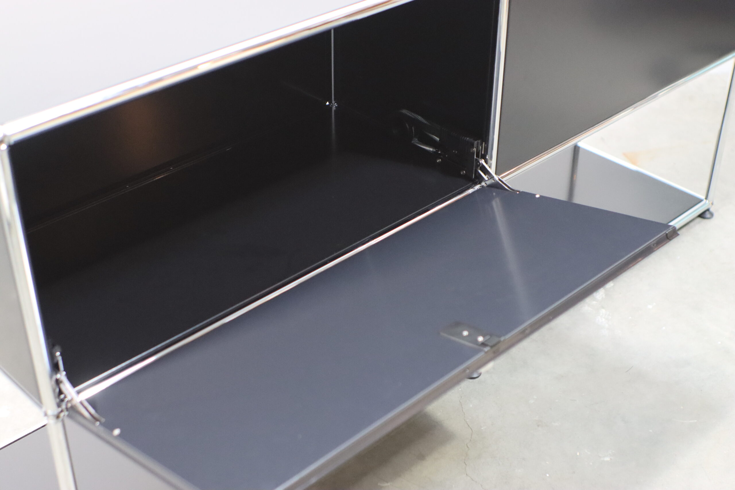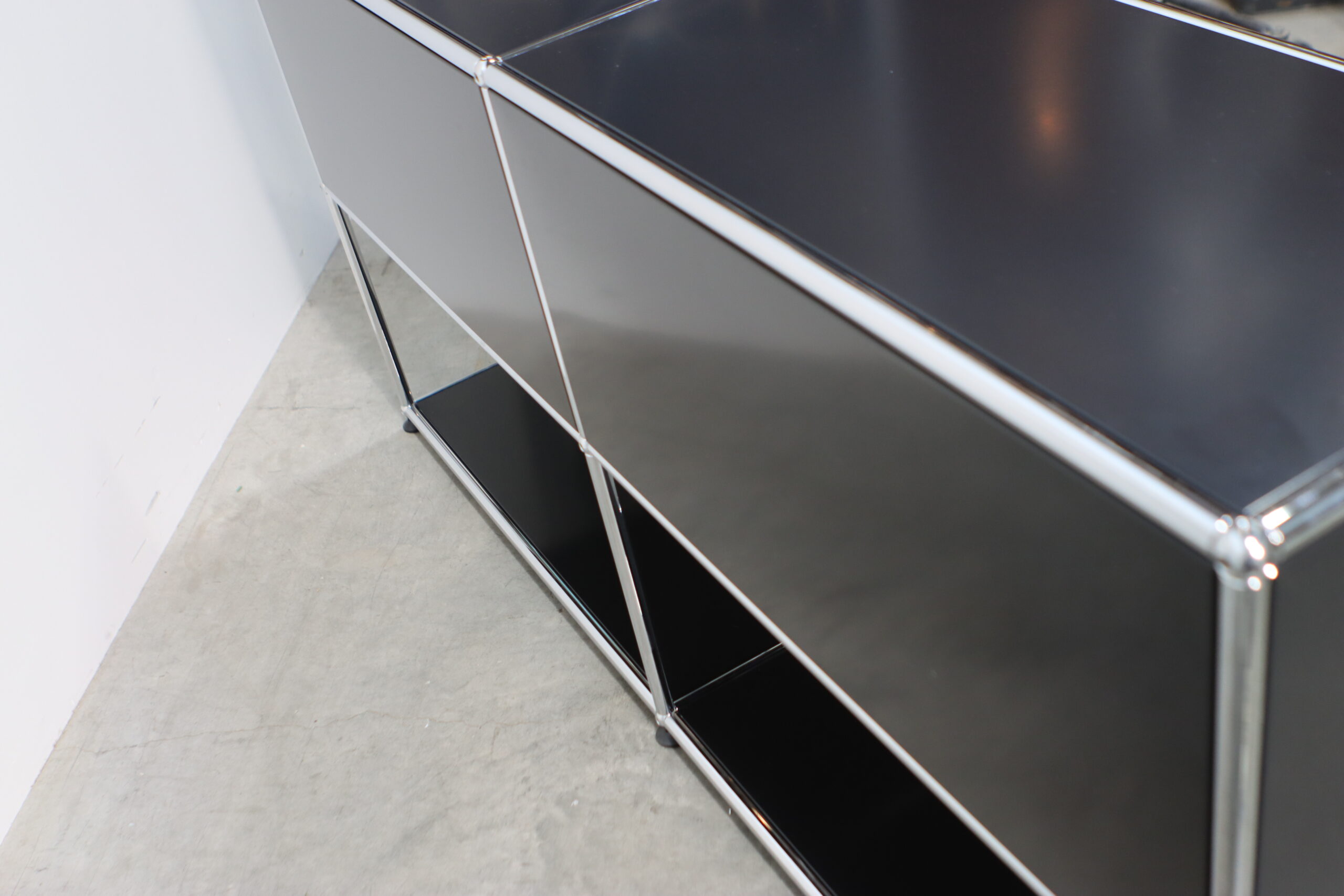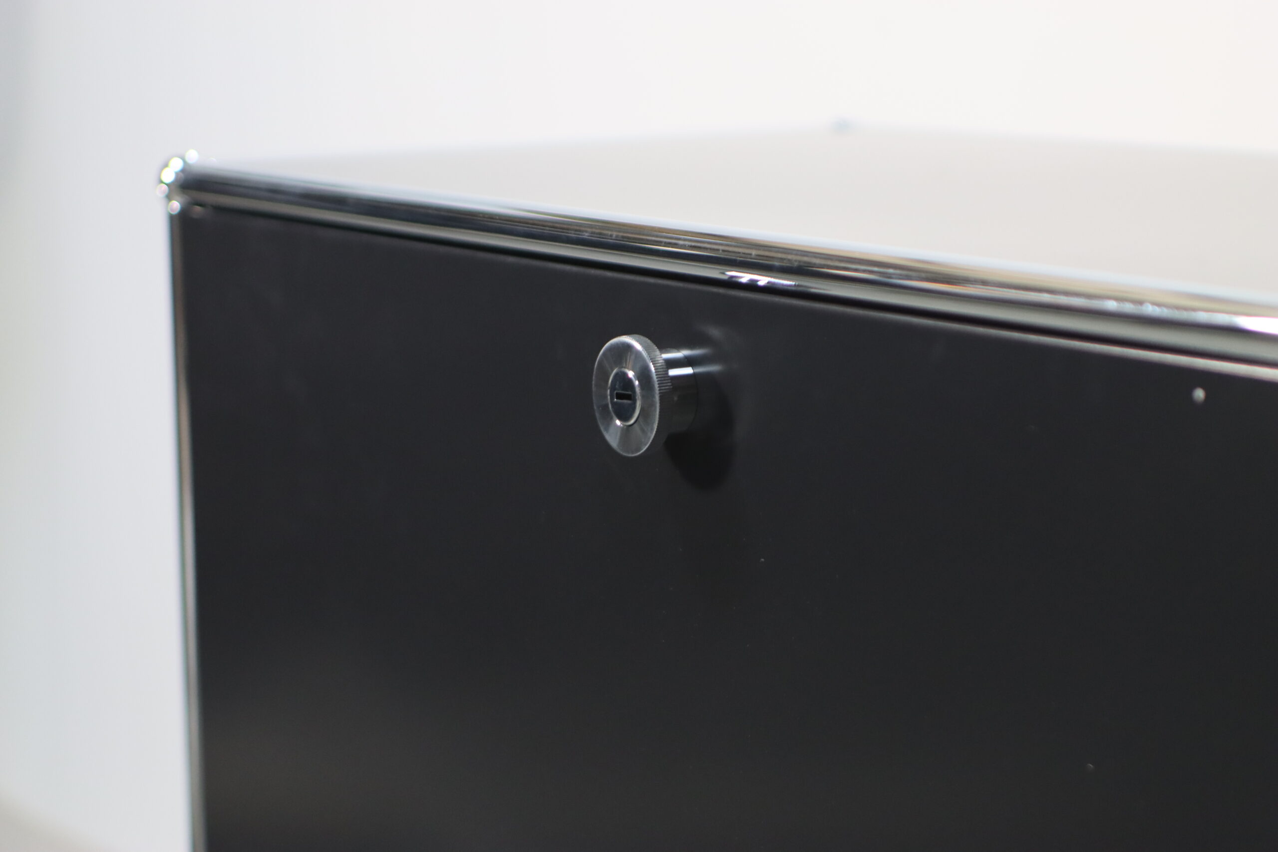 究極の機能美とミニマリズム:光沢のあるクロームフレームとマットなブラックパネルのコントラストが、空間に知的な秩序とプロフェッショナルな品格をもたらします。