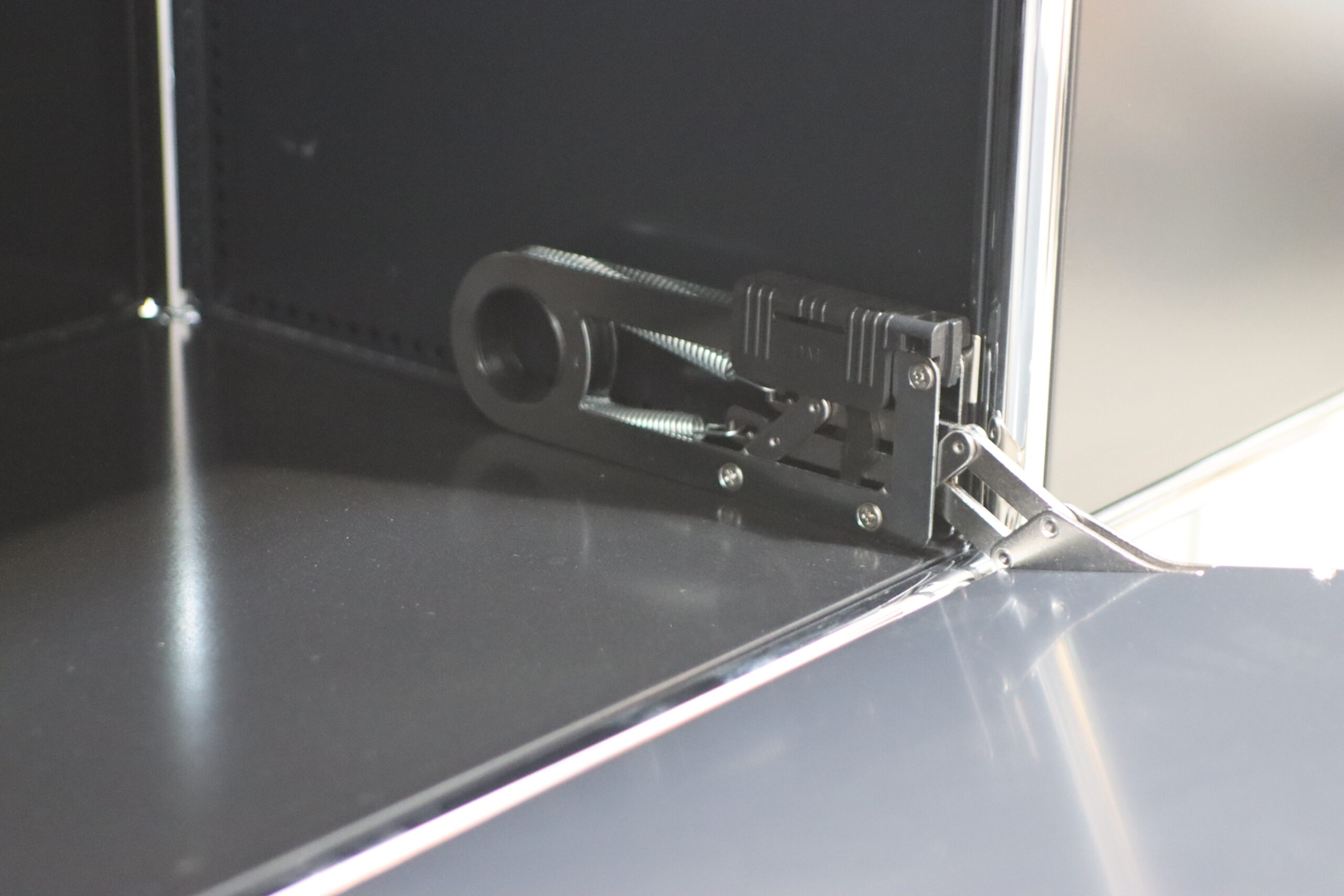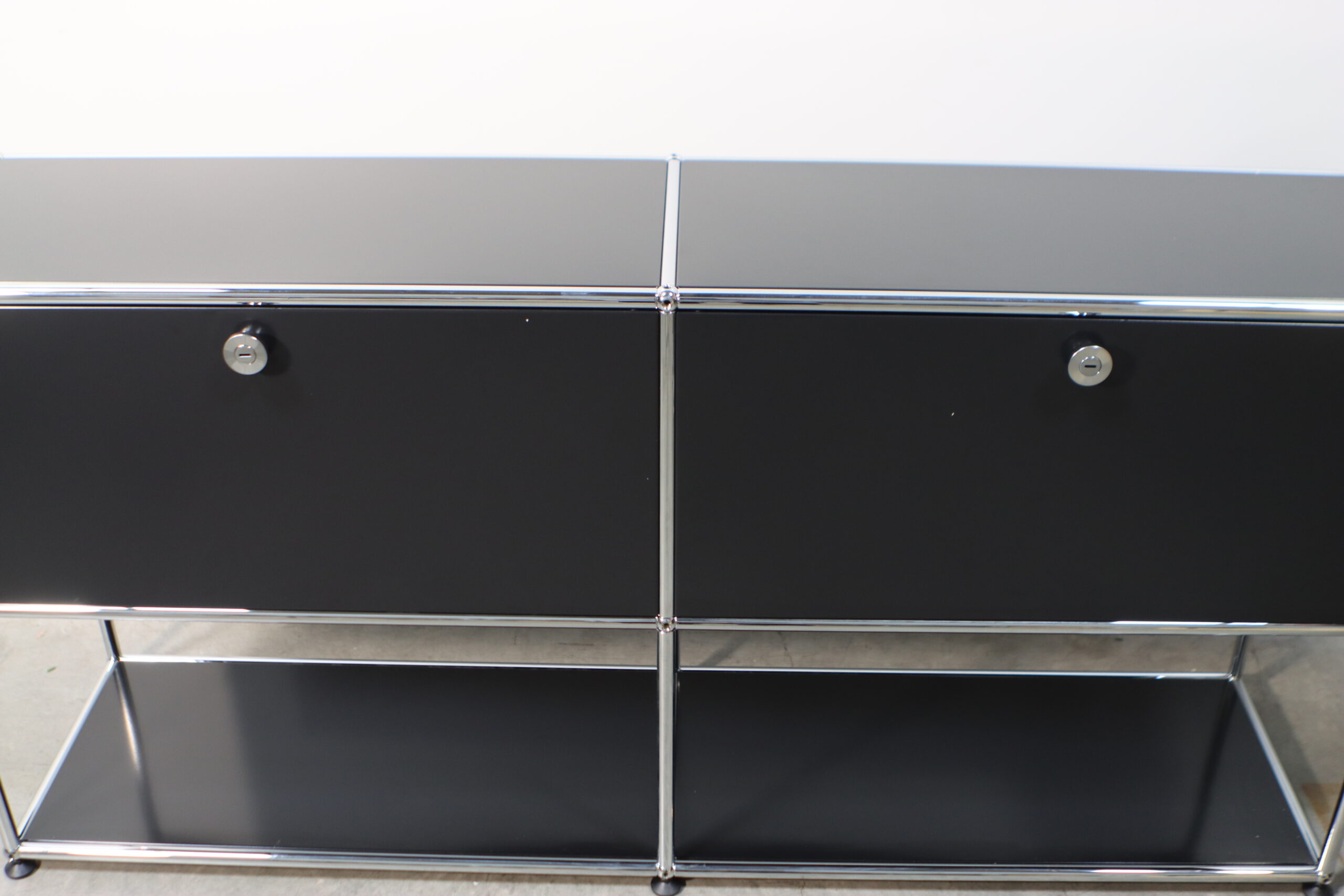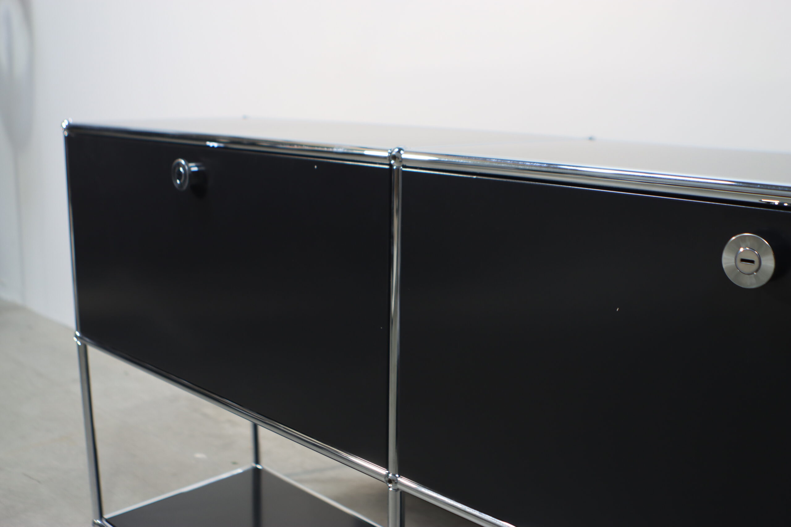 究極の機能美とミニマリズム:光沢のあるクロームフレームとマットなブラックパネルのコントラストが、空間に知的な秩序とプロフェッショナルな品格をもたらします。