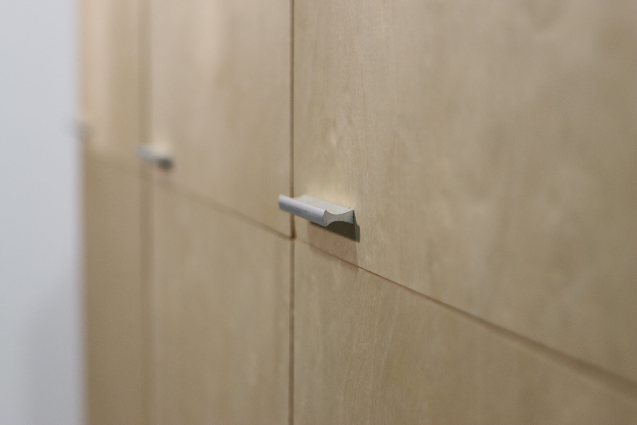 6枚の扉が整然と並ぶグリッド状のデザインは、視覚的な秩序をもたらしながらも、素材の等身大の表情を活かすことで、ハイエンドなインテリアにおける「親しみやすい洗練」を演出します。