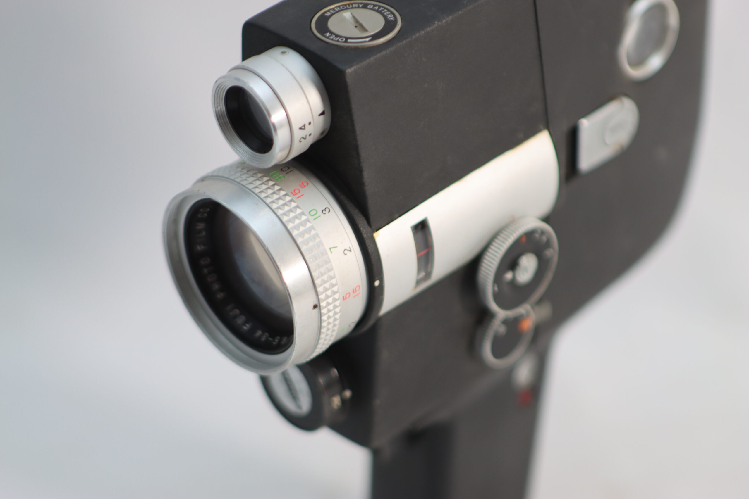「物語を紡ぐ」や「継承される視点」をテーマにした、高級なレザージャケット、あるいは現代の高性能ビデオ編集ソフトやデバイスの広告撮影において、映像制作のルーツを視覚的に象徴するための背景プロップとしての活用。