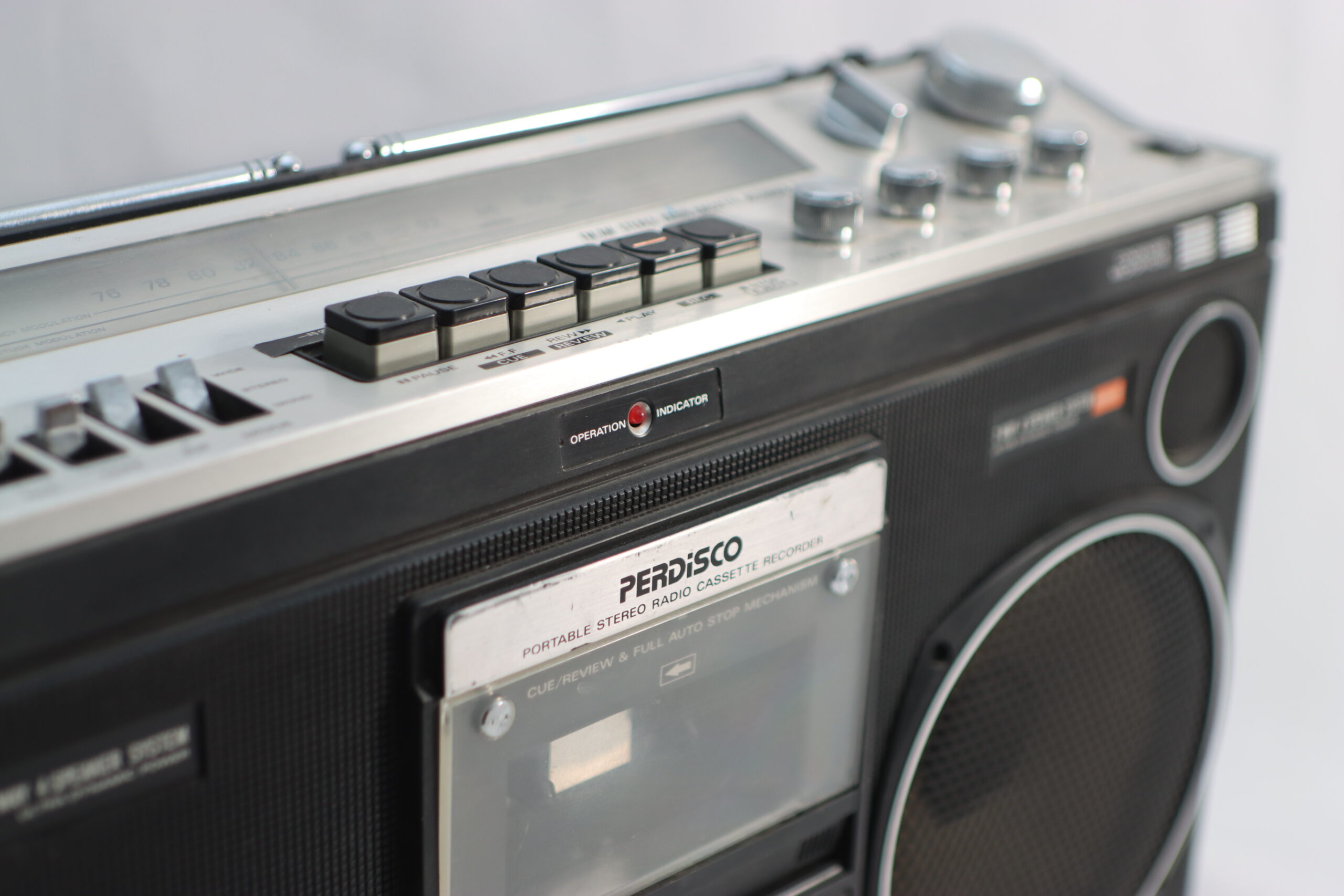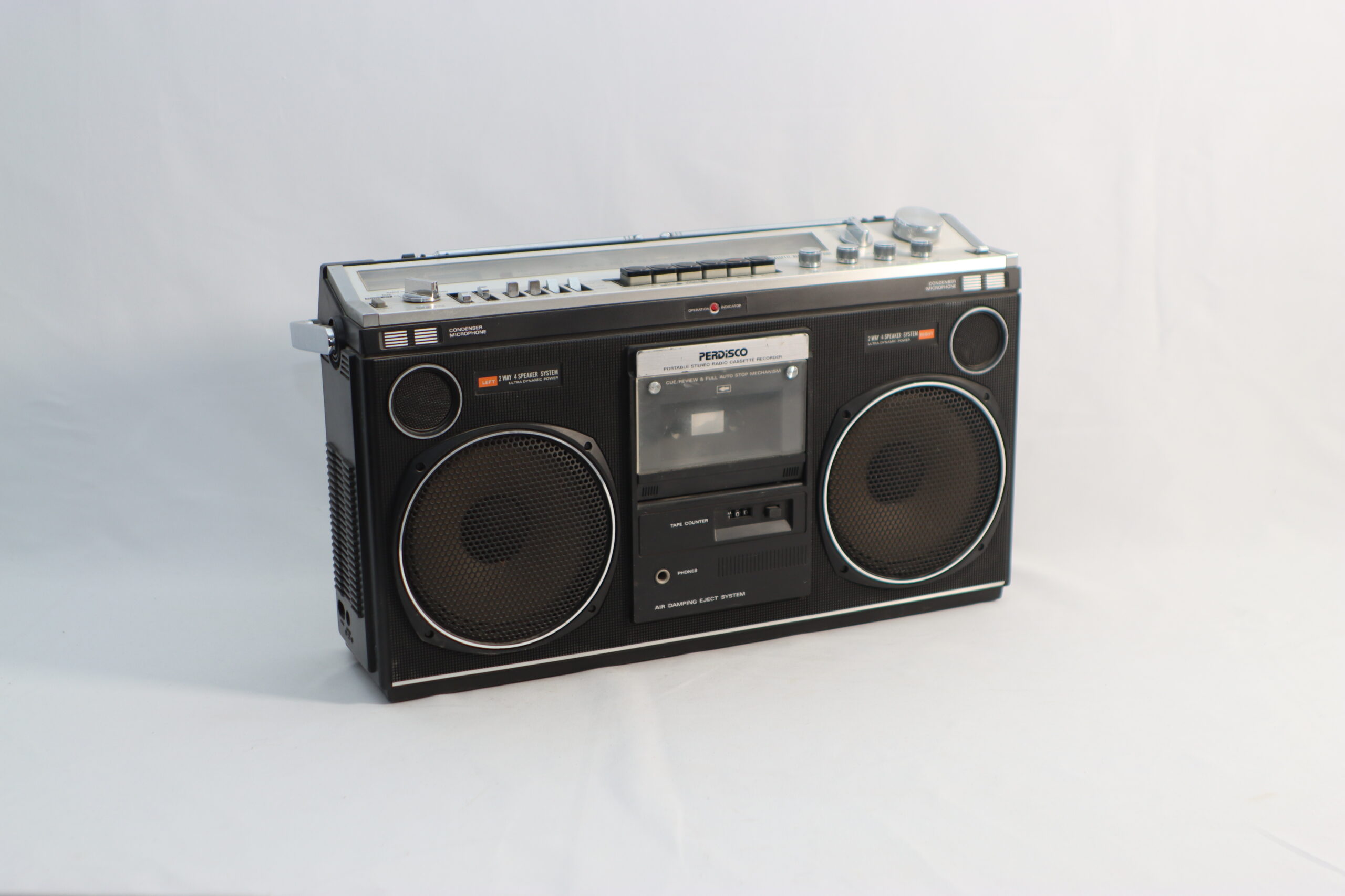 ヒップホップ黎明期のストリートシーンや、深夜放送に熱中したかつての若者の部屋を再現したスタジオセットにおける、時代を定義するキー・アイテムとしての配置。