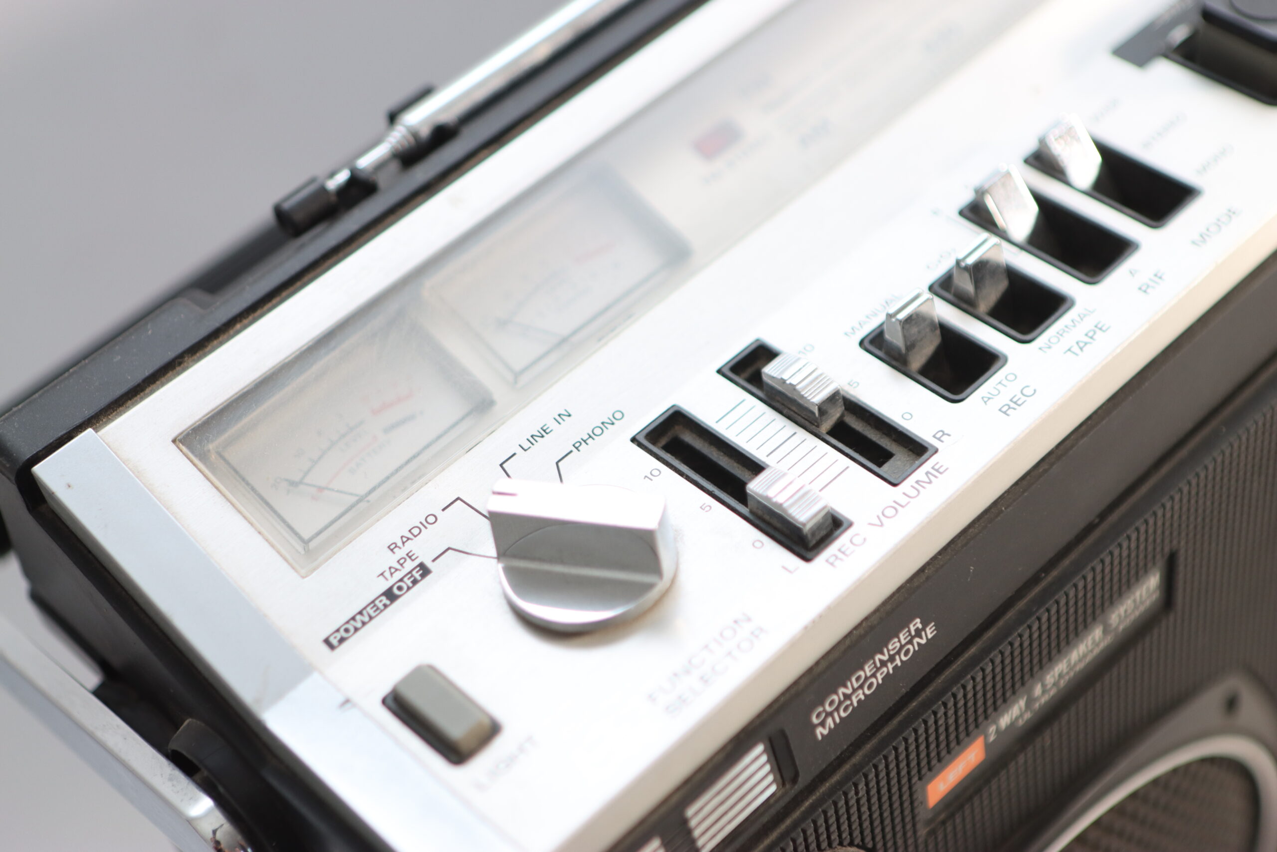 【注意事項】 本製品は、その堅牢な造形とヴィンテージな質感を活かした鑑賞用オブジェおよび撮影用プロップであり、ラジカセとしての実機能(カセットの再生・録音・ラジオ受信・スピーカー出力・各種メーターの動作等)は備わっておらず、動作保証もございません