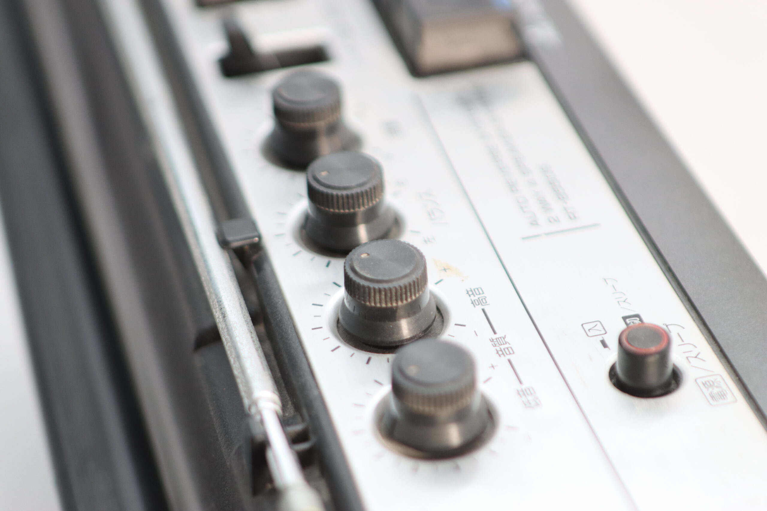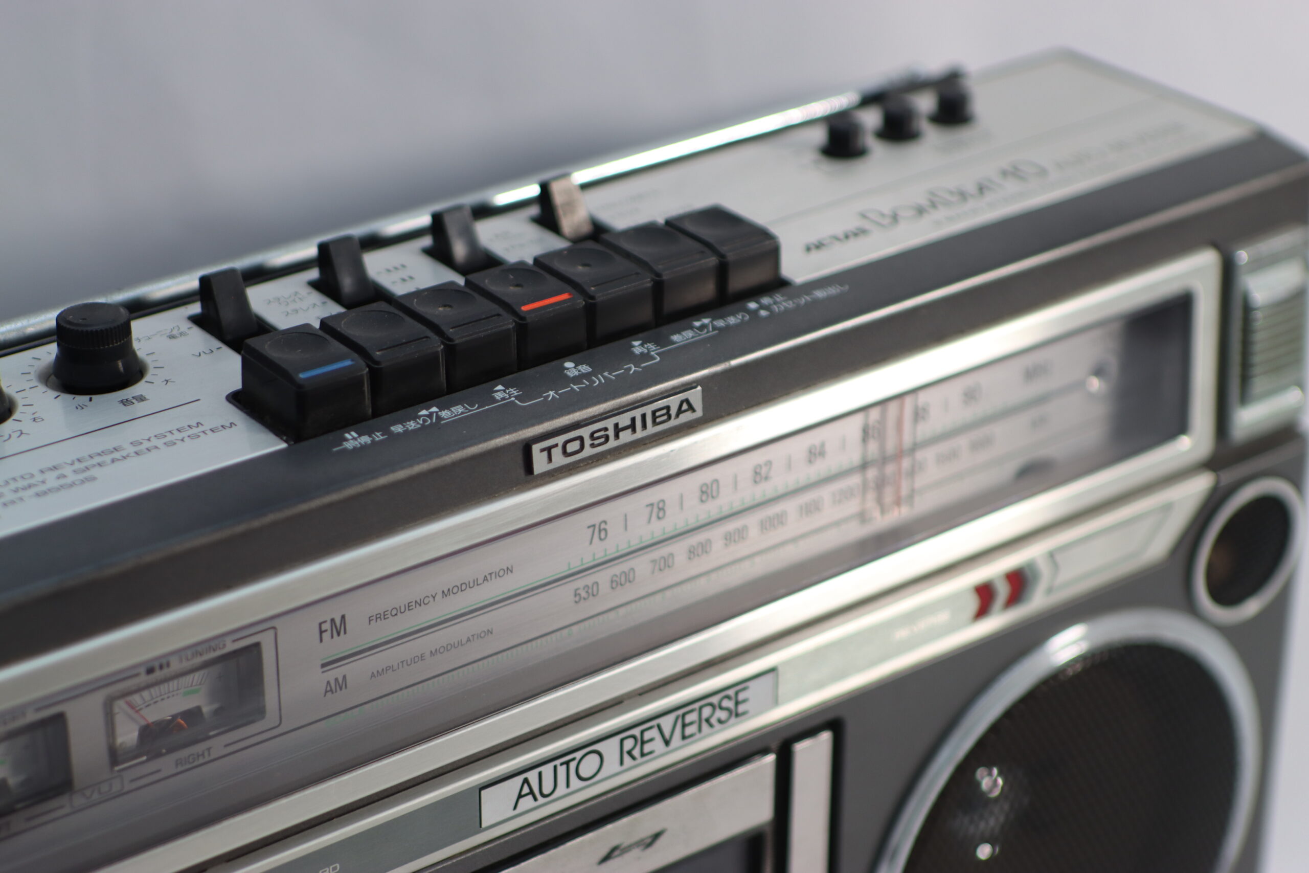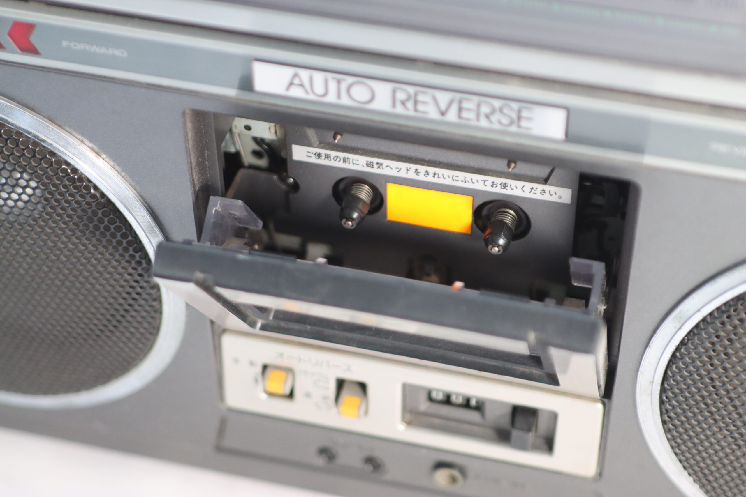 【注意事項】 本製品は、その精緻な造形と時代感を活かした鑑賞用オブジェおよび撮影用プロップであり、ラジカセとしての実機能(オートリバース機構を含むカセットの再生・録音・ラジオ受信・スピーカー出力・各種メーターの正確な動作等)は備わっておらず、動作保証もございません